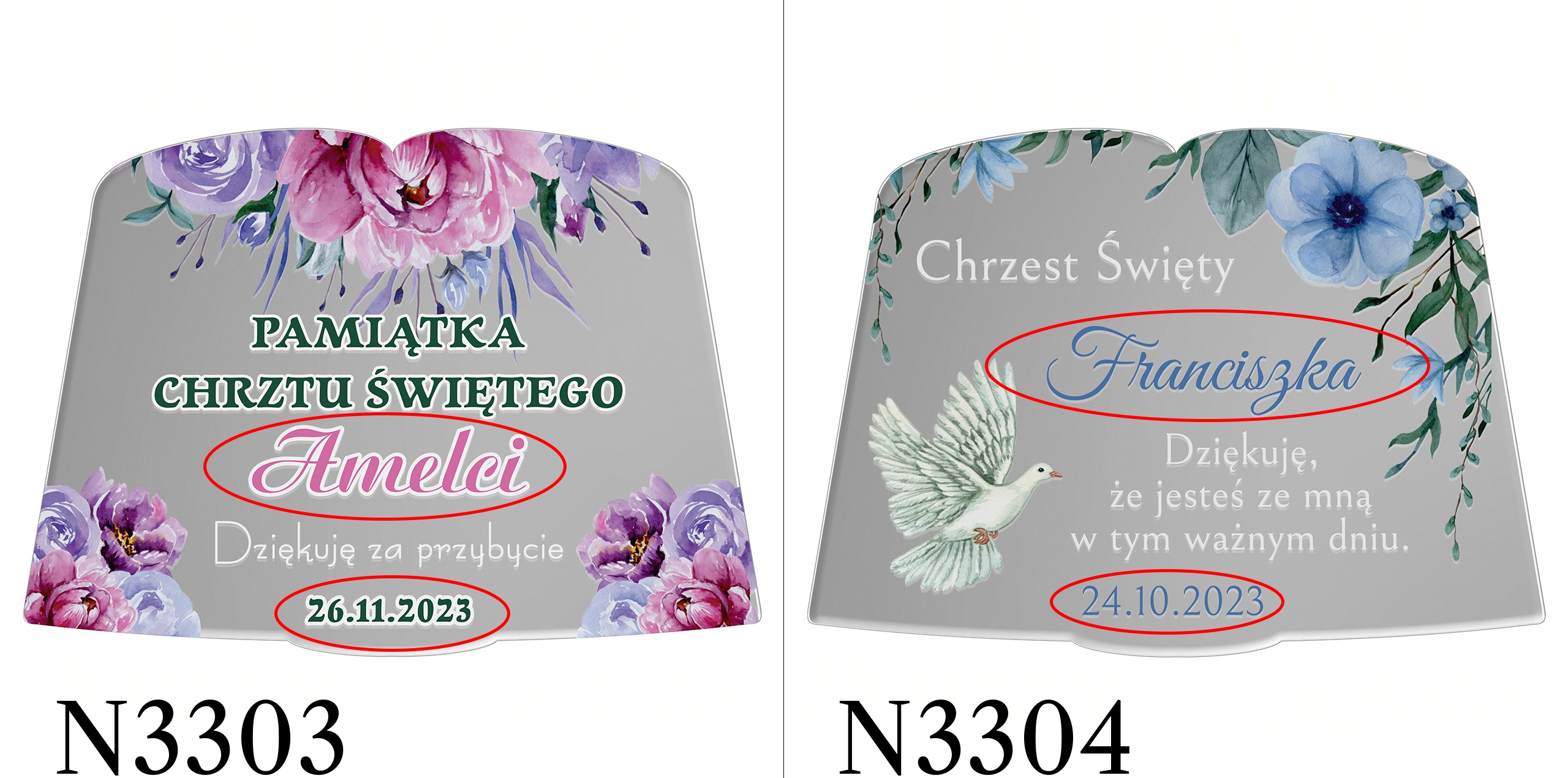 - wyślij do nas tekst w formie dokładnie takiej, jaka ma zostać umieszczona na produkcie tj. z zastosowaniem odpowiedniej pisowni, interpunkcji, odmiany imion itp.