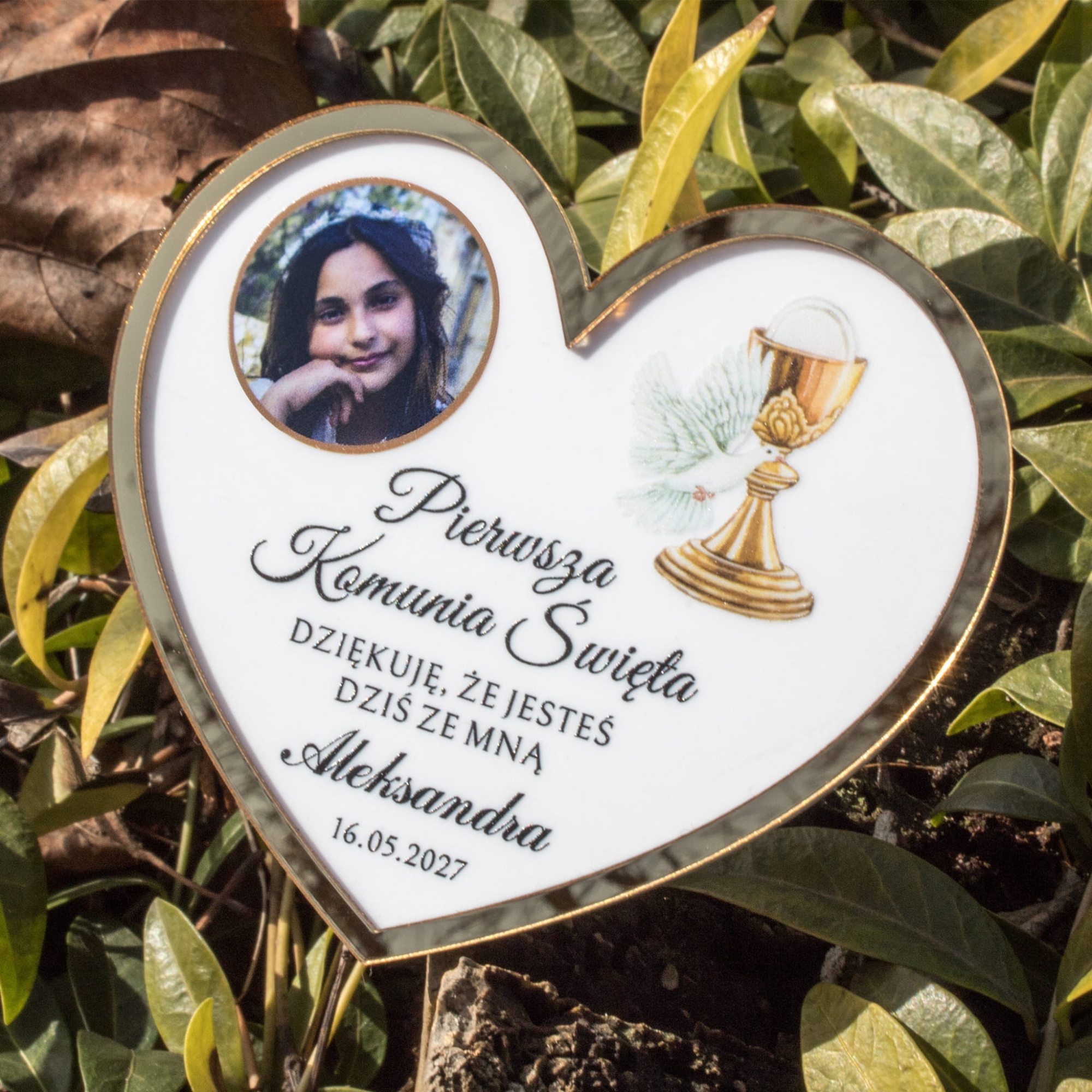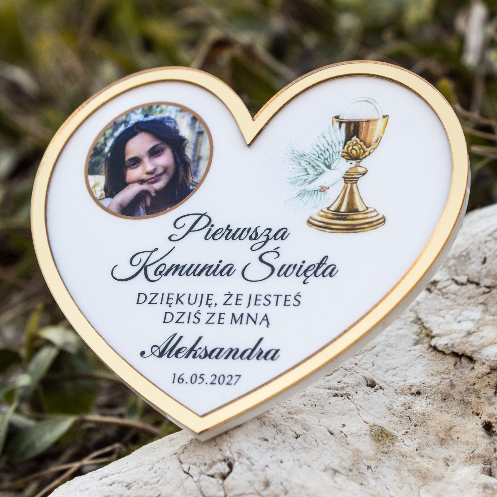 Serce ZŁOCONE ze zdjęciem podziękowanie dla gości komunijnych