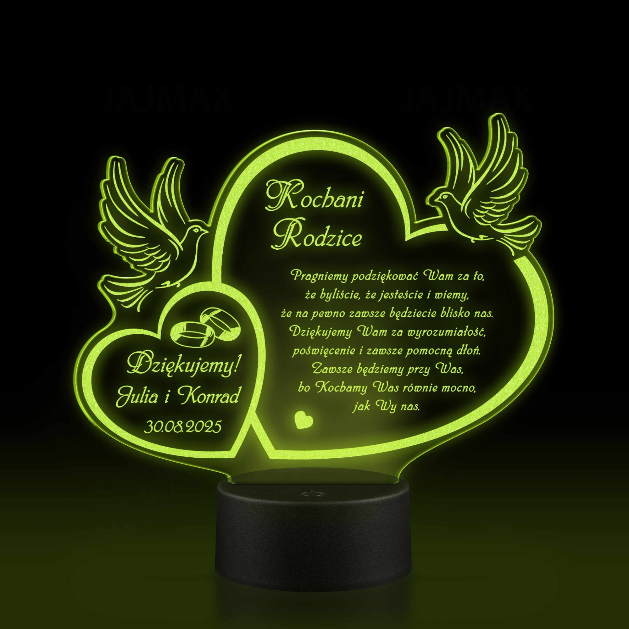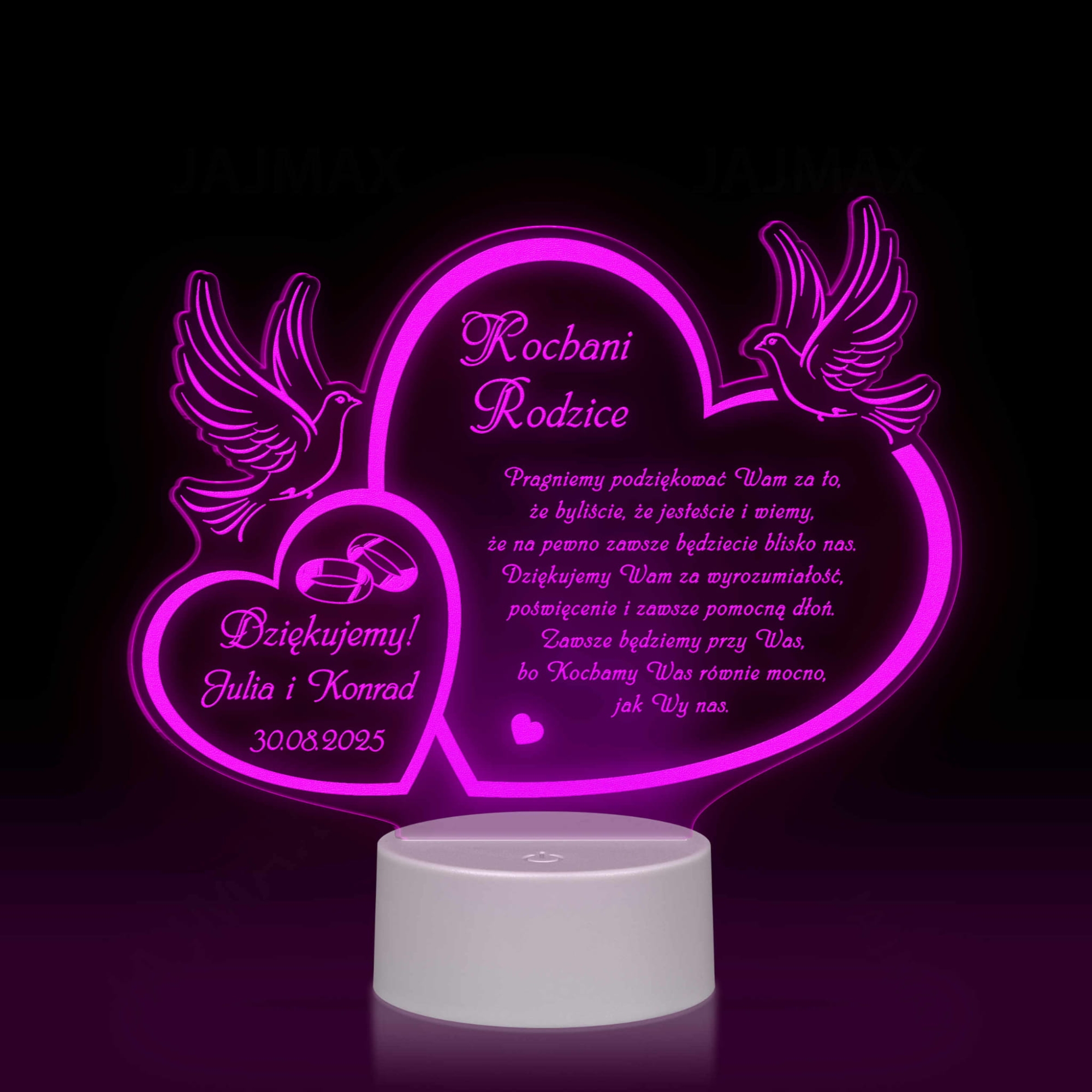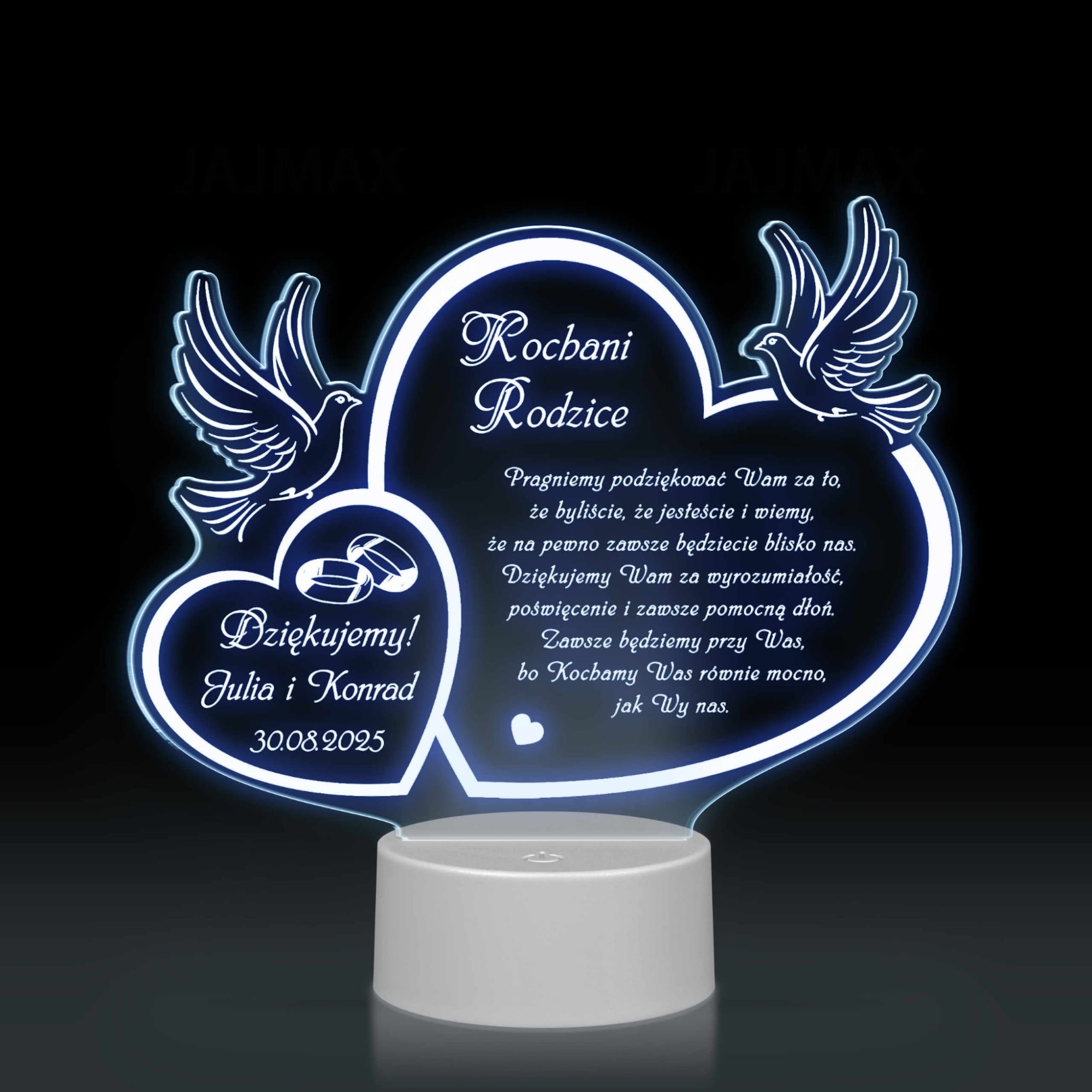 Statuetka LED serca z gołąbkami prezent dla rodziców z grawerem