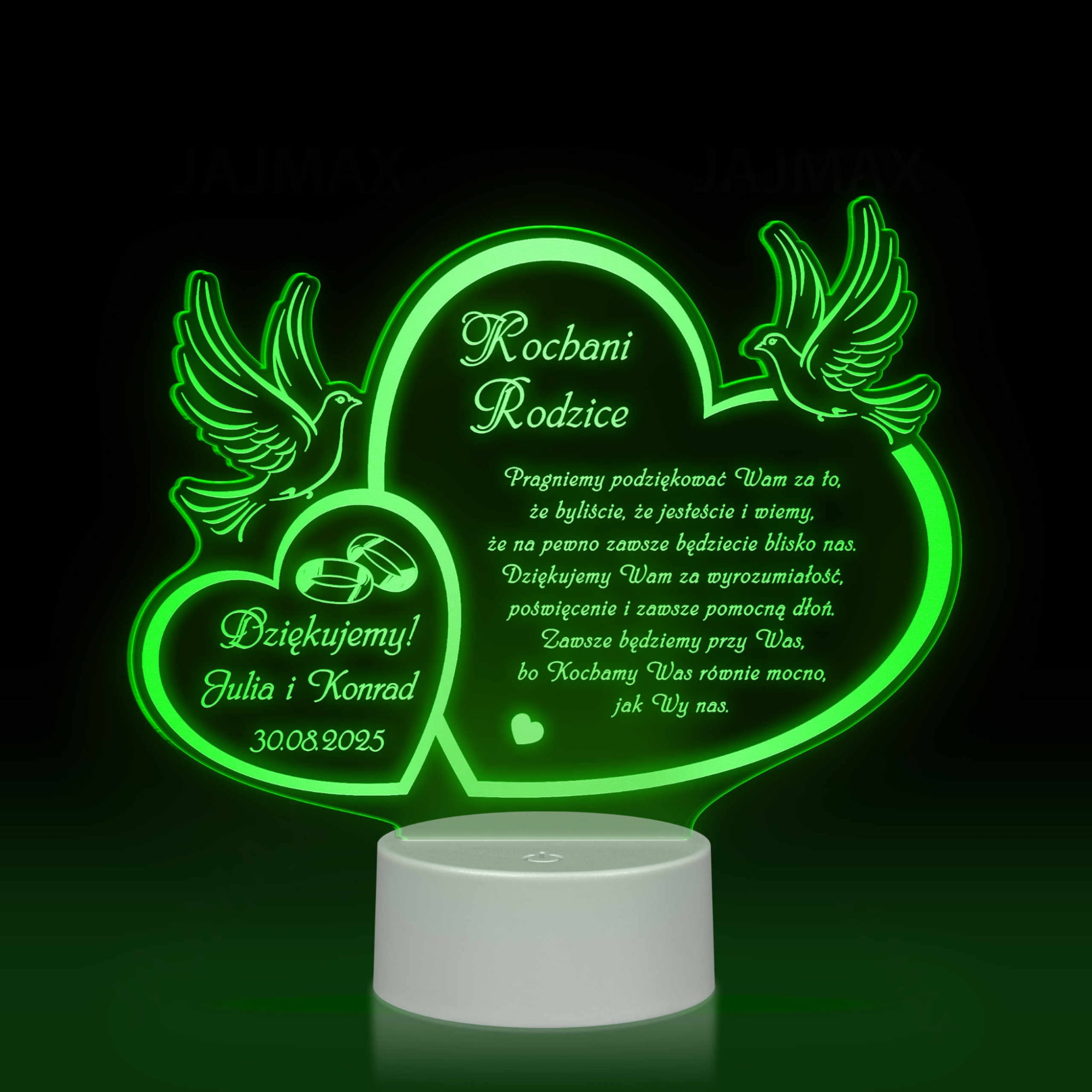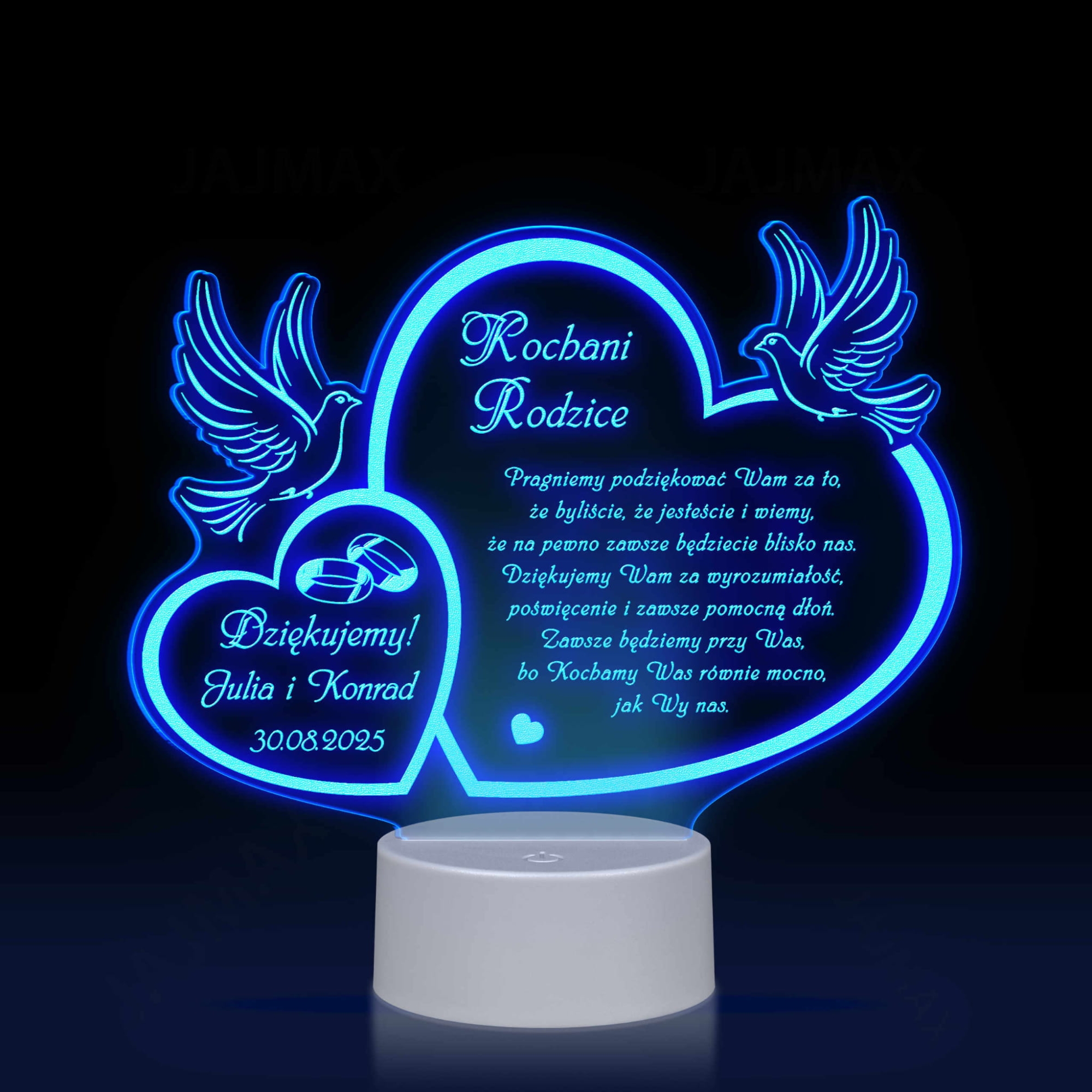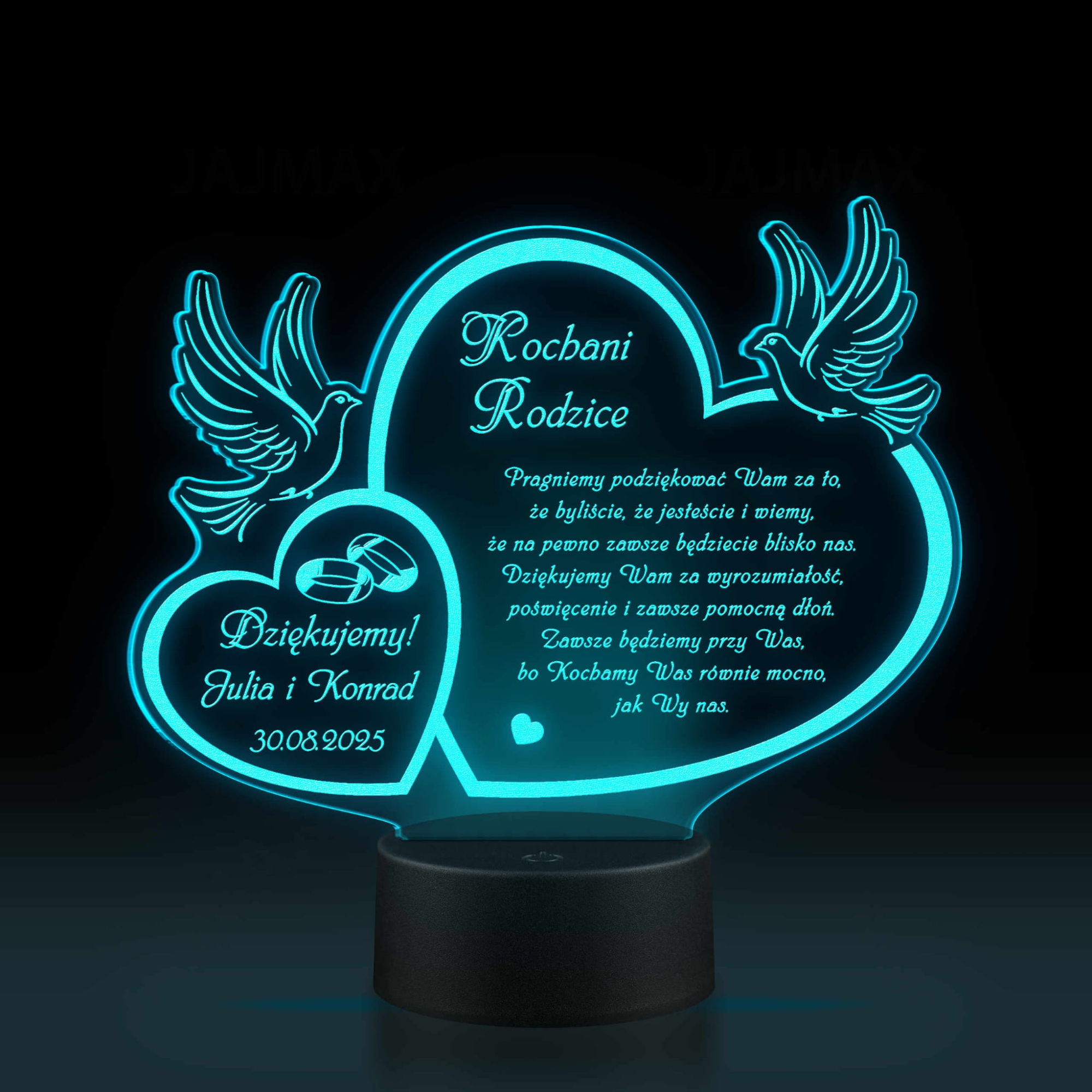 Statuetka LED serca z gołąbkami prezent dla rodziców z grawerem