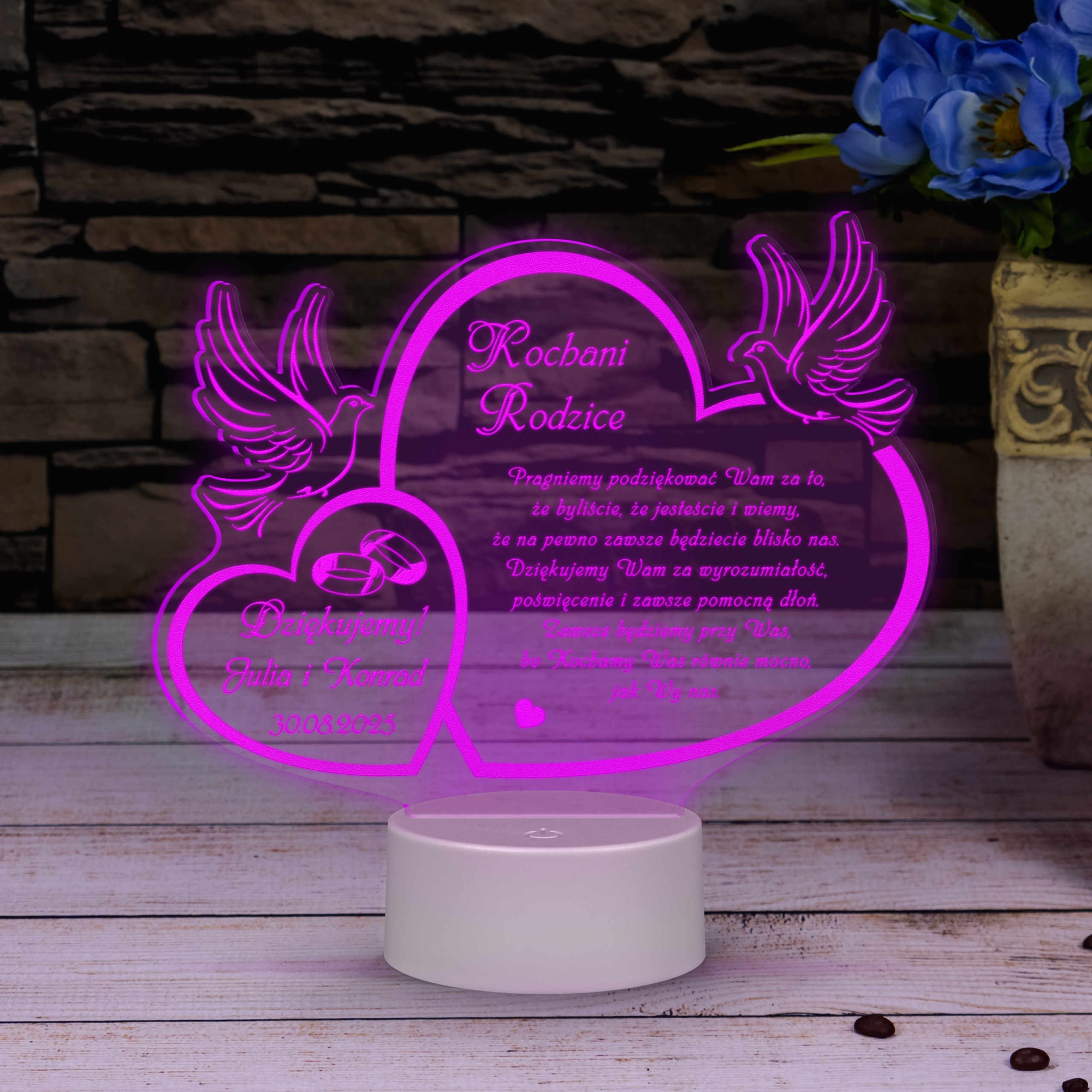 Akrylowa statuetka LED PODZIĘKOWANIE DLA RODZICÓW na ślub z grawerem