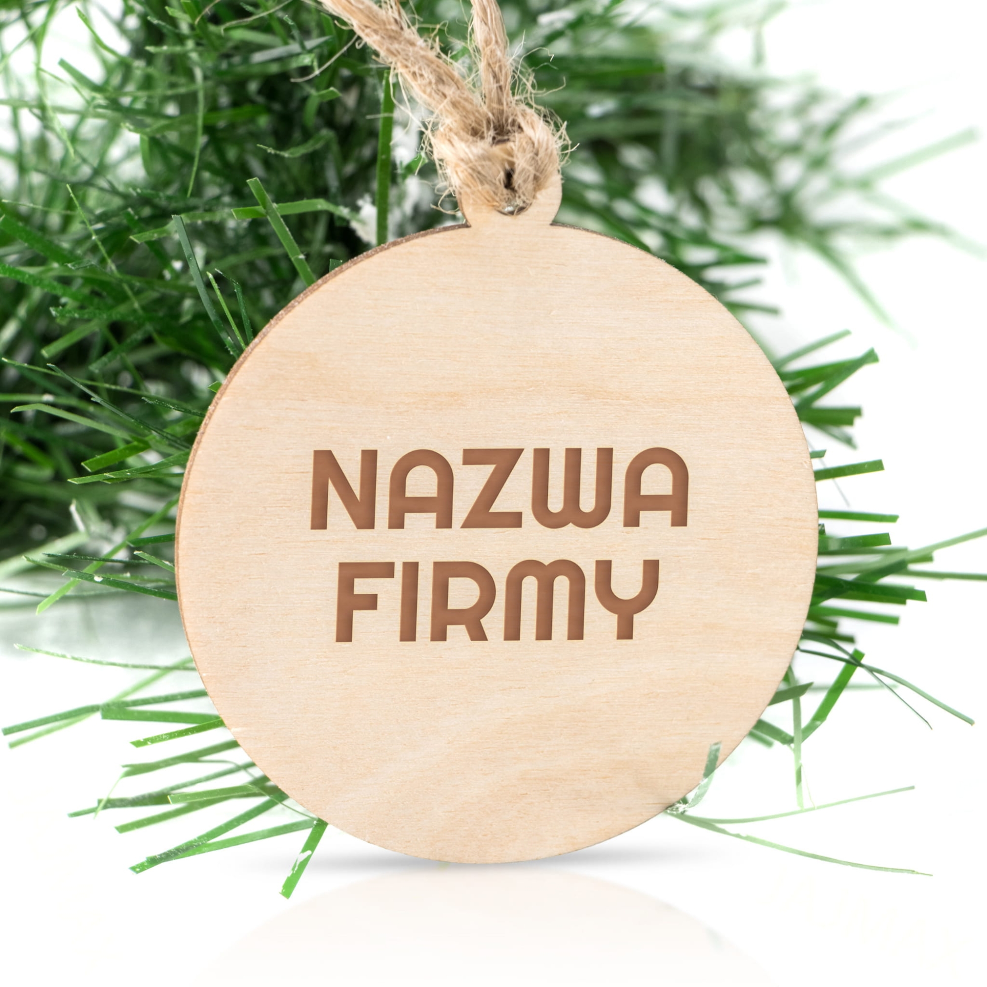Zawieszka jest wykonywana z naturalnego drewna, a grawer wykonujemy precyzyjnie według Twojego projektu. Możesz umieścić nazwę firmy lub logo – wystarczy przesłać je podczas składania zamówienia. Dzięki temu każda bombka staje się niepowtarzalna i w pełni dopasowana do wizerunku Twojej marki. Grawer jest trwały i elegancki – świetnie prezentuje się zarówno na żywej choince, jak i w świątecznym opakowaniu prezentowym.