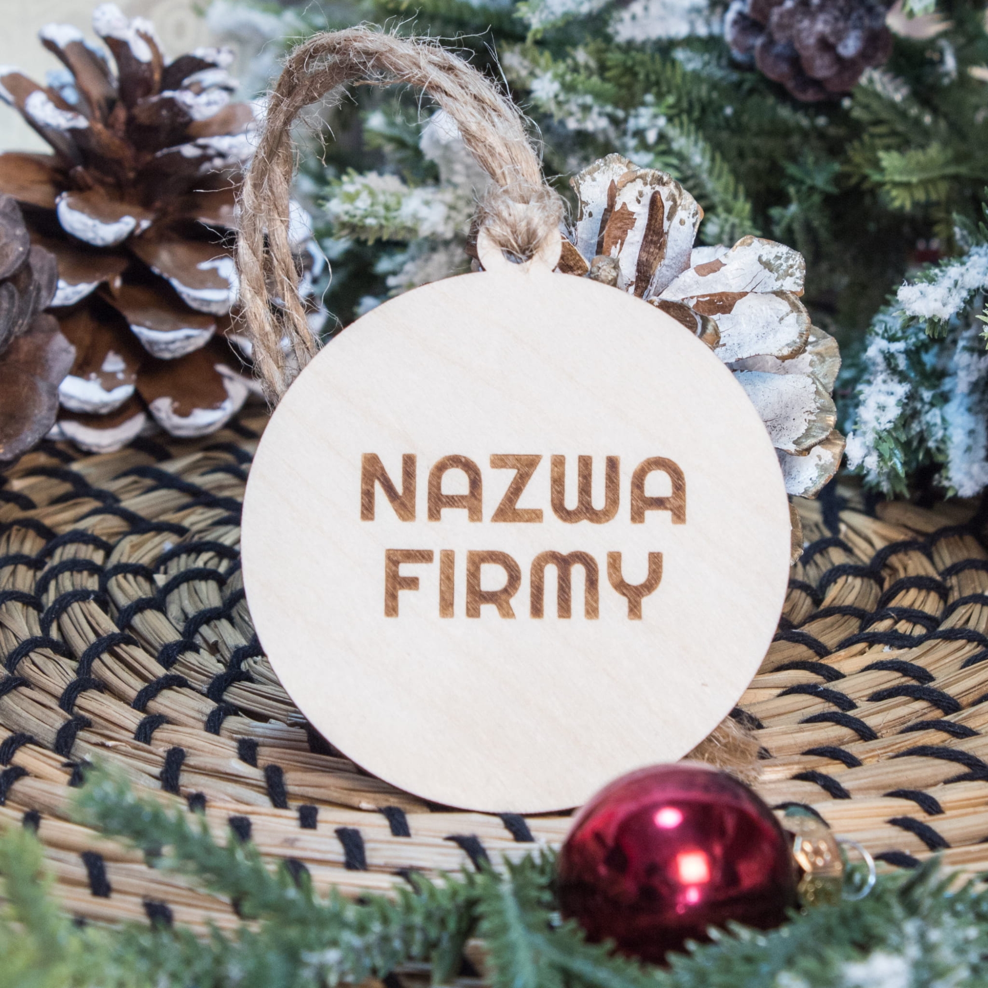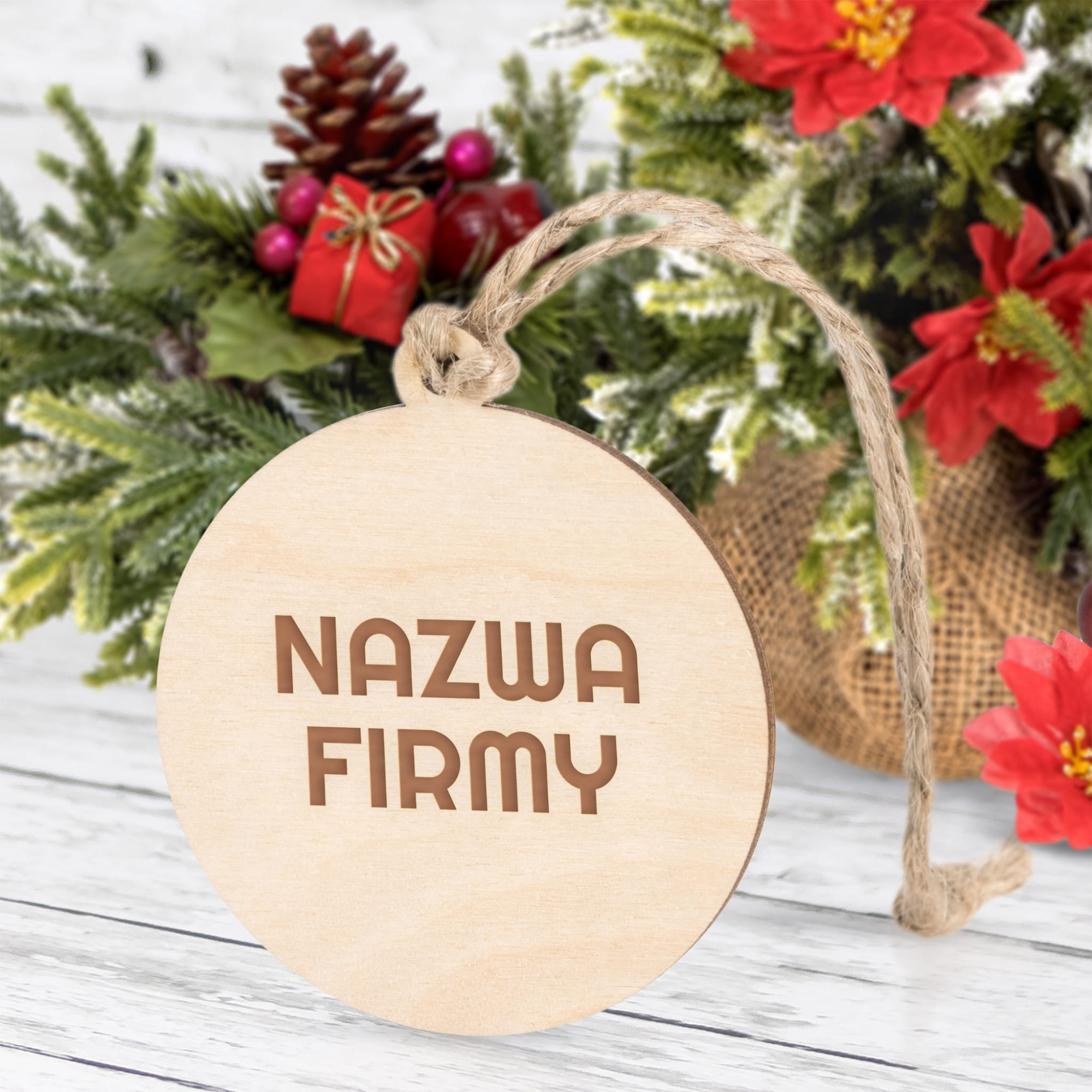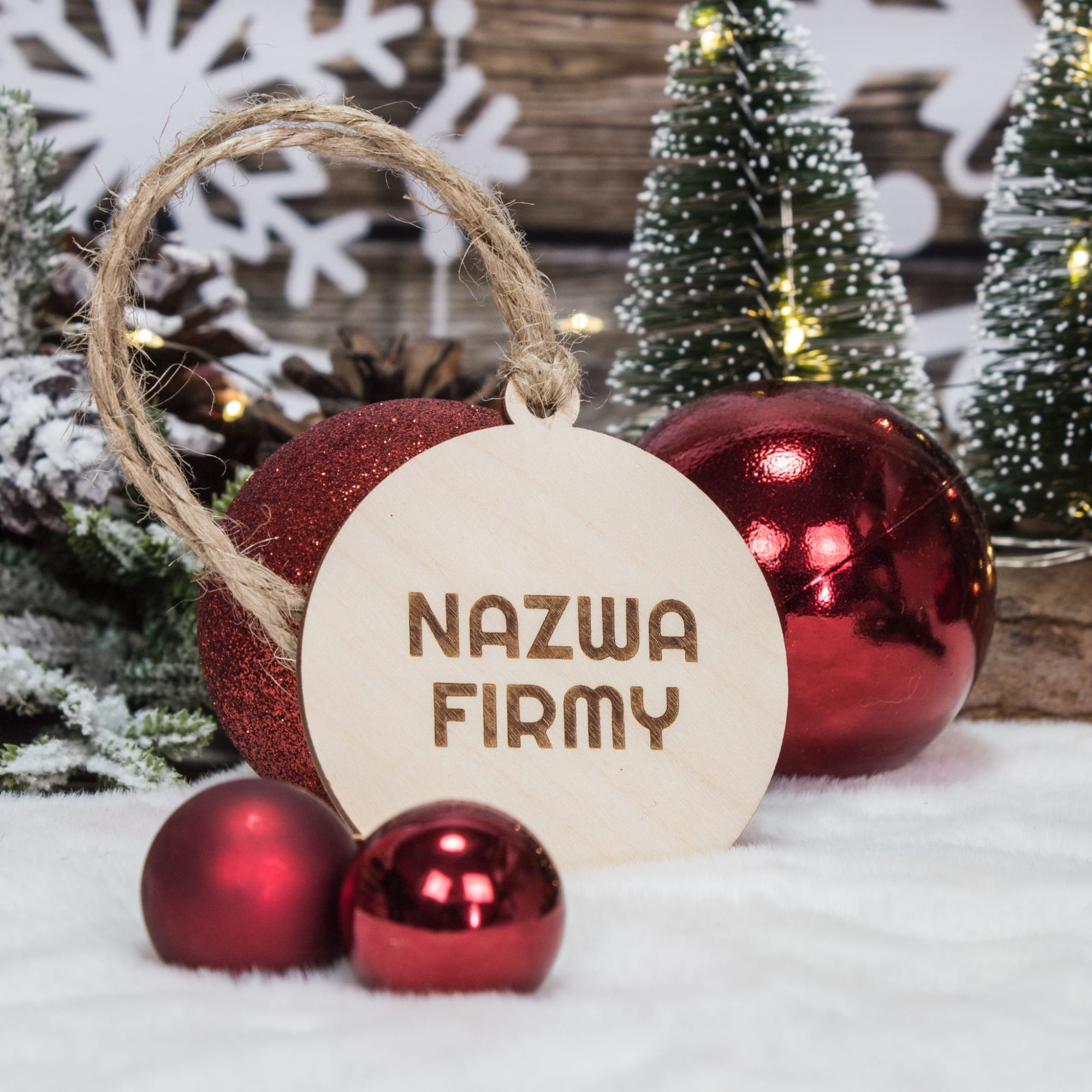 - Drewnianą bombkę z grawerem nazwy Twojej firmy