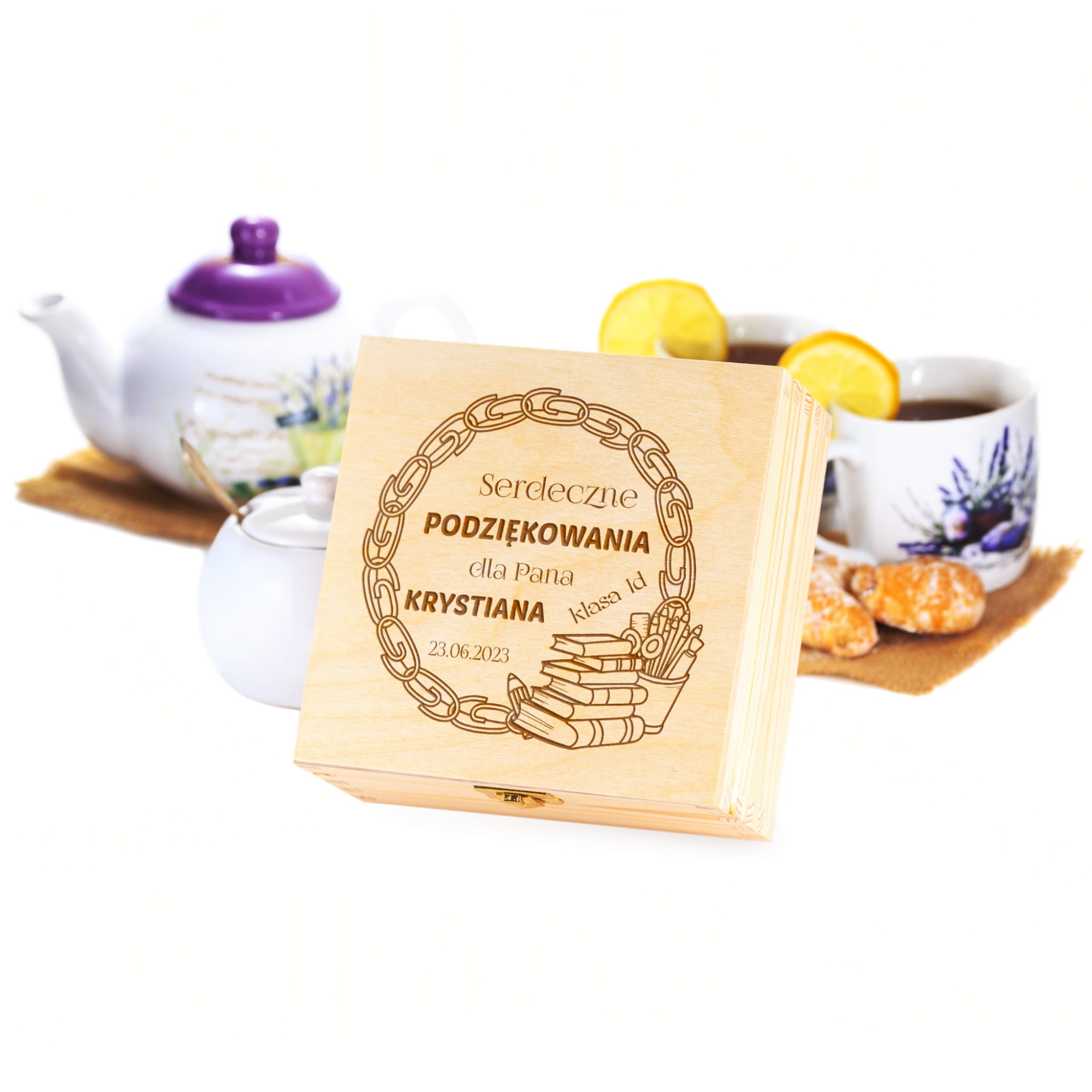 Drewniana herbaciarka zestaw prezentowy z Twoją dedykacją