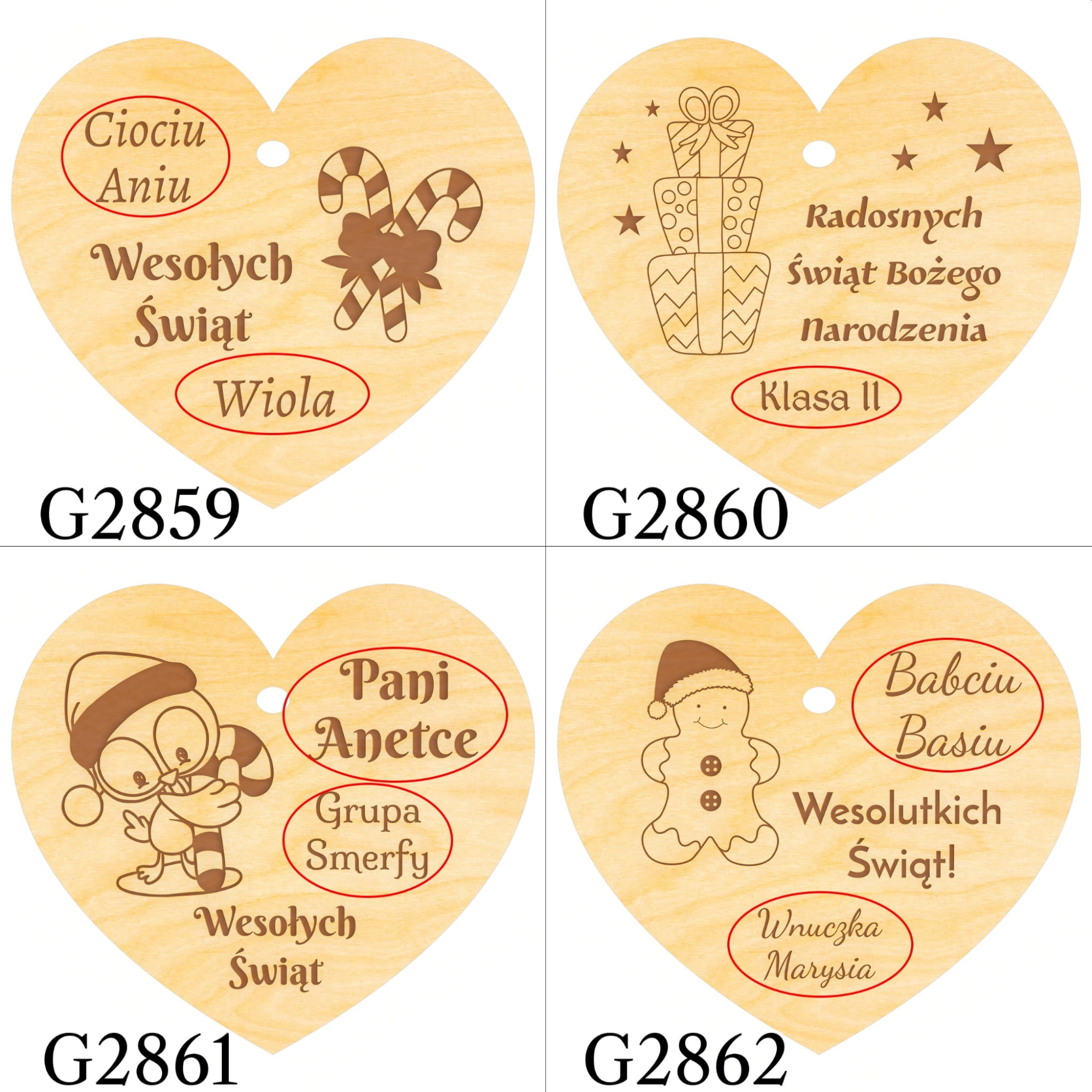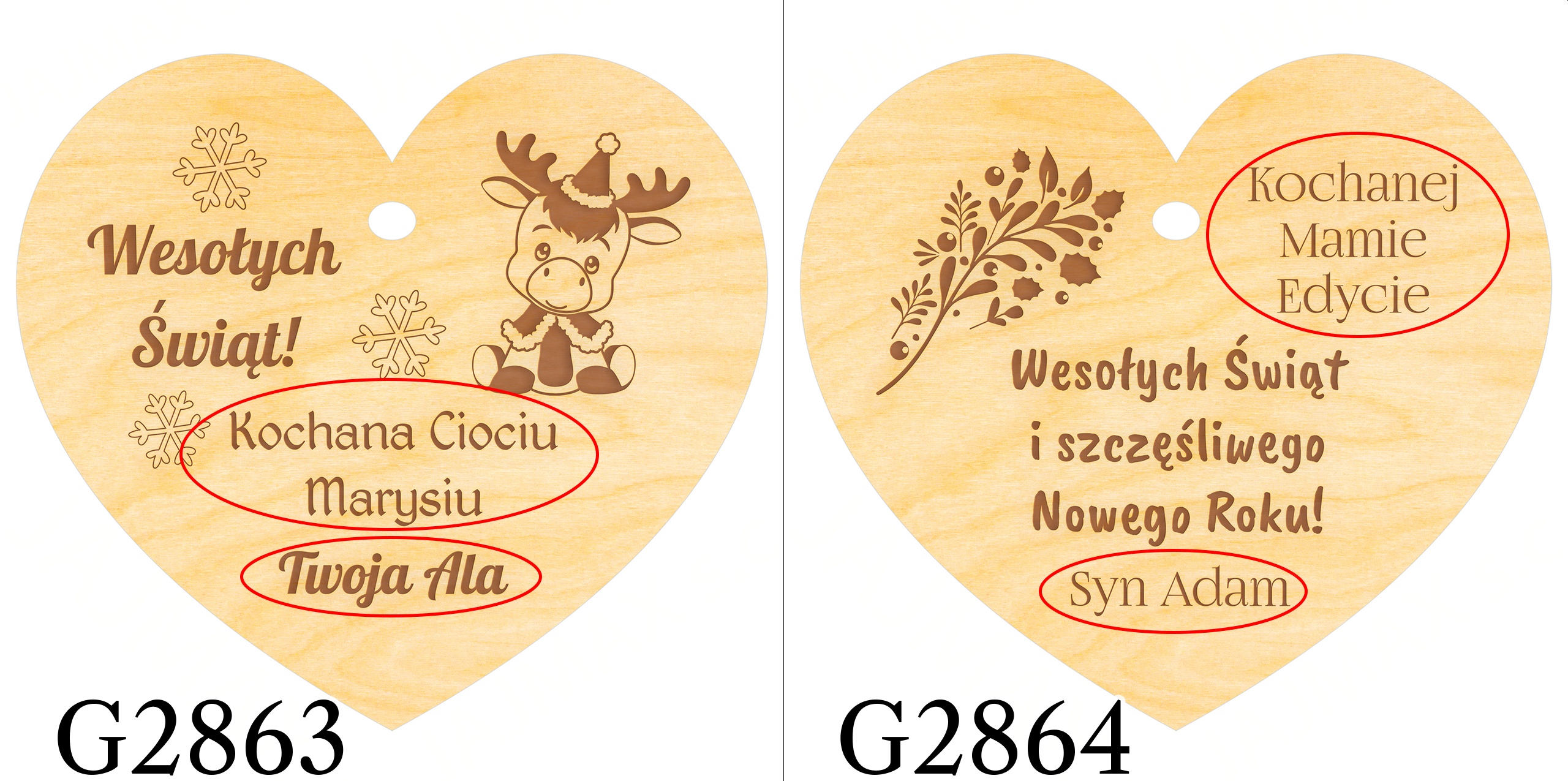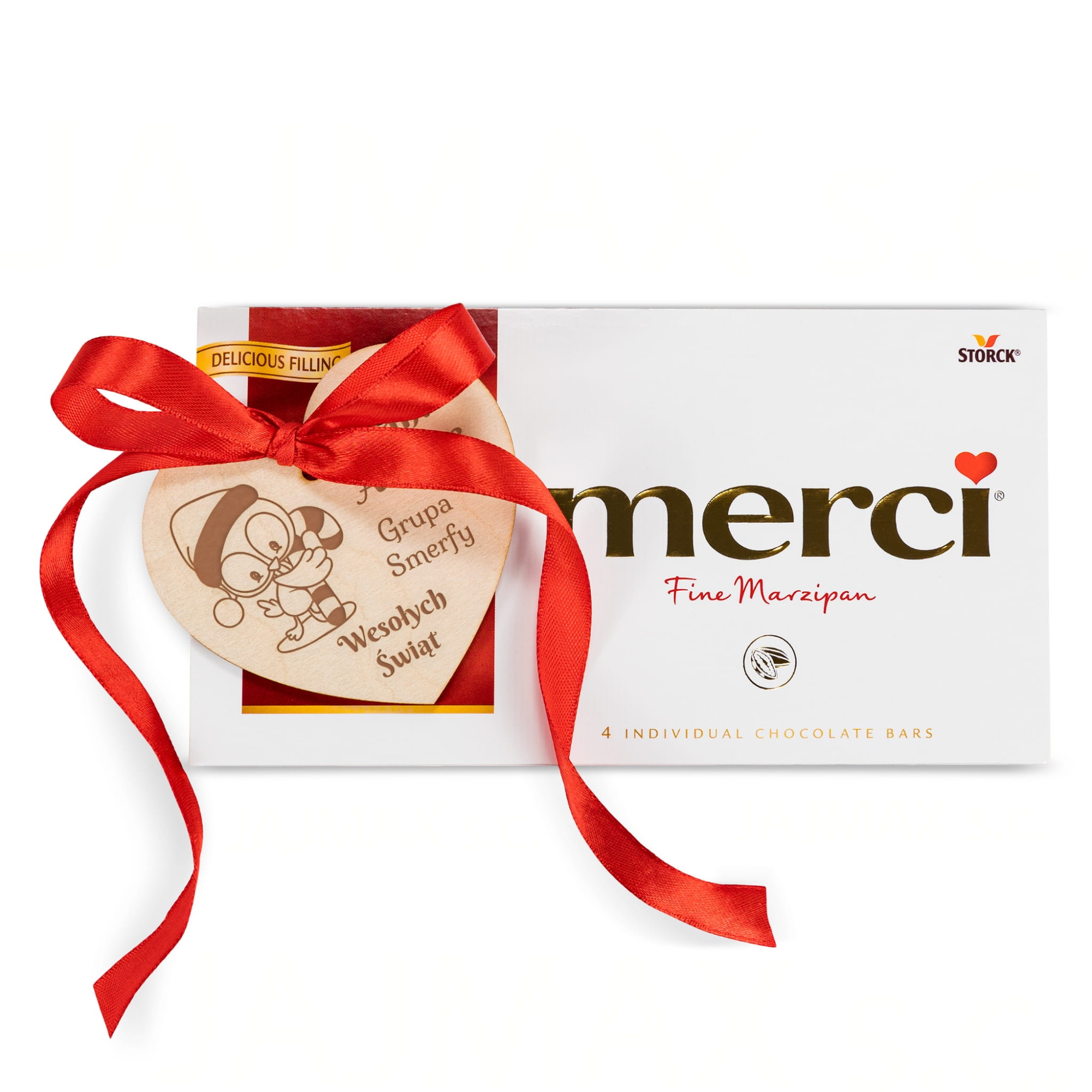 Z myślą o słodkim pomyśle na drobny upominek pod choinkę lub dodatek do prezentu świątecznego do czekolady Merci dodaliśmy drewnianą zawieszkę serce z Twoim grawerem. Serce z czerwoną wstążką przyklejone do czekolady tworzy piękny upominek na święta dla nauczyciela, upominek na święta dla babci, upominek na święta dla dziadka. Jeśli lubisz oryginalne prezenty na Święta wybierz naszą czekoladę z sercem, a z pewnością będzie to udany prezent na Boże Narodzenie dla każdego. Do wyboru kilka świątecznych motywów graficznych.