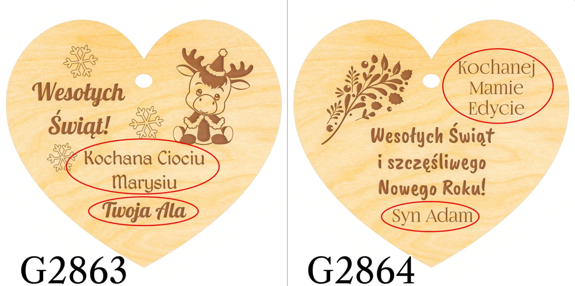 - wyślij do nas tekst w formie dokładnie takiej, jaka ma zostać umieszczona na produkcie tj. z zastosowaniem odpowiedniej pisowni, interpunkcji, odmiany imion itp.