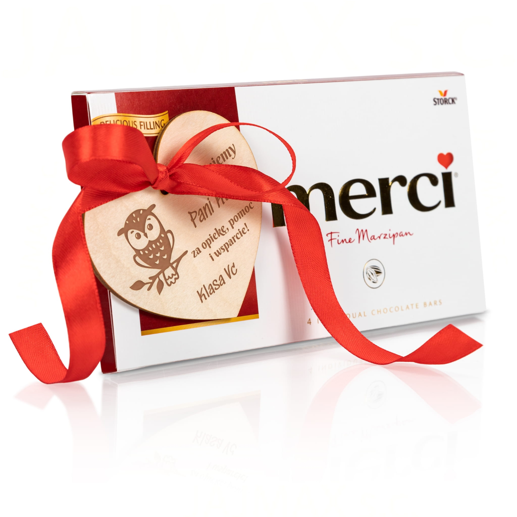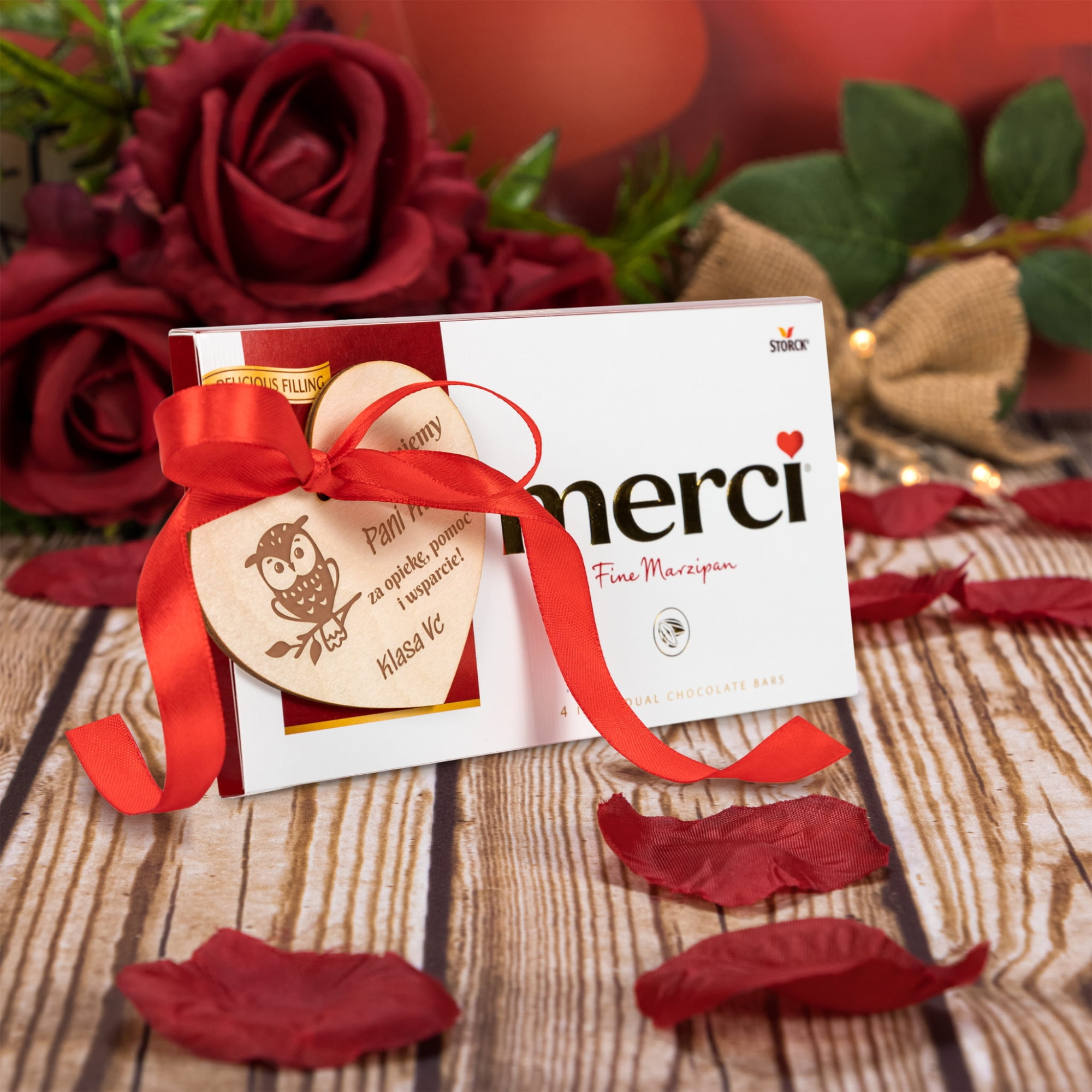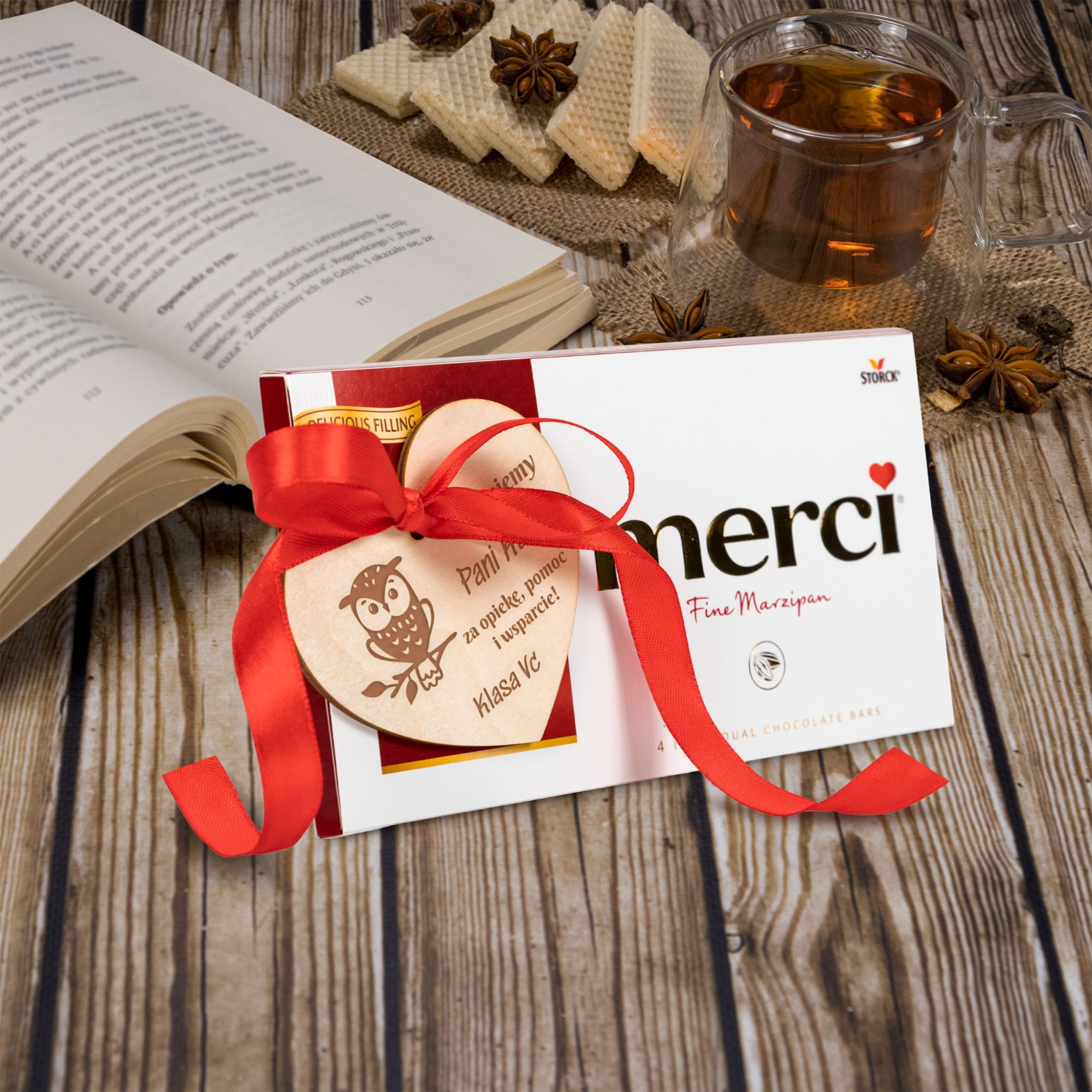 Czekolada Merci z drewnianym sercem – wyjątkowe podziękowanie dla nauczyciela