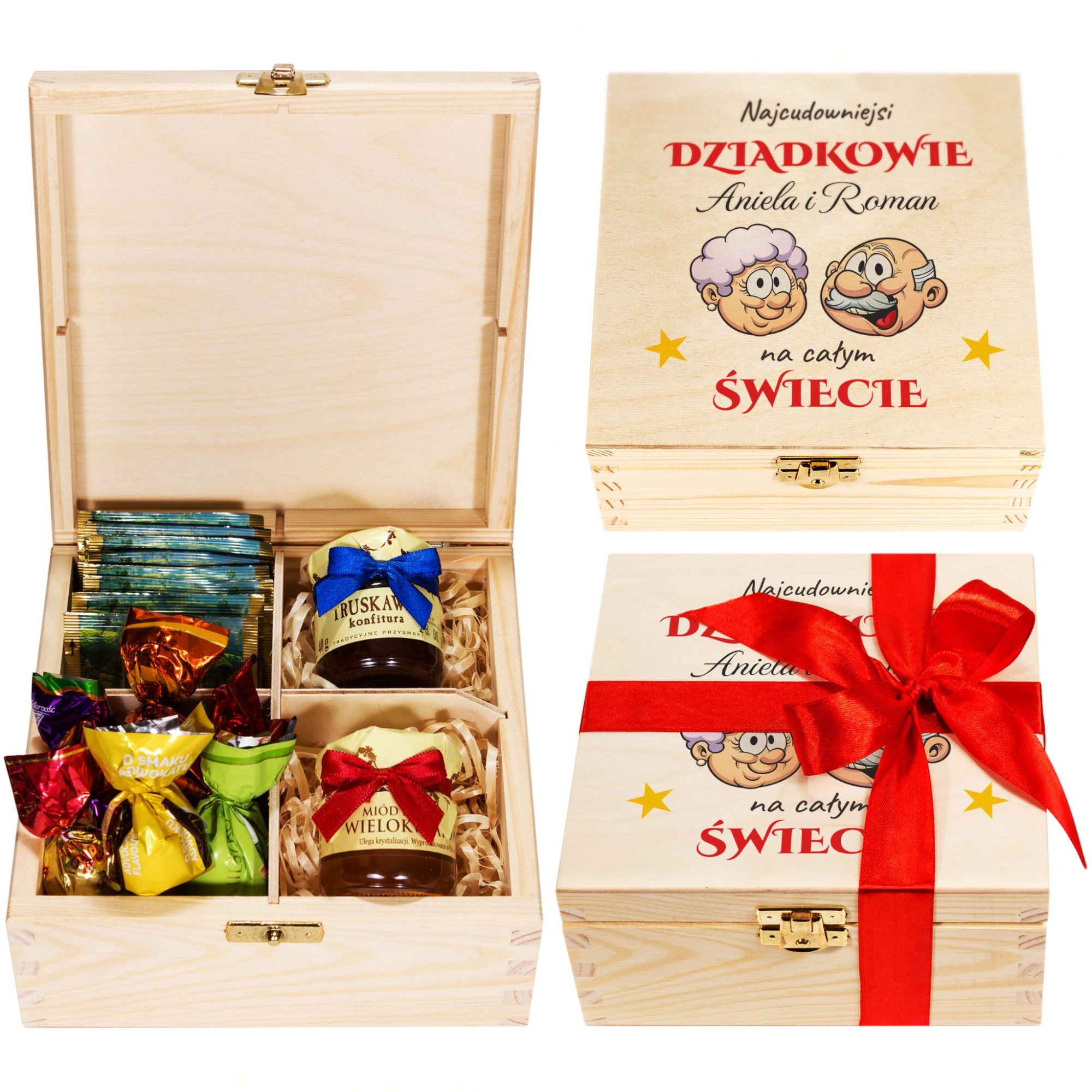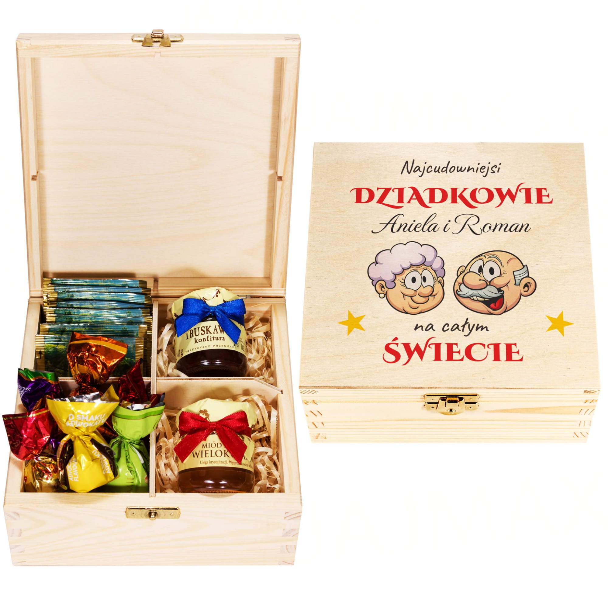 DLA DZIADKÓW pudełko smakołyków z imionami wnuków prezent premium