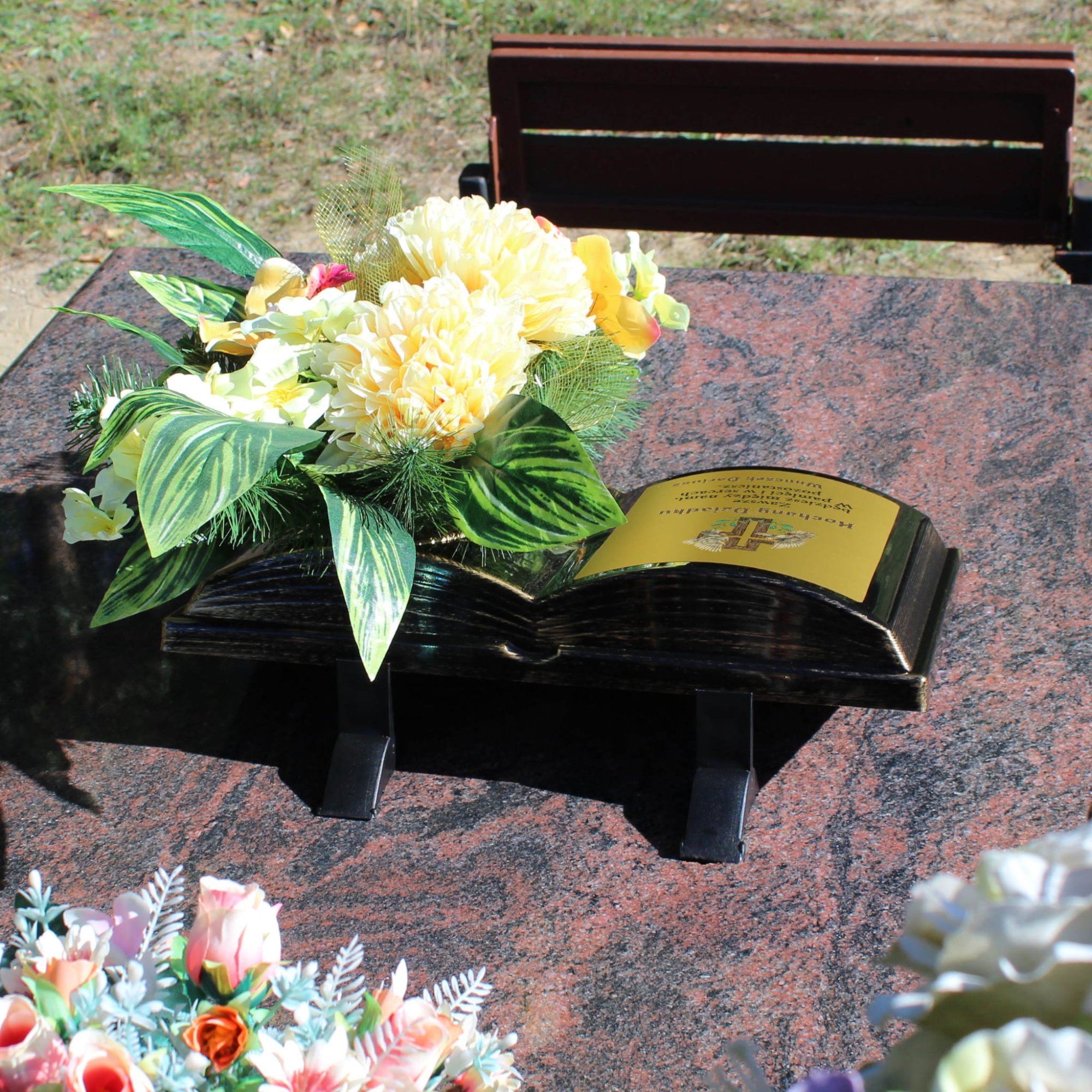 DONICA NA GRÓB KSIĘGA Z KWIATAMI wyjątkowa ozdoba na cmentarz