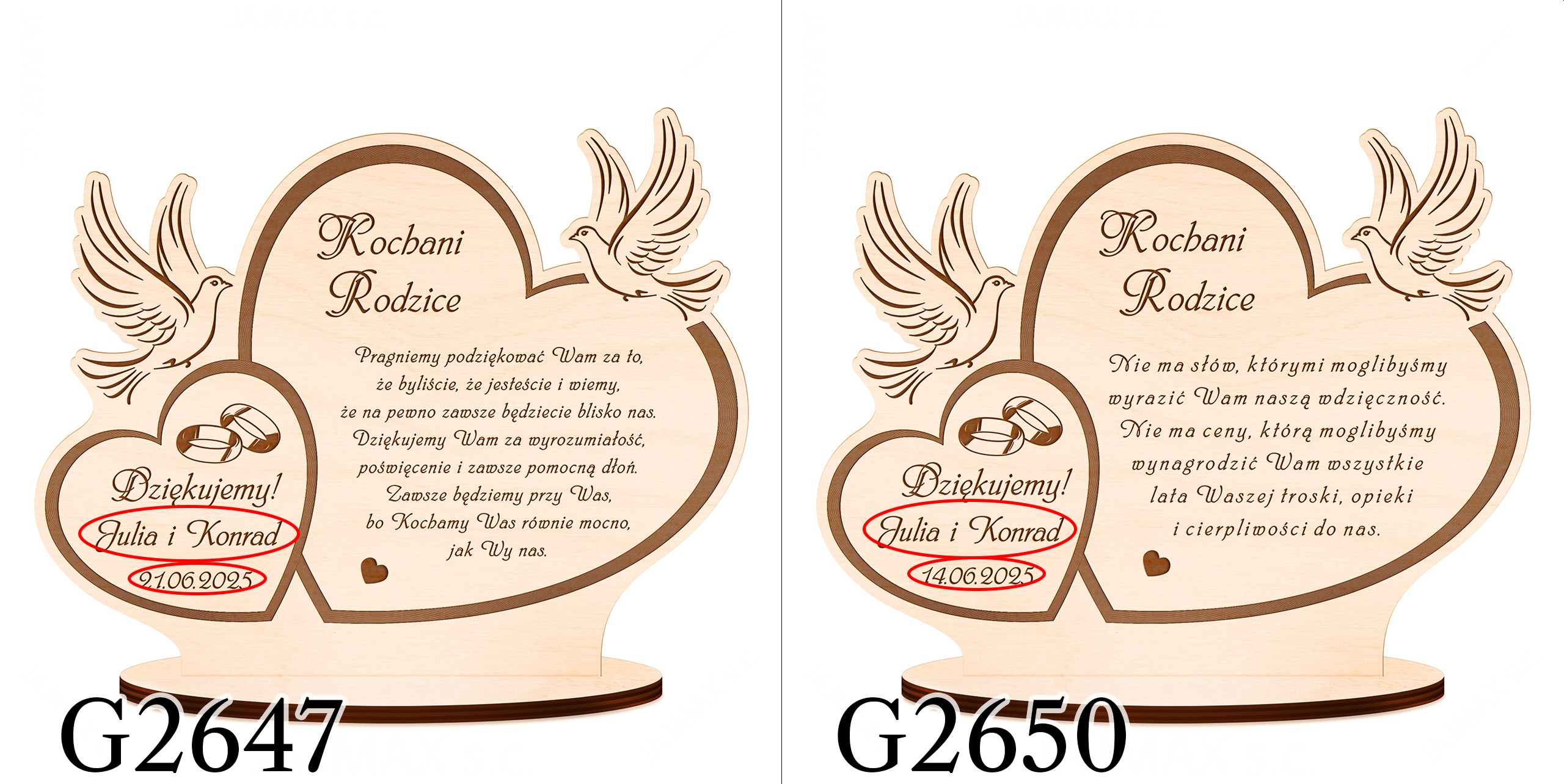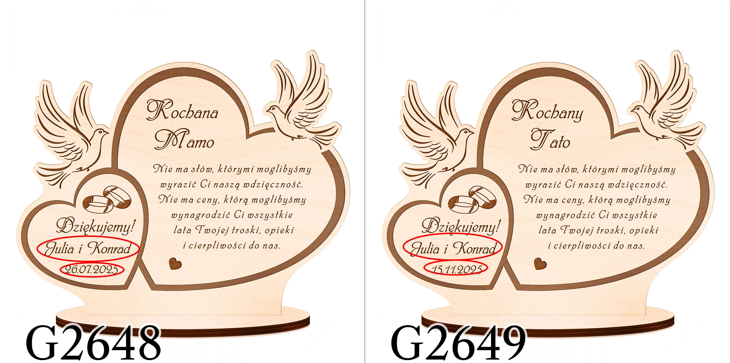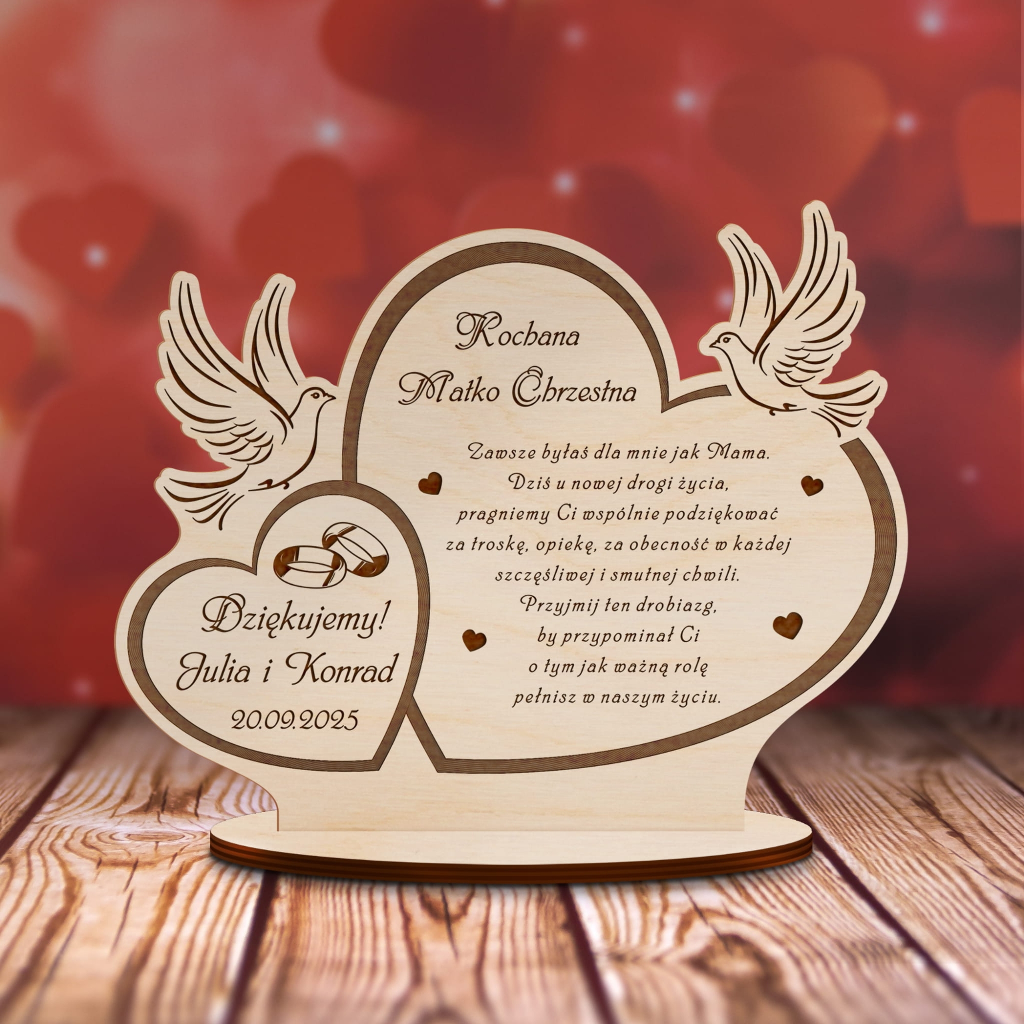 Drewniana statuetka serce gołąbki z indywidualnym grawerem