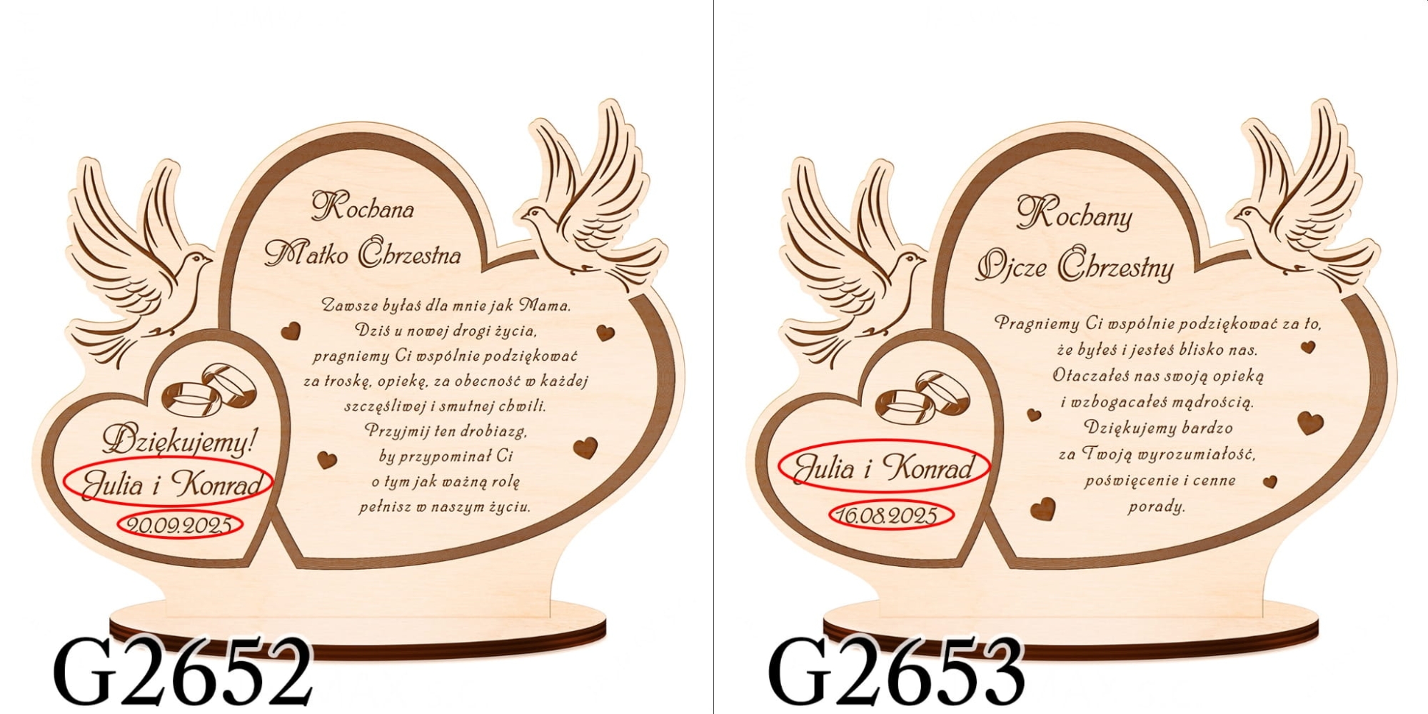 - wyślij do nas tekst w formie dokładnie takiej, jaka ma zostać umieszczona na produkcie tj. z zastosowaniem odpowiedniej pisowni, interpunkcji, odmiany imion itp.