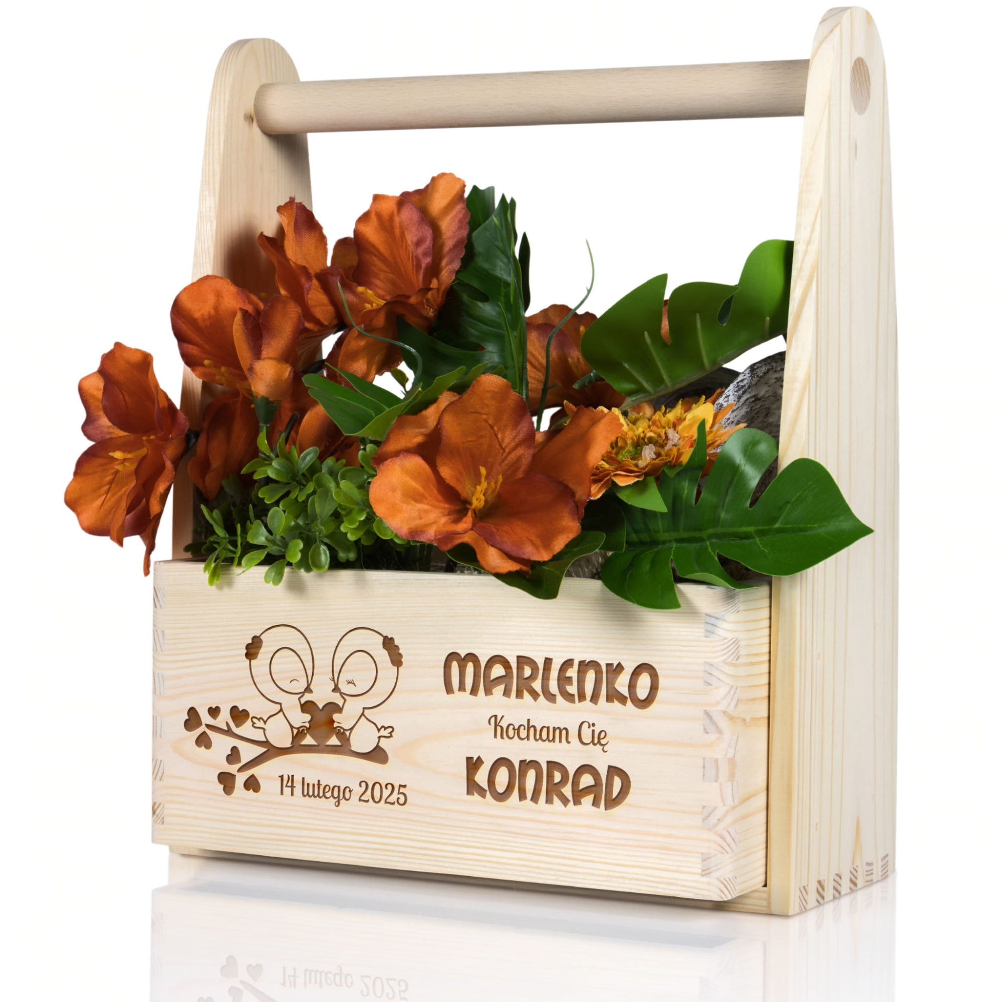 Drewniane nosidło na kwiaty prezent dla Niej grawer