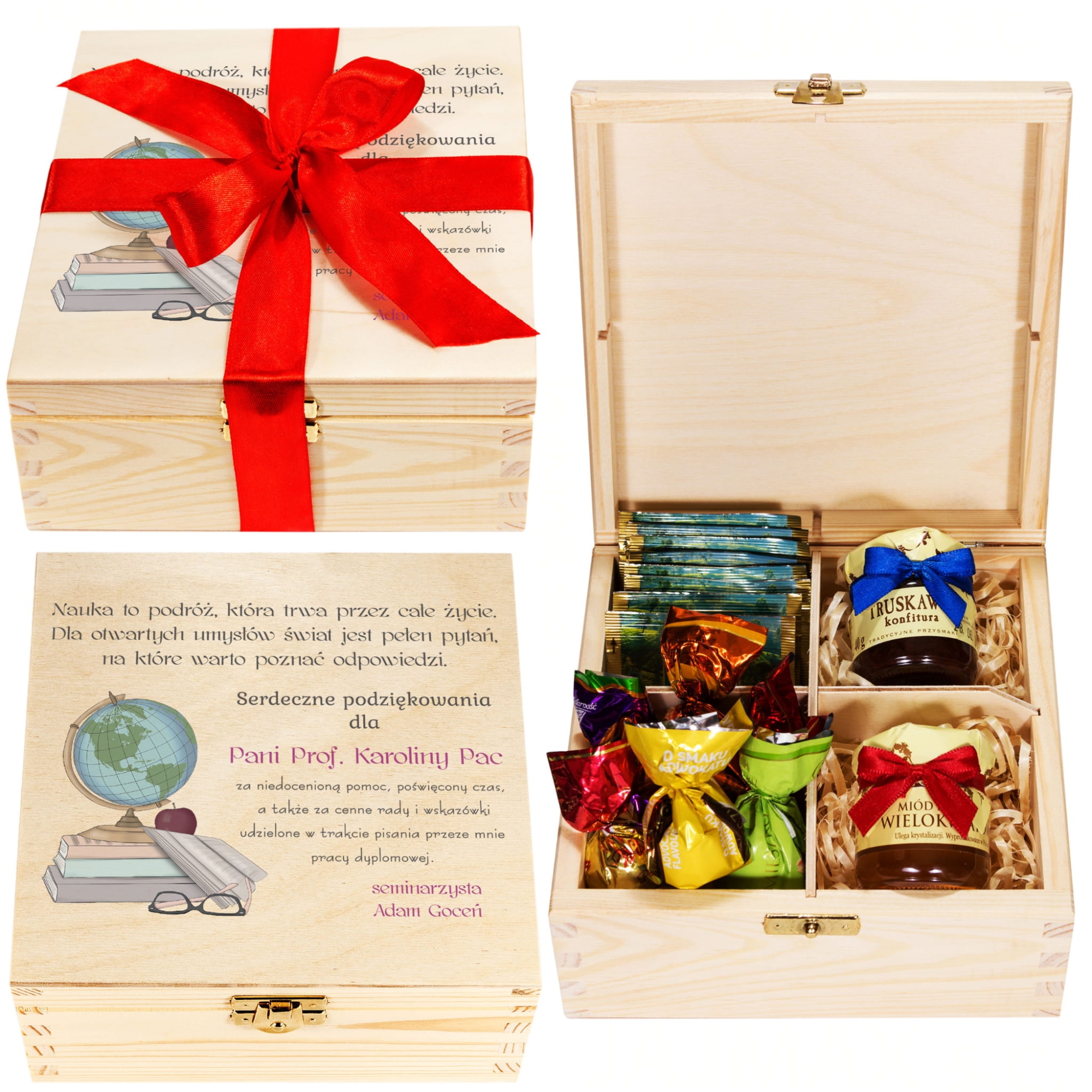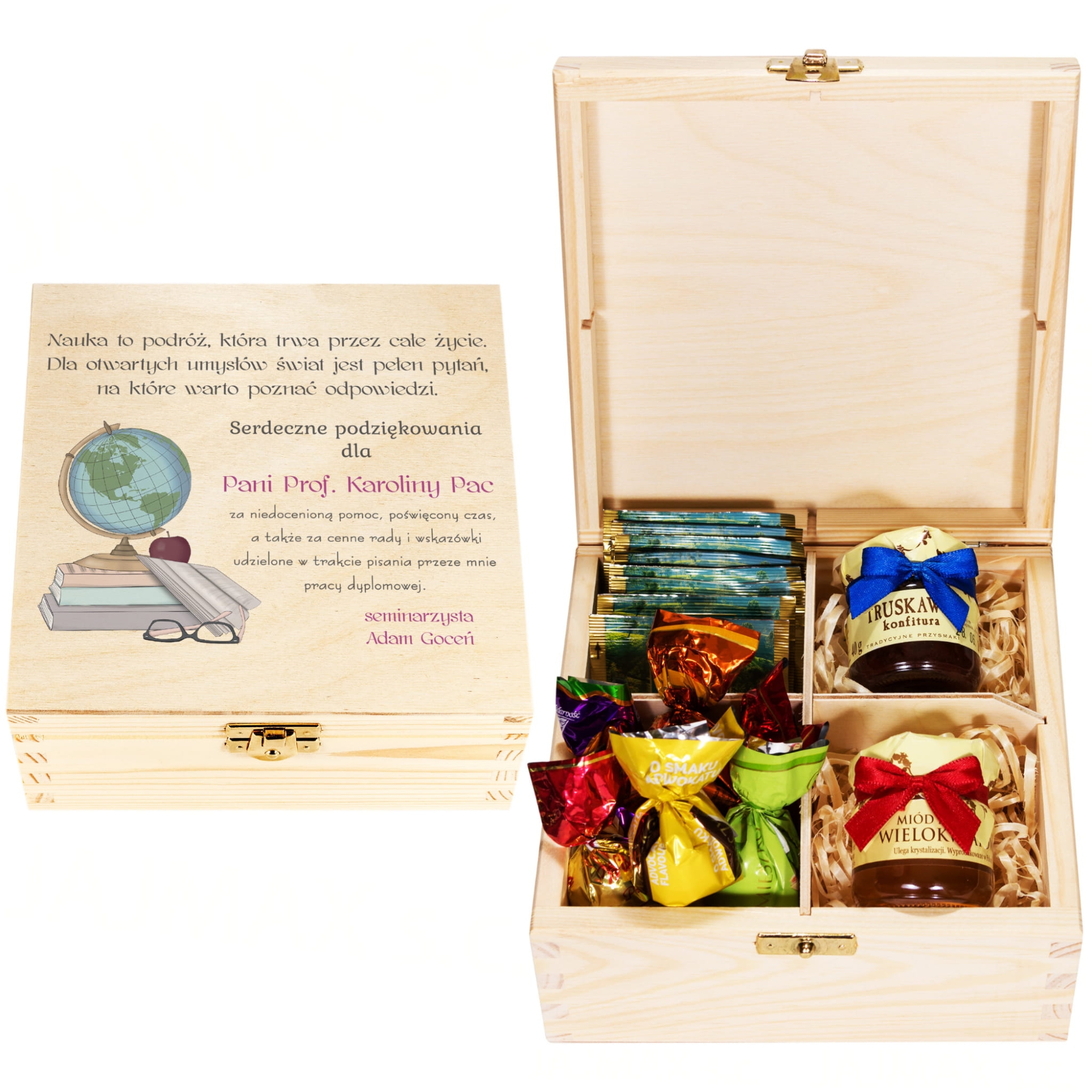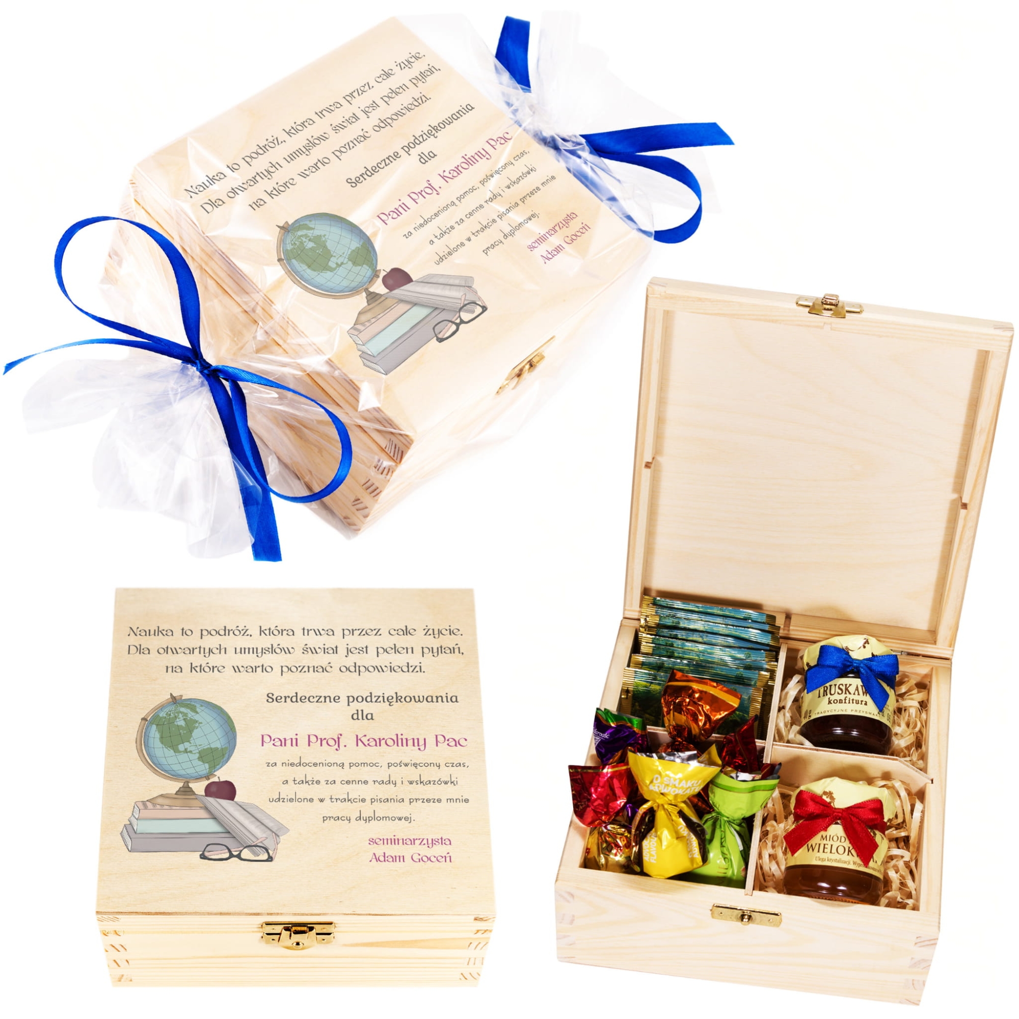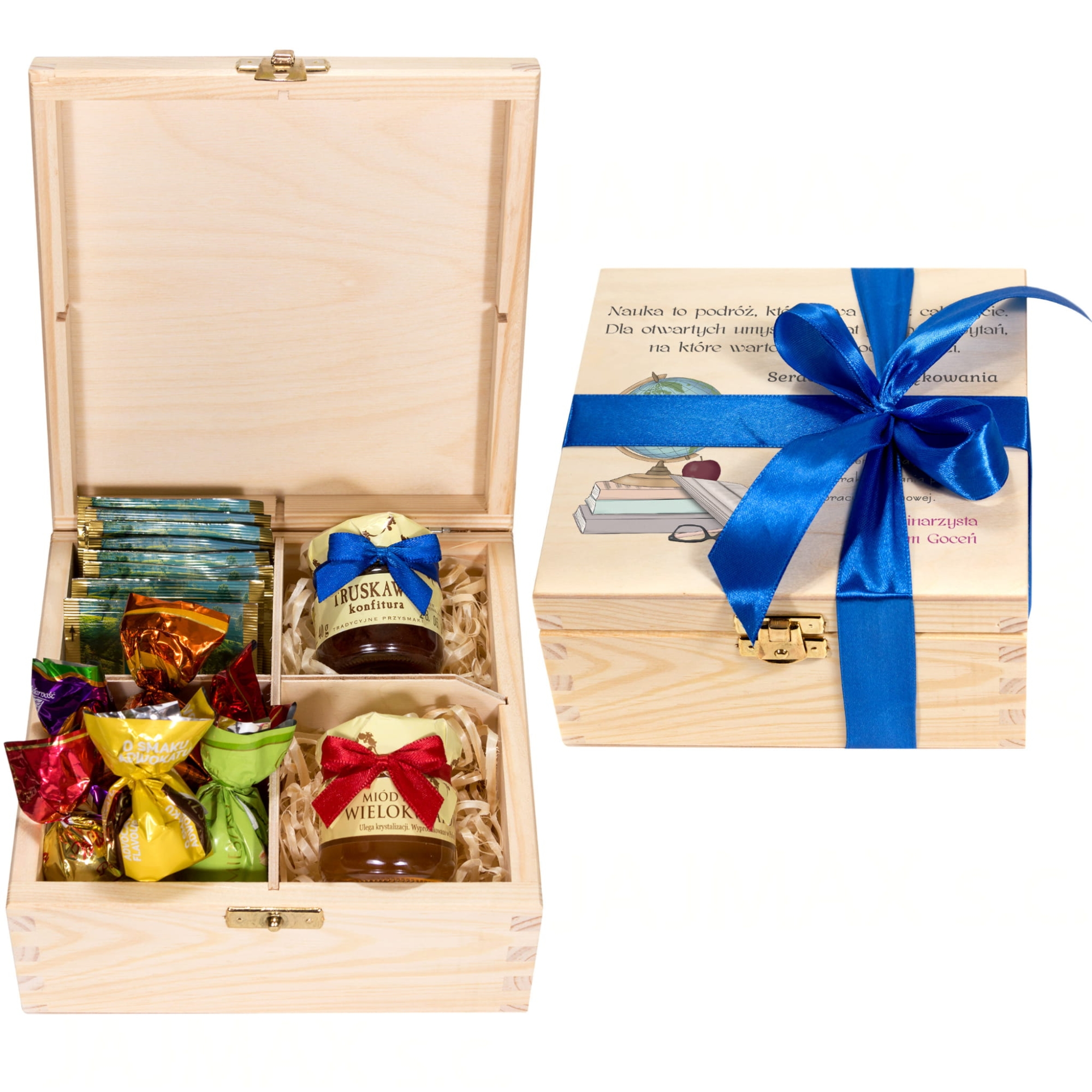 DREWNIANE PUDEŁKO SMAKOŁYKÓW zestaw dla nauczyciela prezent
