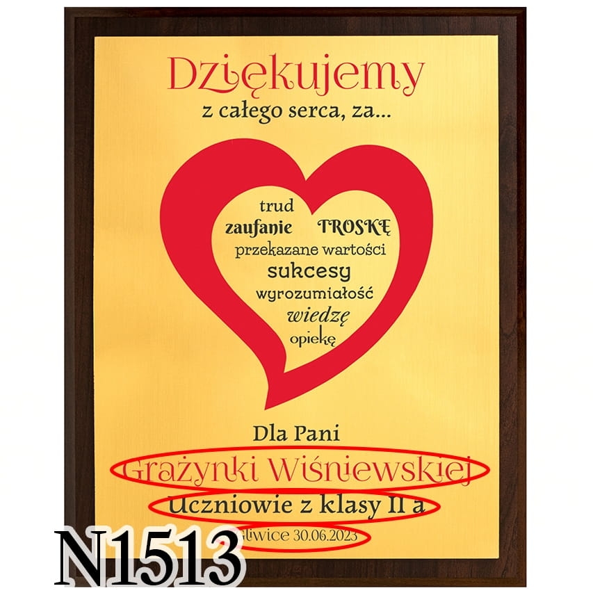 Obrazek złoty, prezent dyplom dla wychowawcy nadruk