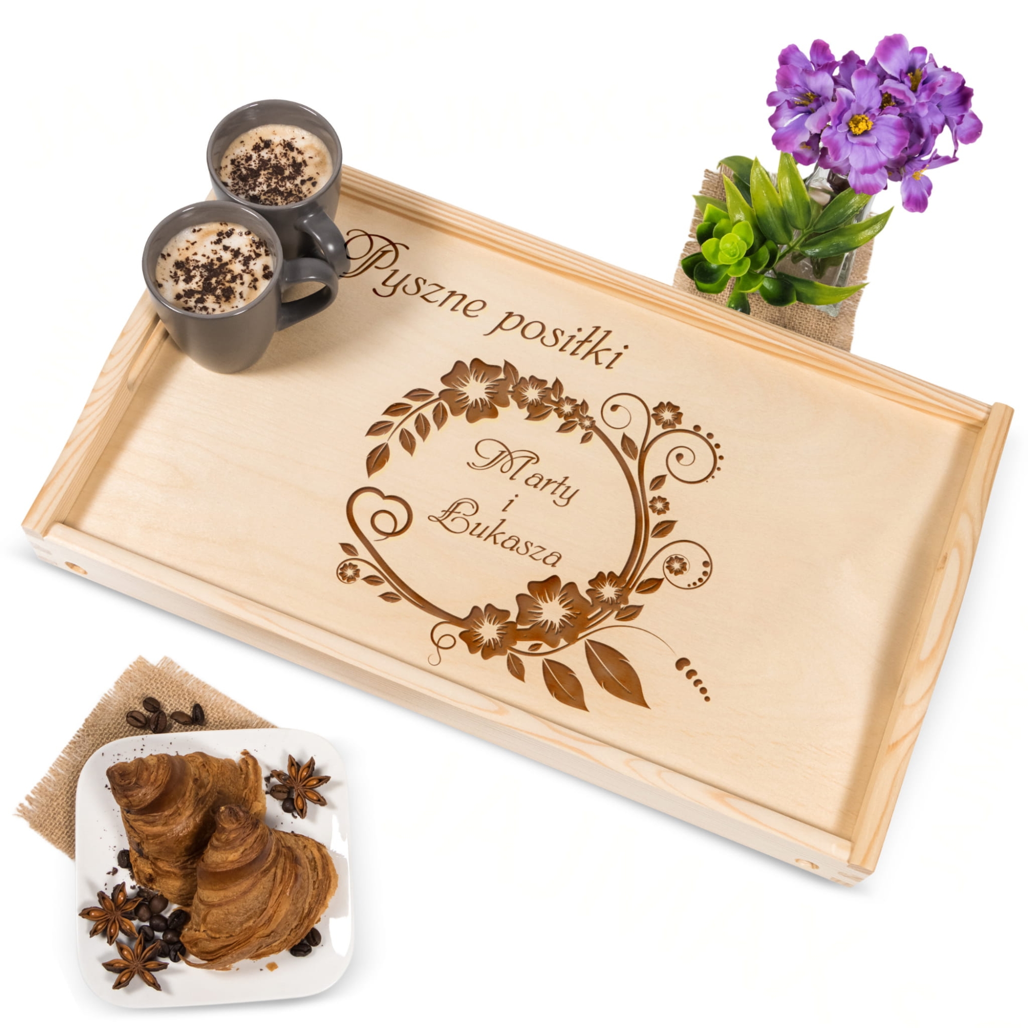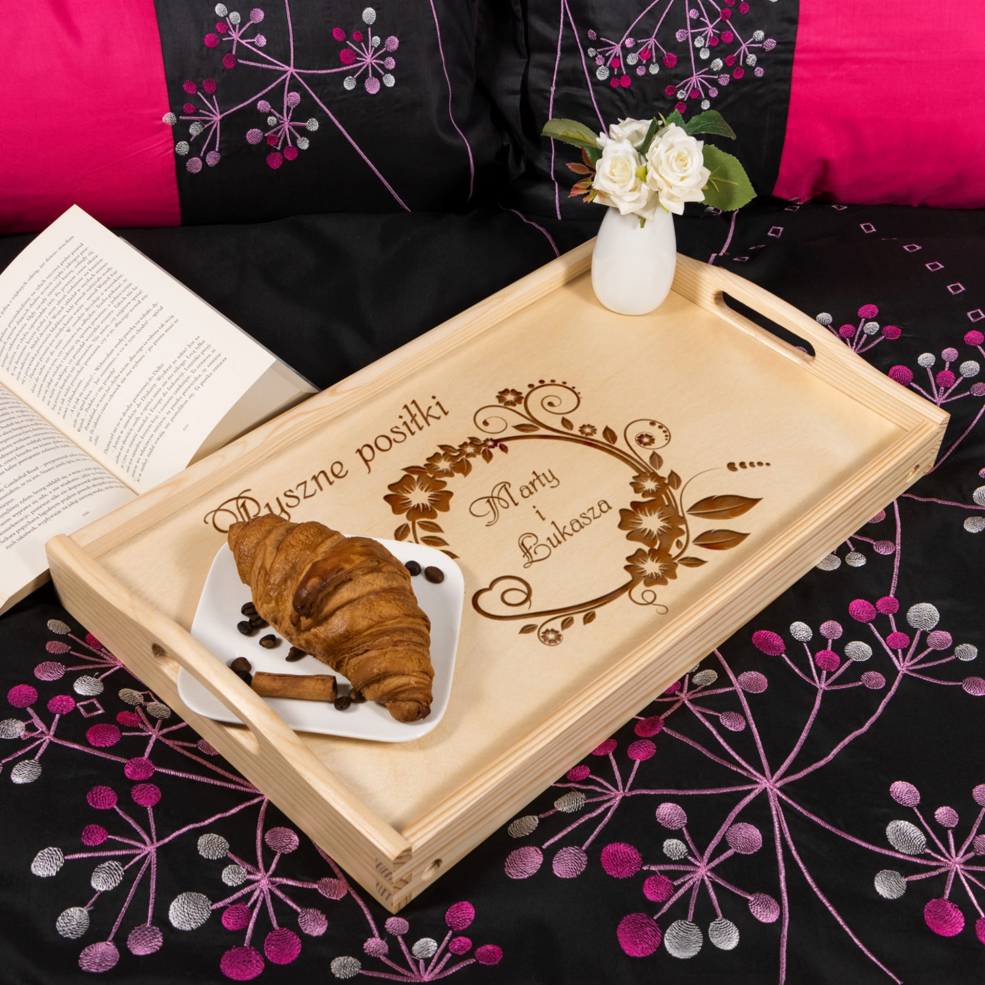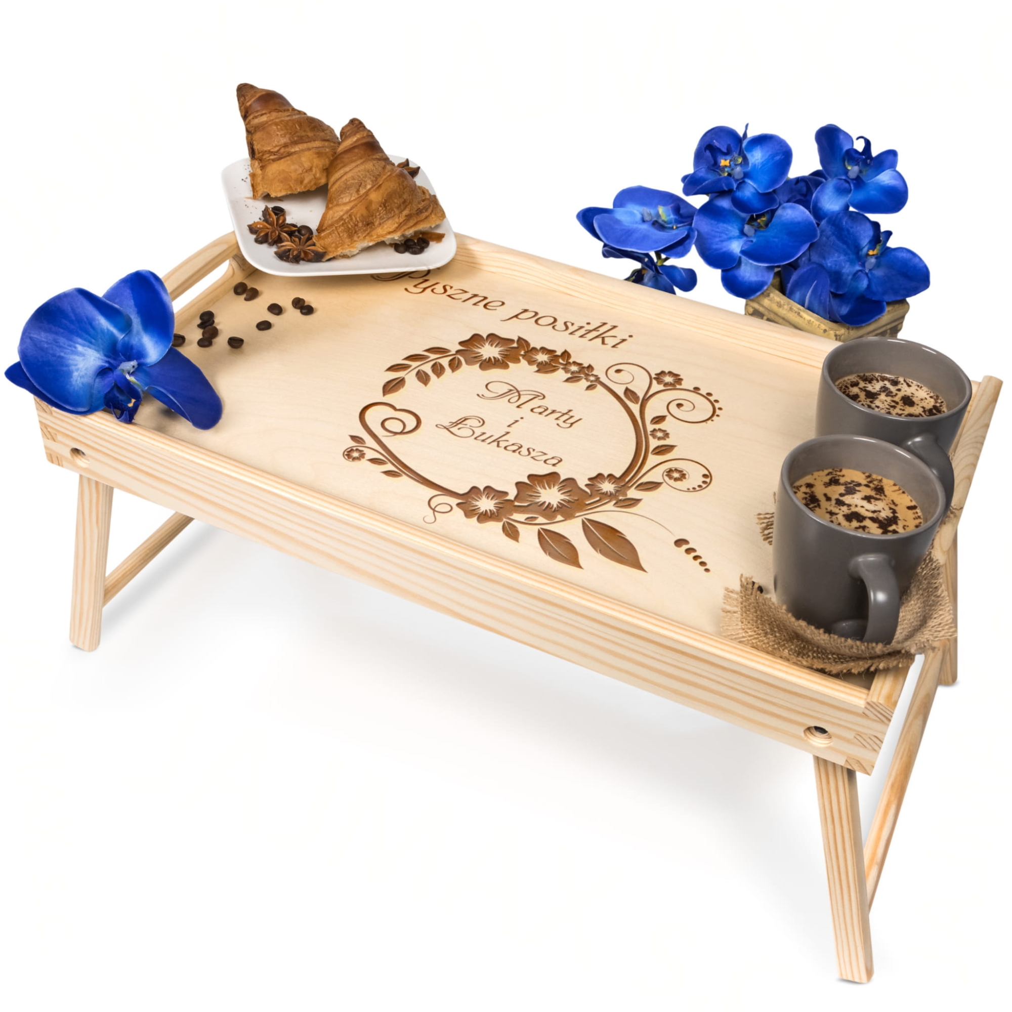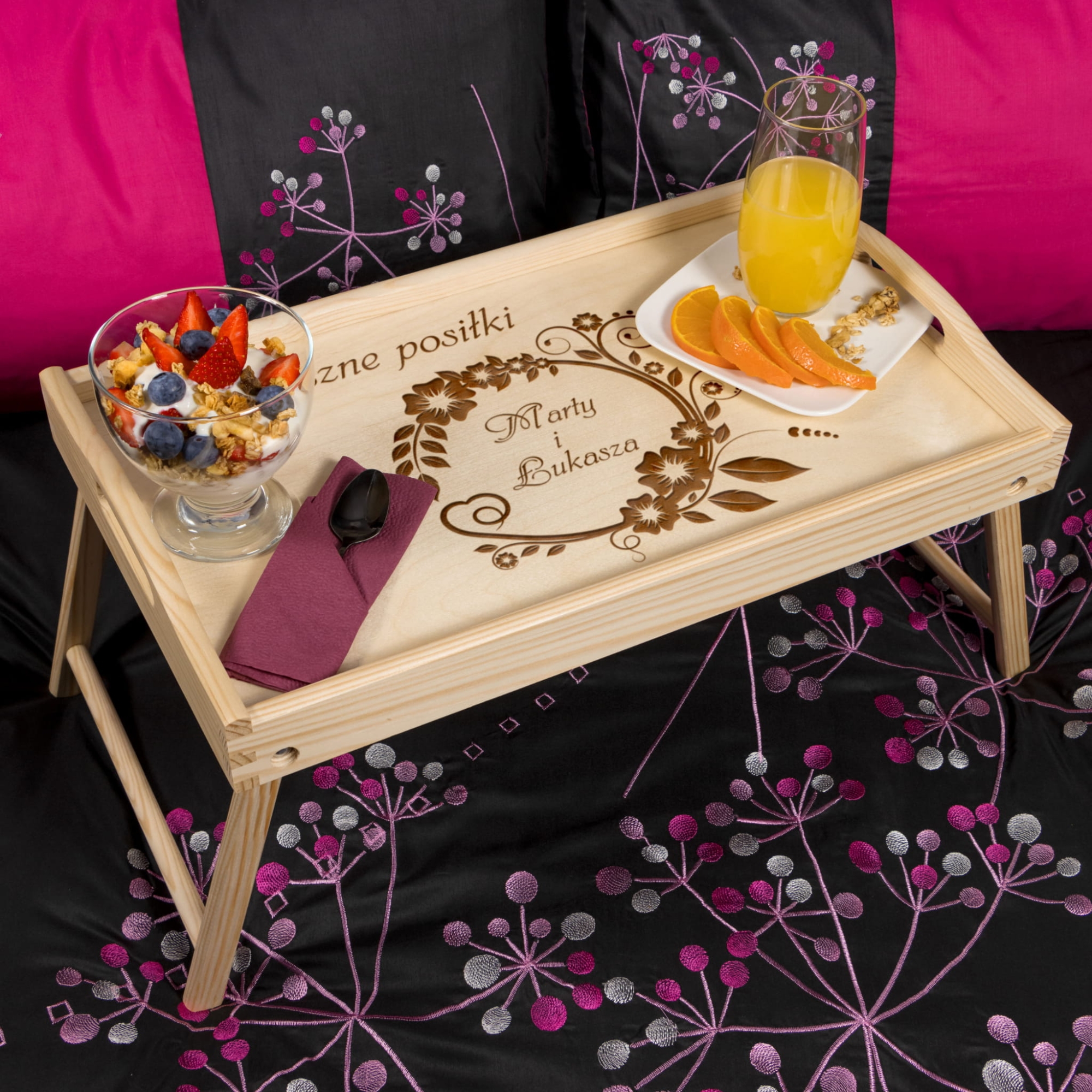 Stoliczek śniadaniowy do łóżka z imionami Pary Młodej