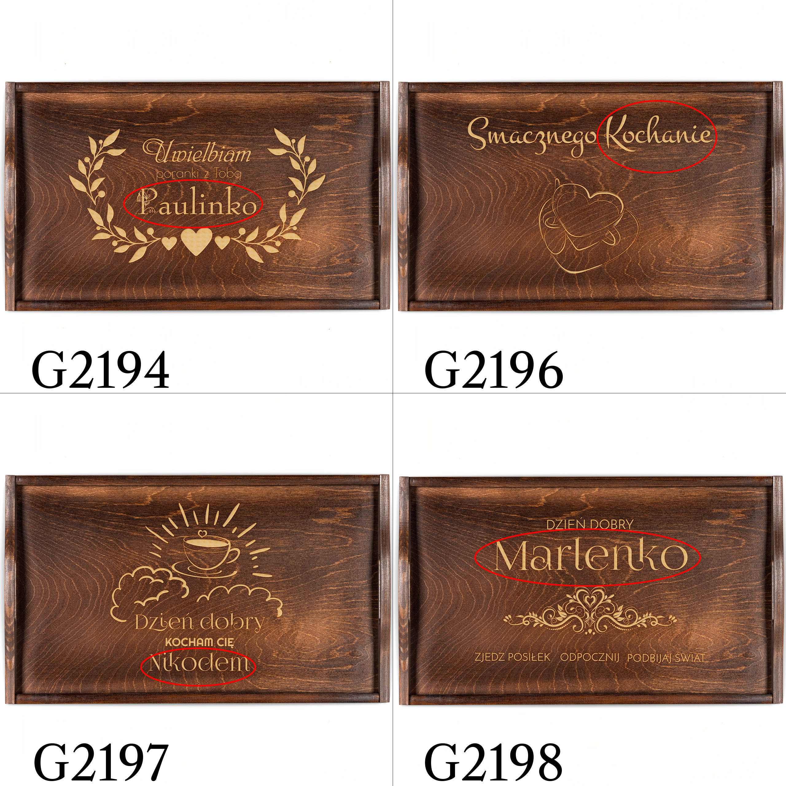 - wyślij do nas tekst w formie dokładnie takiej, jaka ma zostać umieszczona na produkcie tj. z zastosowaniem odpowiedniej pisowni, interpunkcji, odmiany imion itp.