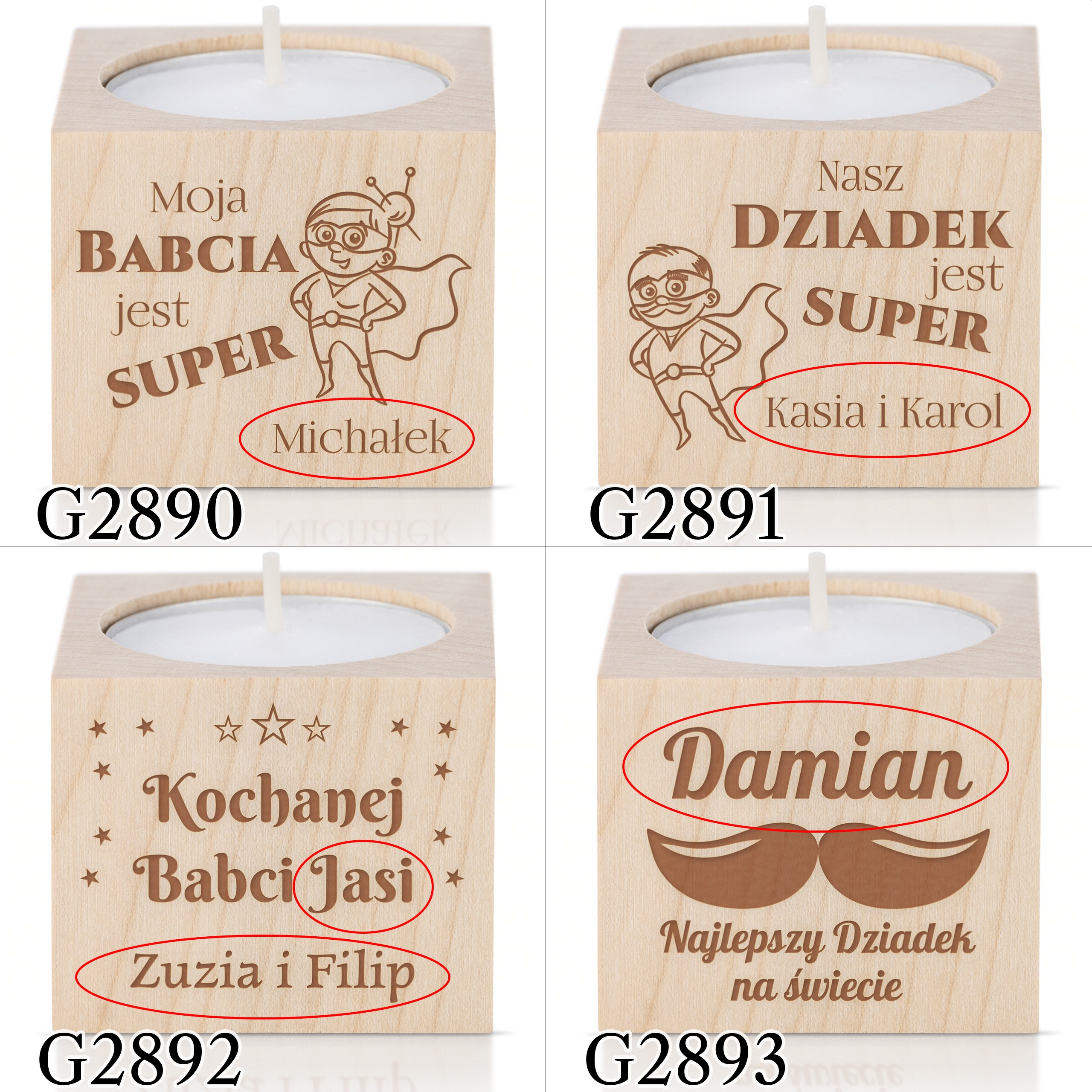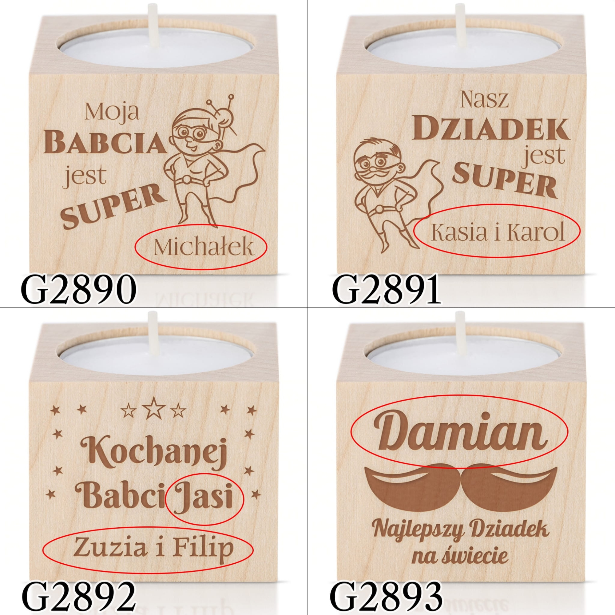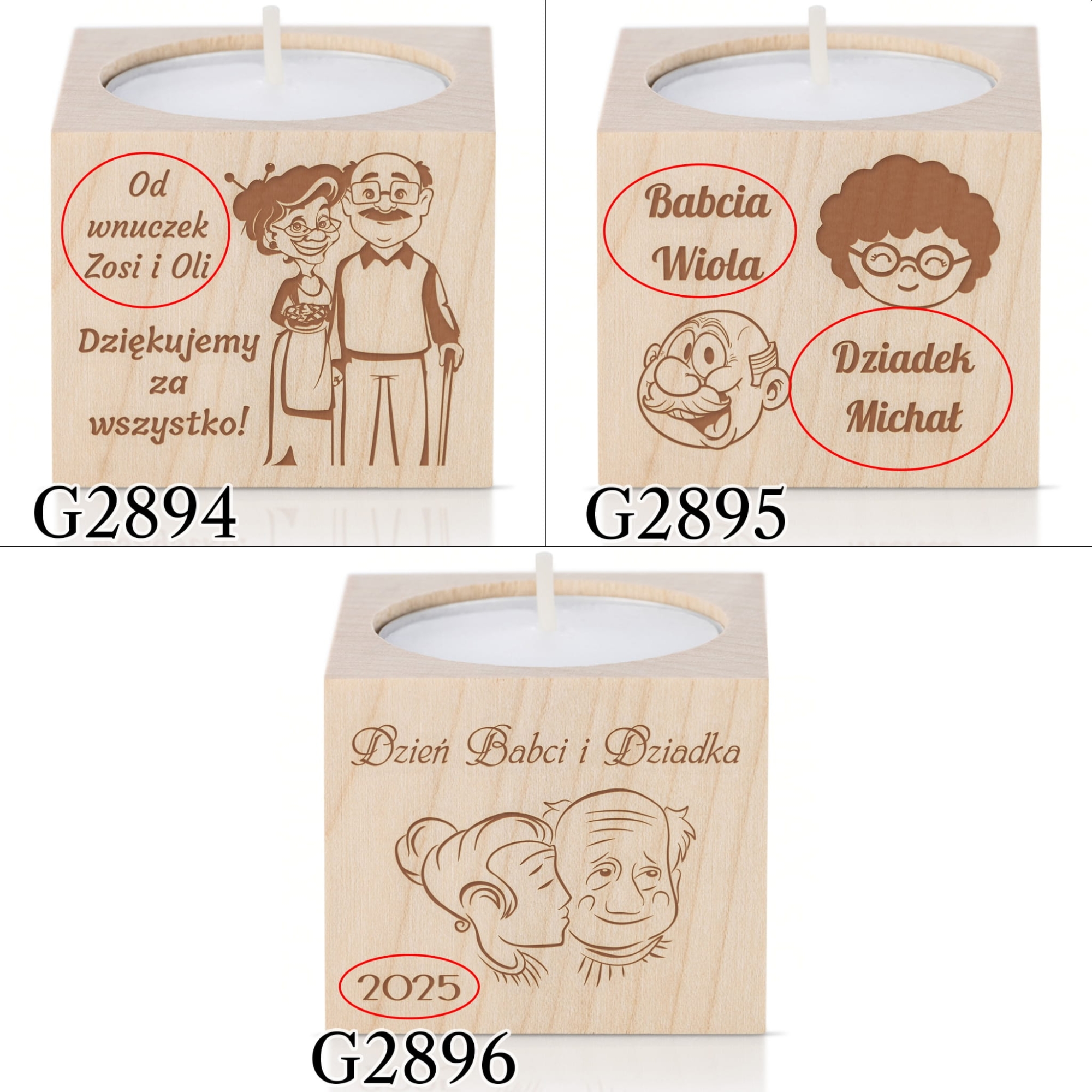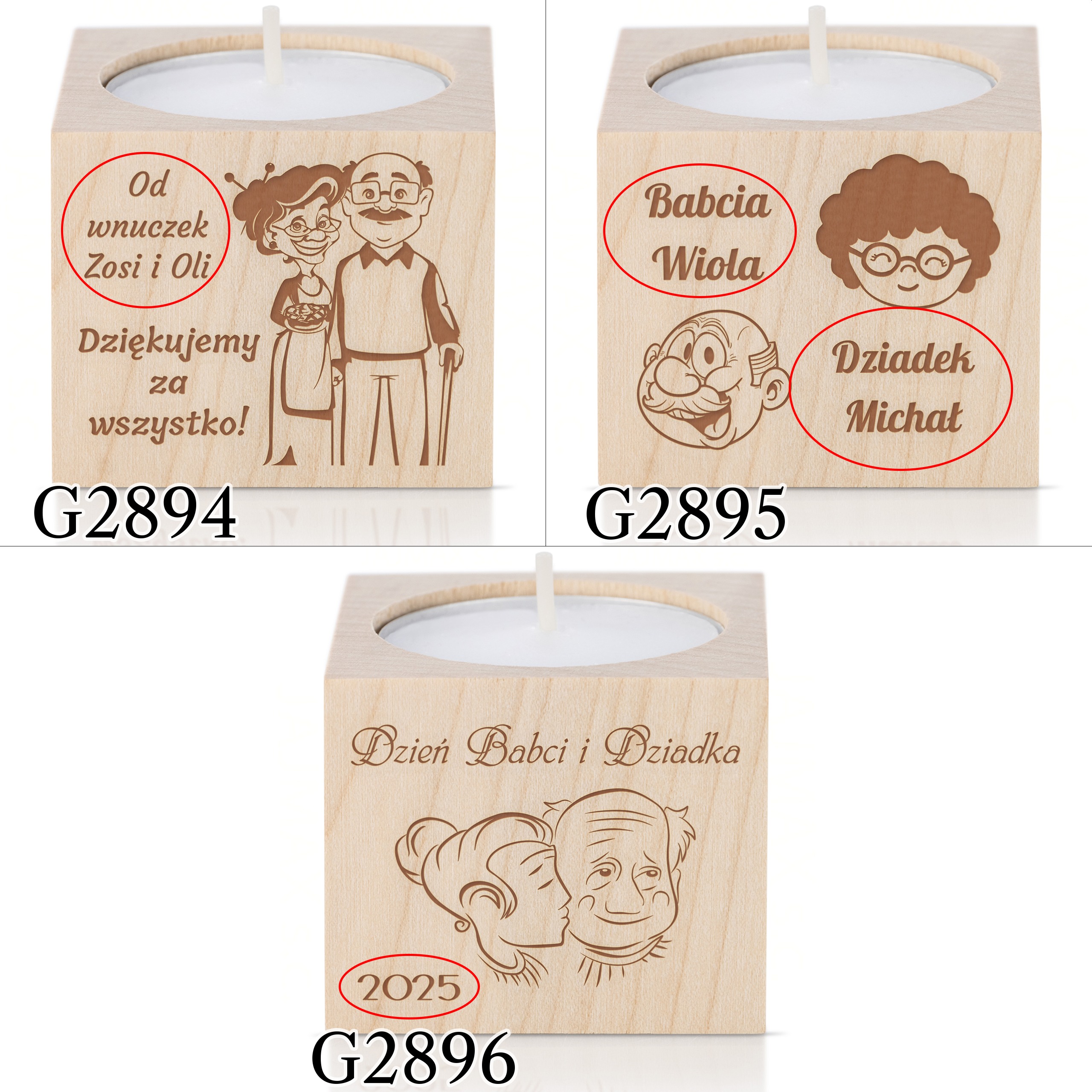Rustykalny drewniany świecznik na tealight z indywidualnym grawerem z okazji Dnia Babci i Dziadka