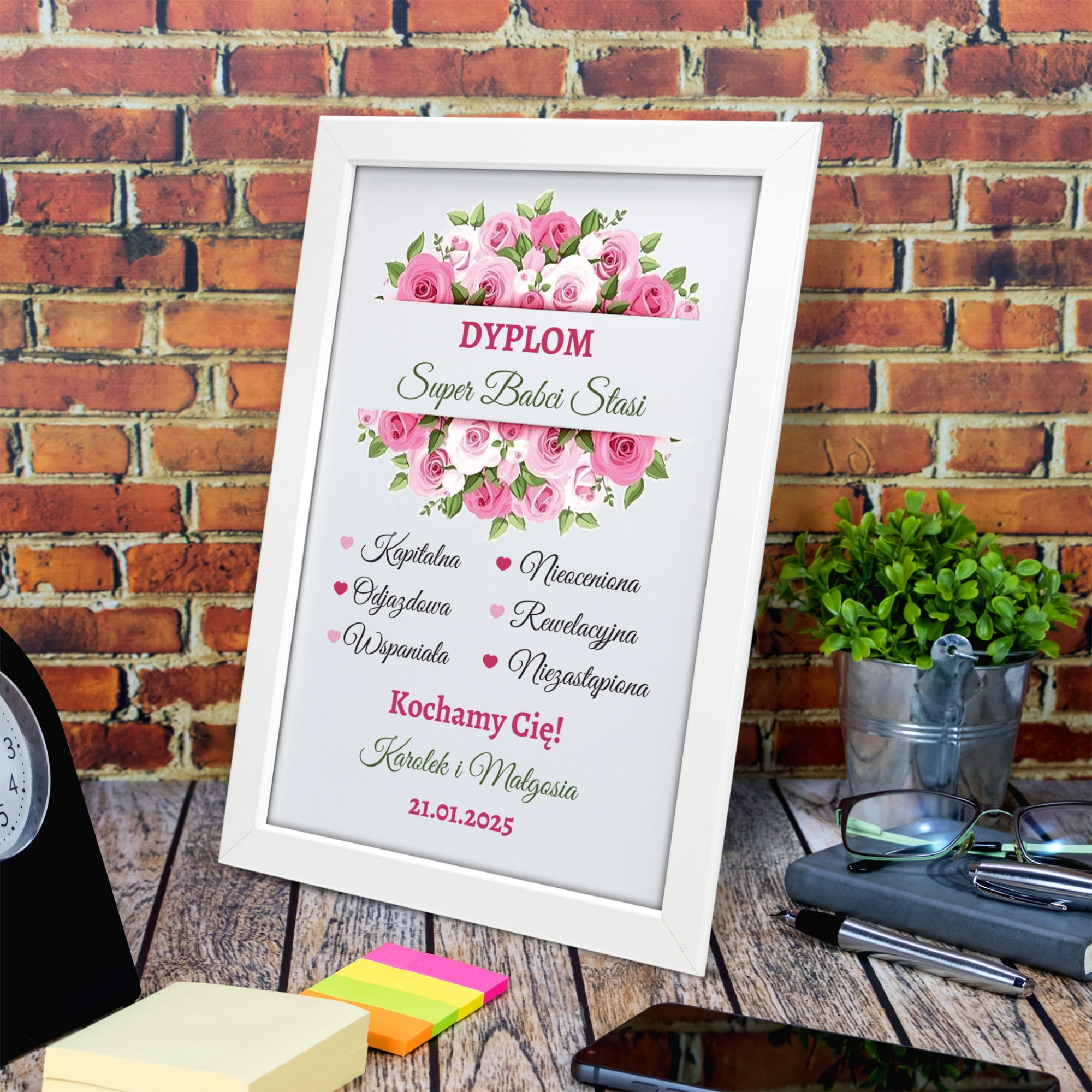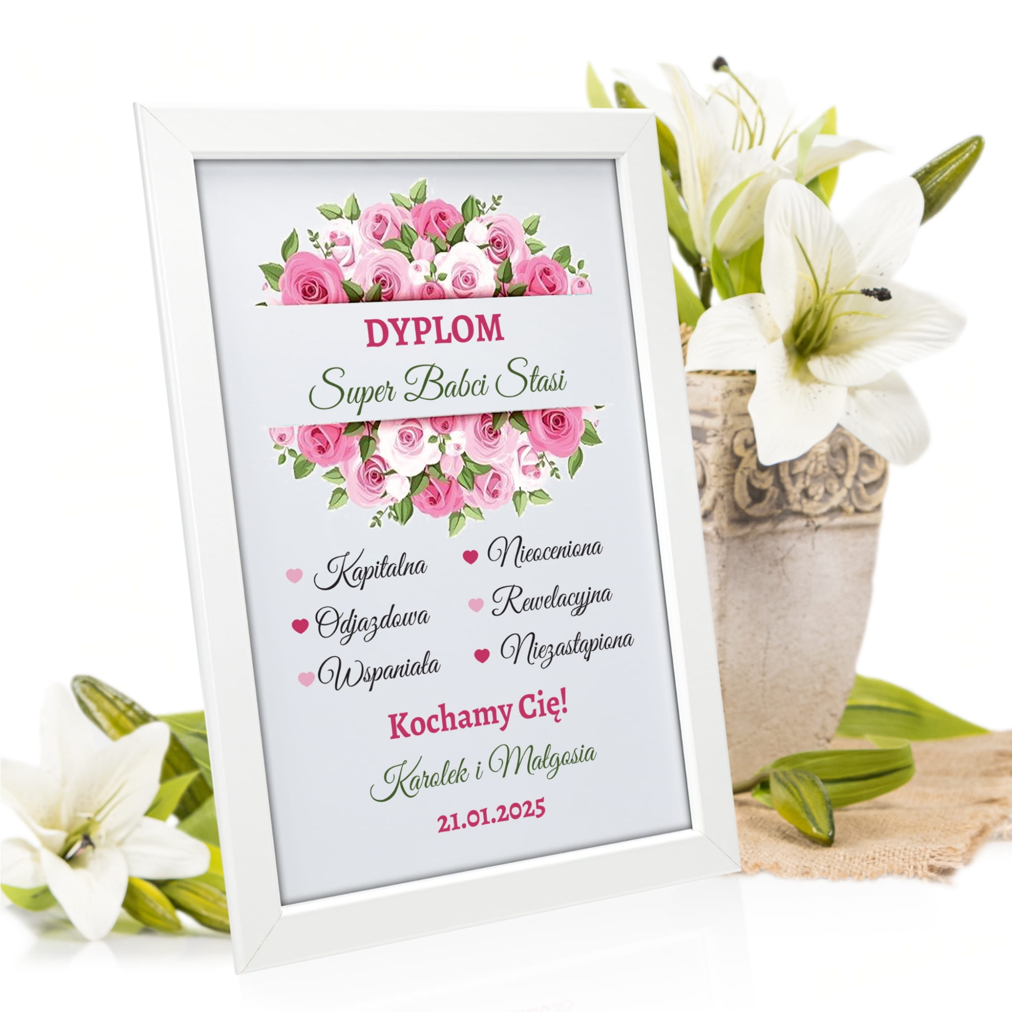 DYPLOM SUPER BABCI wyjątkowy prezent na Dzień Babci imię podpis