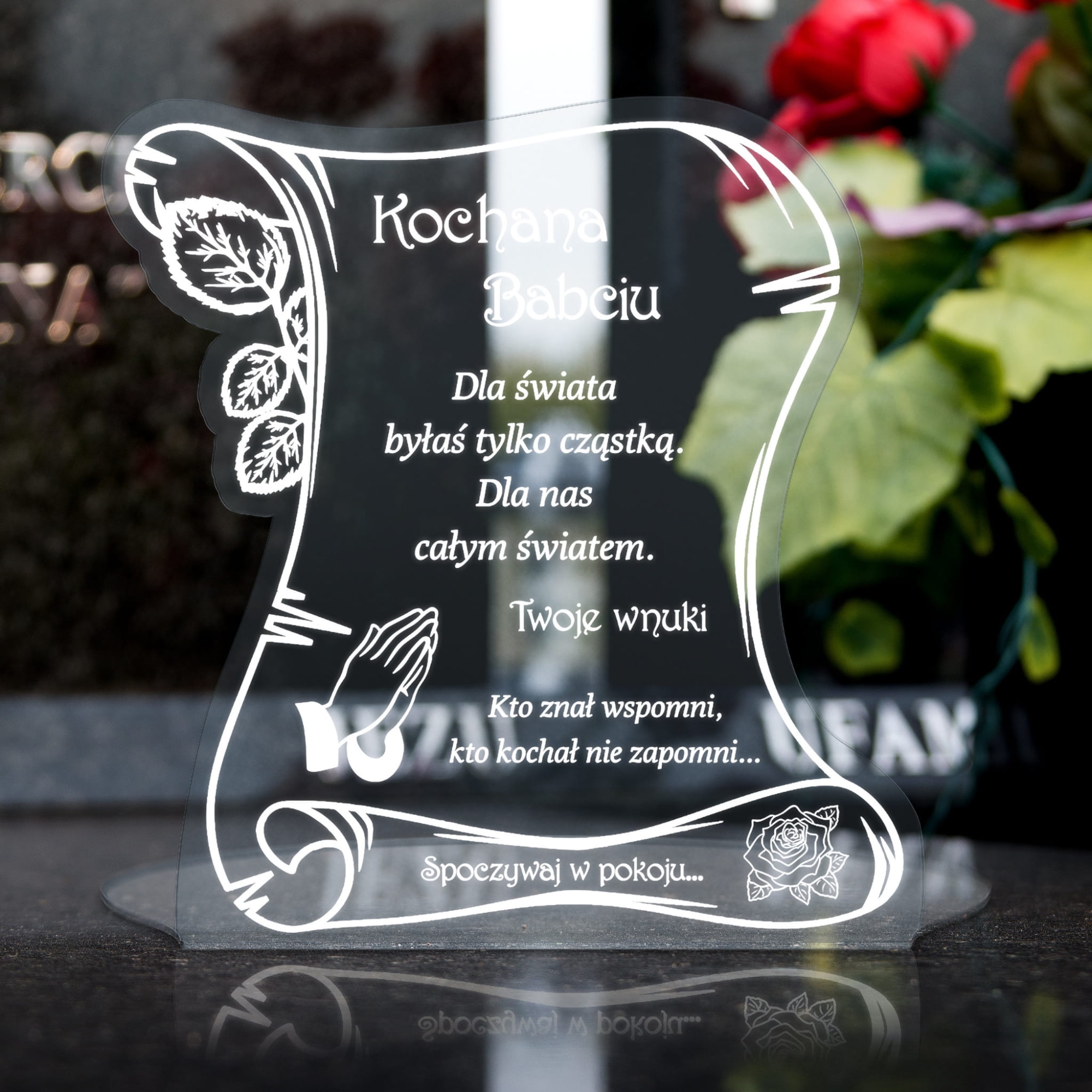Dekoracja na grób z dedykacją STATUETKA XXL LIST z cytatem grawer