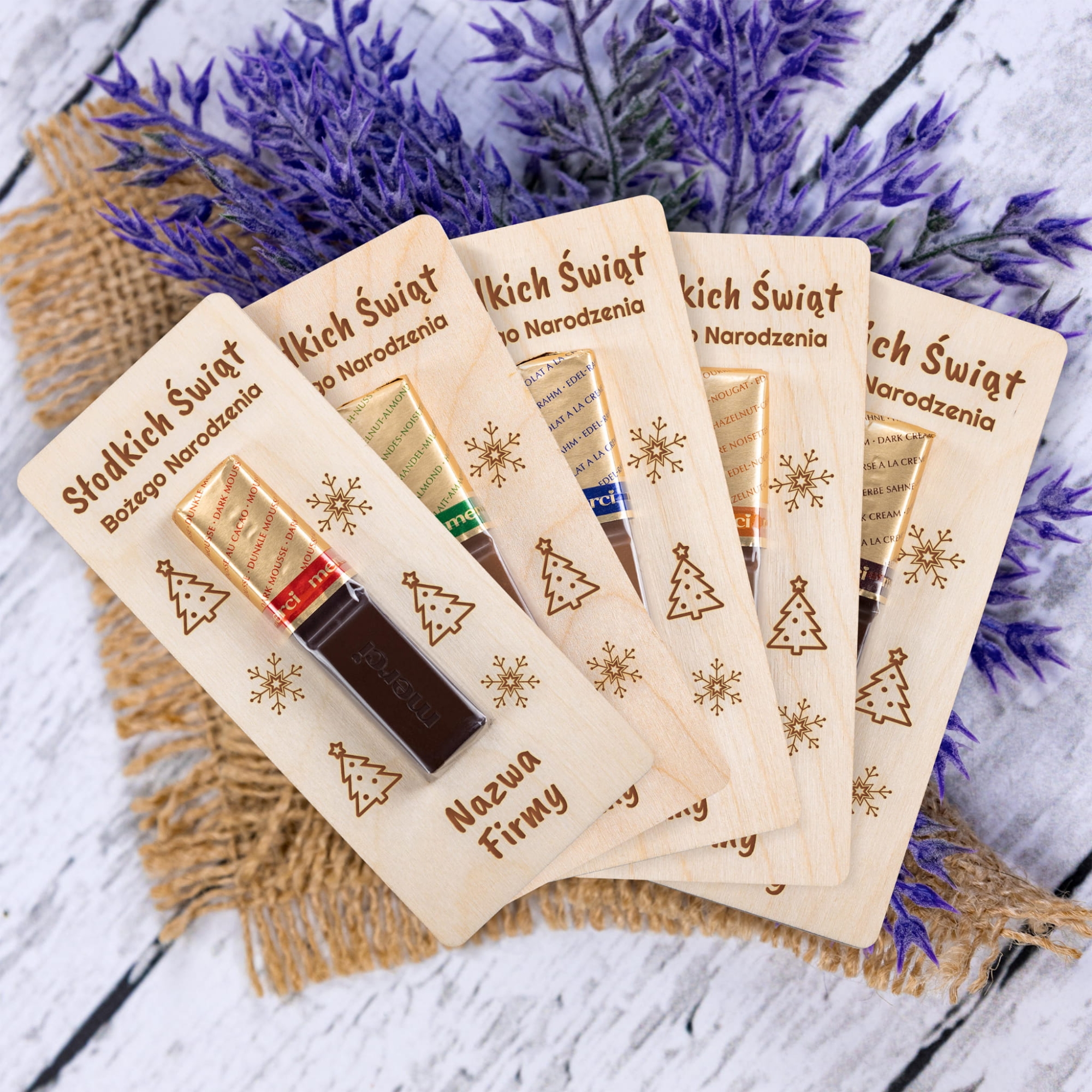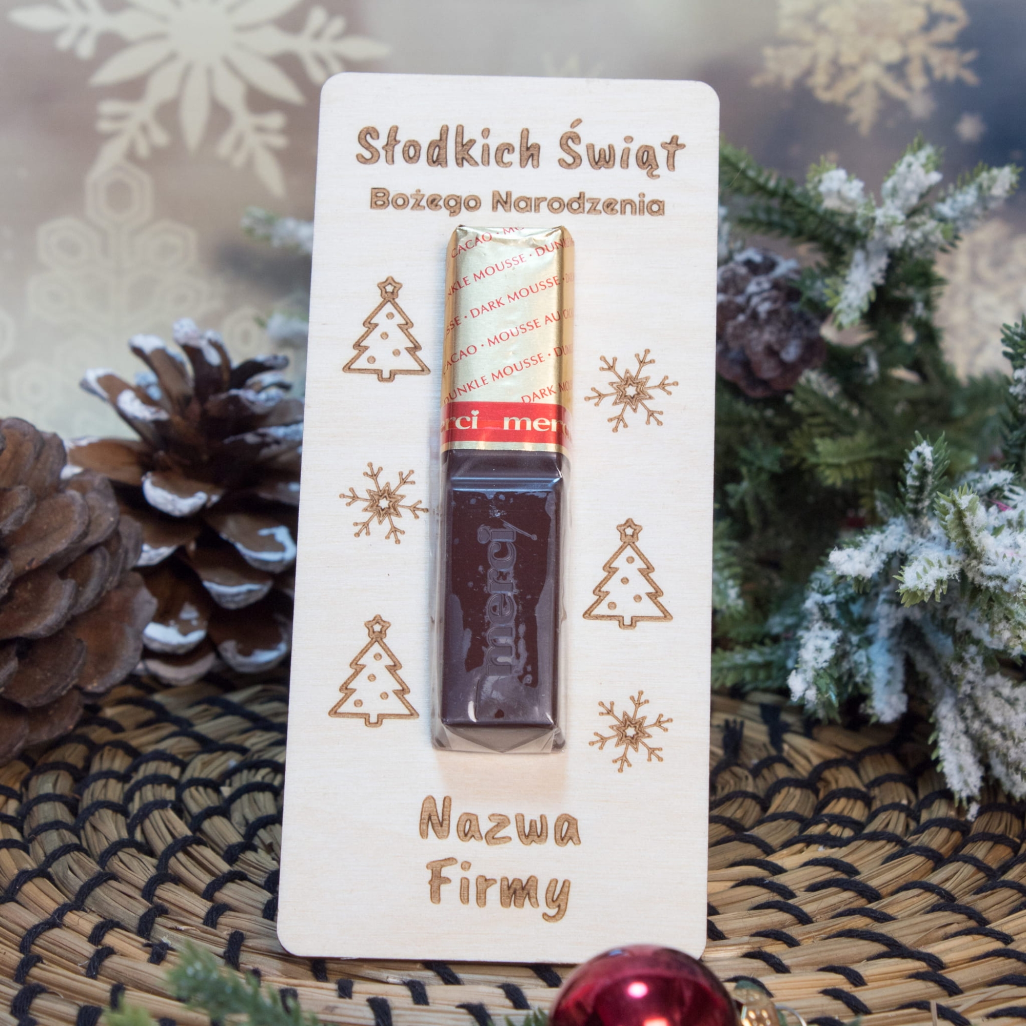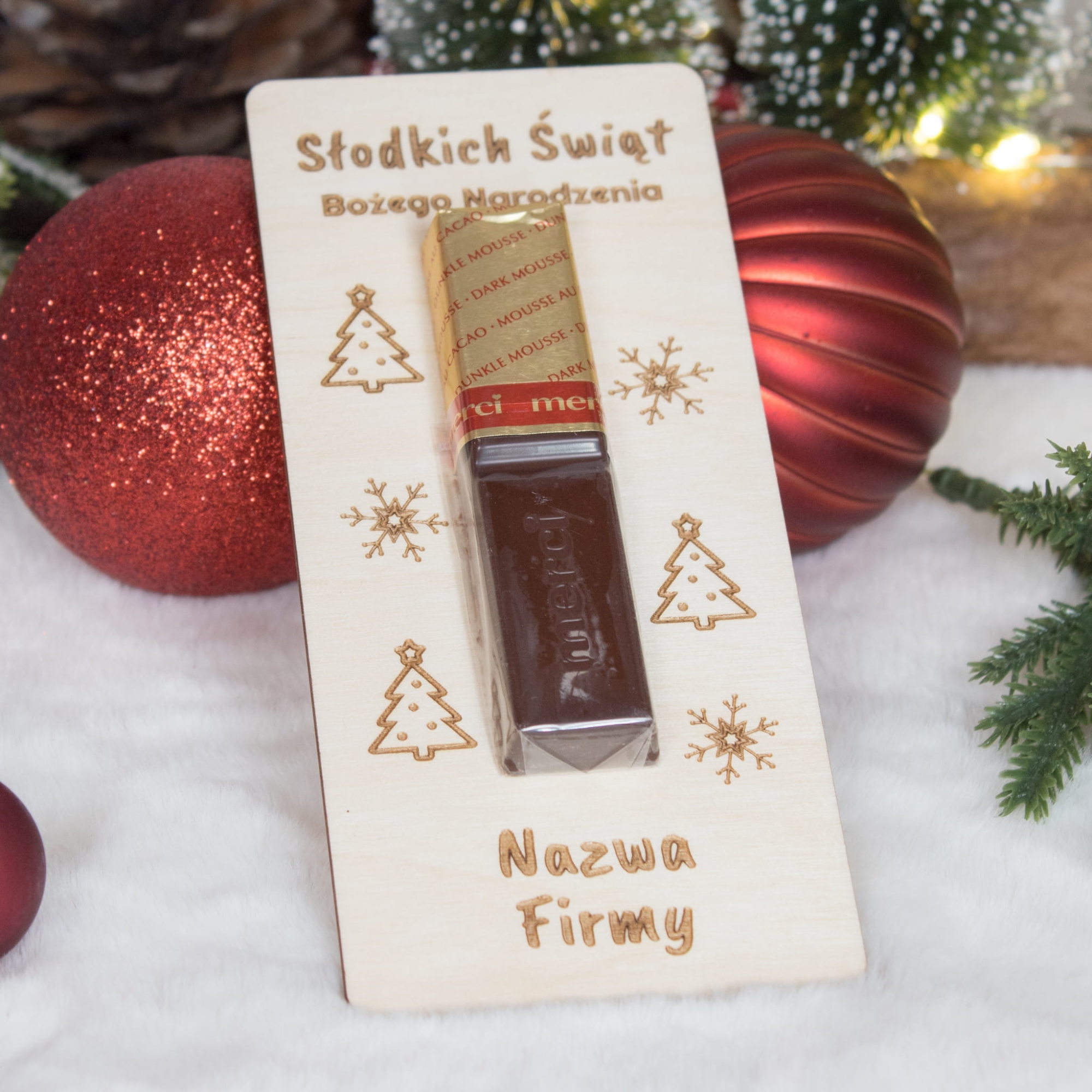 Deseczka z napisem słodkich świąt Bożego Narodzenia z nazwą Twojej firmy super pomysł na prezent dla klientów i pracowników