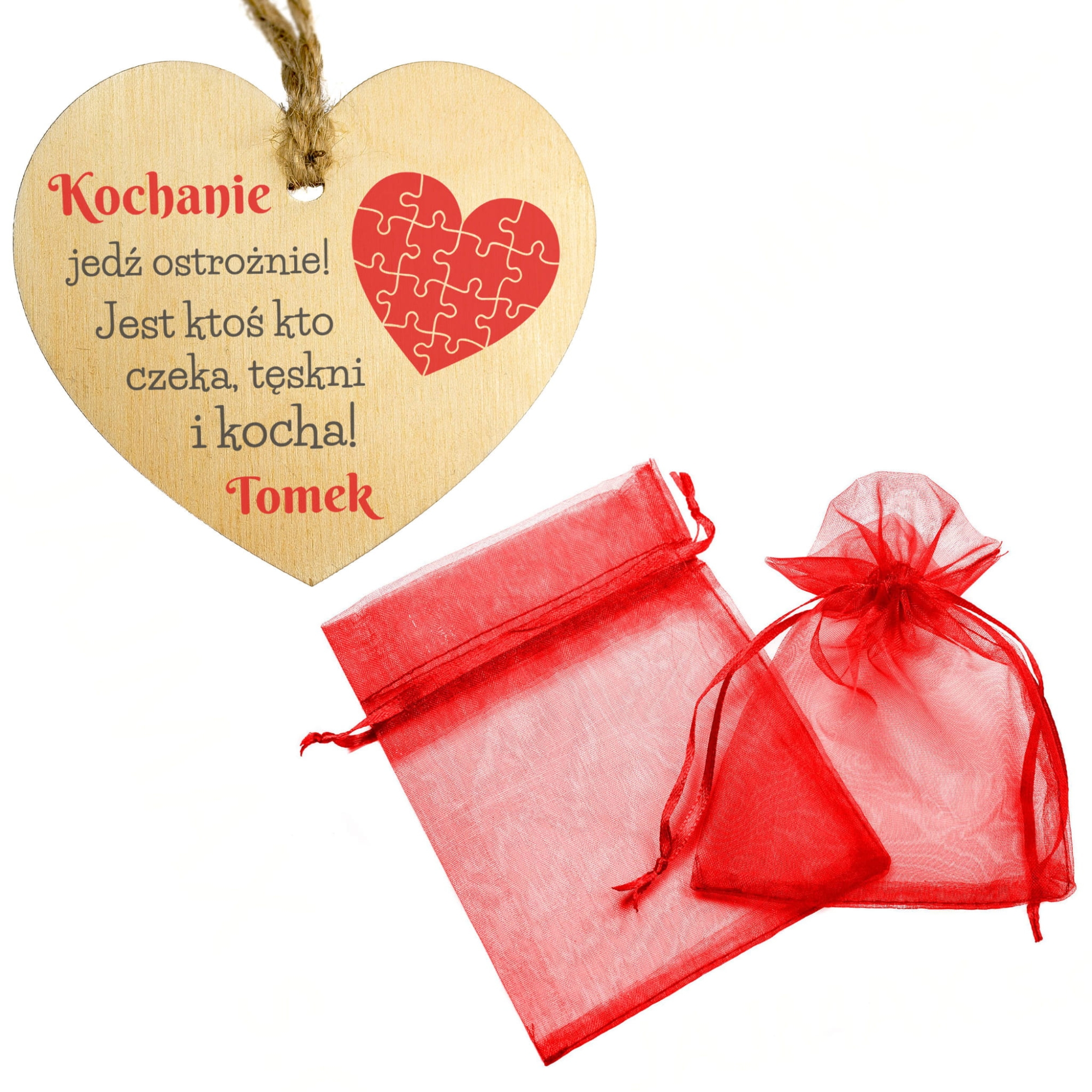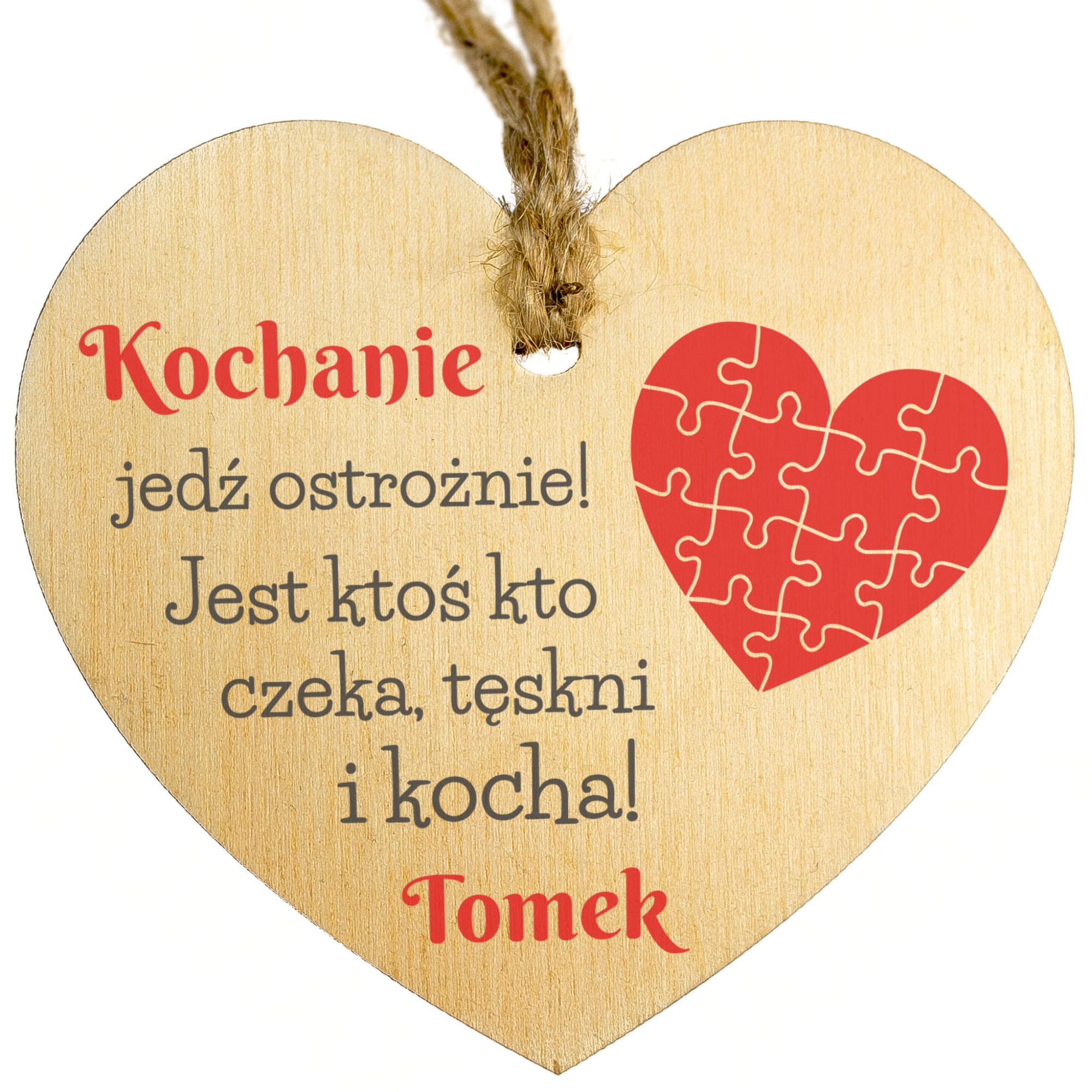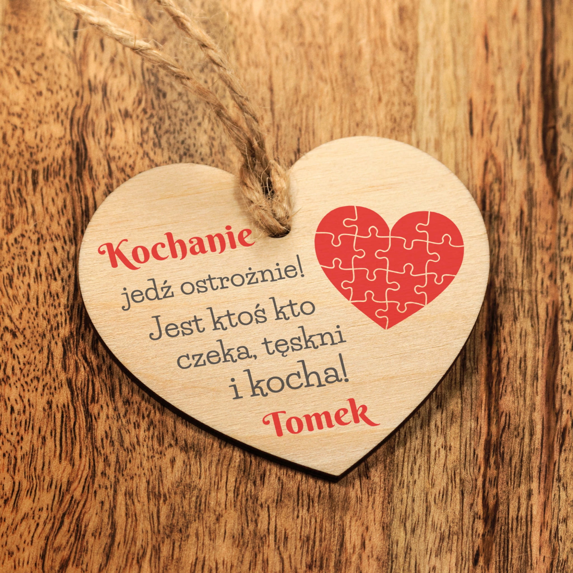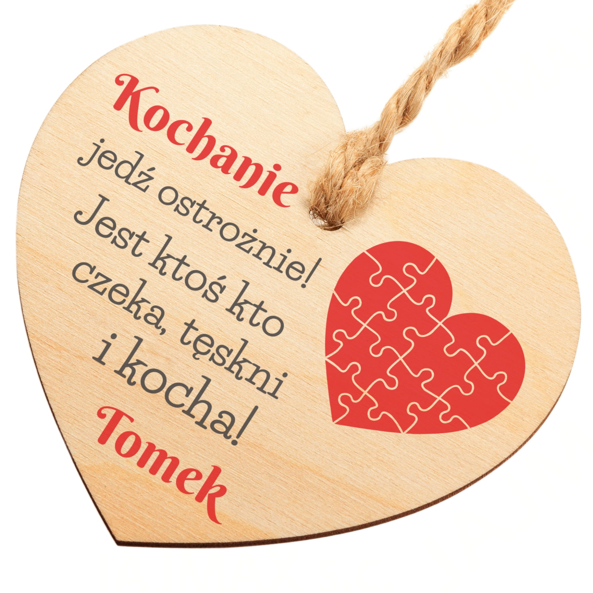 Drewniana zawieszka do auta z zabawnym kolorowym nadrukiem to super opcja na upominek dla Niego dla Niej - kierowcy. Zawieszka serce za sprawą sprzętu najwyższej jakości wykonana jest niezwykle precyzyjnie co z pewnością doceni sprawne oko ukochanego. W zależności od poczucia humoru was obojga, a także osobowości partnera przygotowaliśmy wiele wzorów do wyboru. Jedne bardziej neutralne, inne nieco "niegrzeczne". Ze względu na różnorodność propozycji z pewnością uda Ci się wybrać idealny wzór dla swojego ukochanego. Drewniana zawieszka do auta to świetny upominek dla Niego, szczególnie gdy często przebywa za 4 kółkami z racji zawodu lub stylu życia. Zawieszka do samochodu z personalizowanym kolorowym nadrukiem to oryginalny prezent, który zaskoczy, a także rozbawi. Za sprawą jednego zdania Twoja druga połówka będzie pamiętać o bezpiecznej podróży i o tym, że ktoś kocha i czeka na Niego. Drewniana zawieszka do auta w zestawie ze sznurkiem jutowym, to nietuzinkowy upominek na Walentynki dla Niego z imieniem.