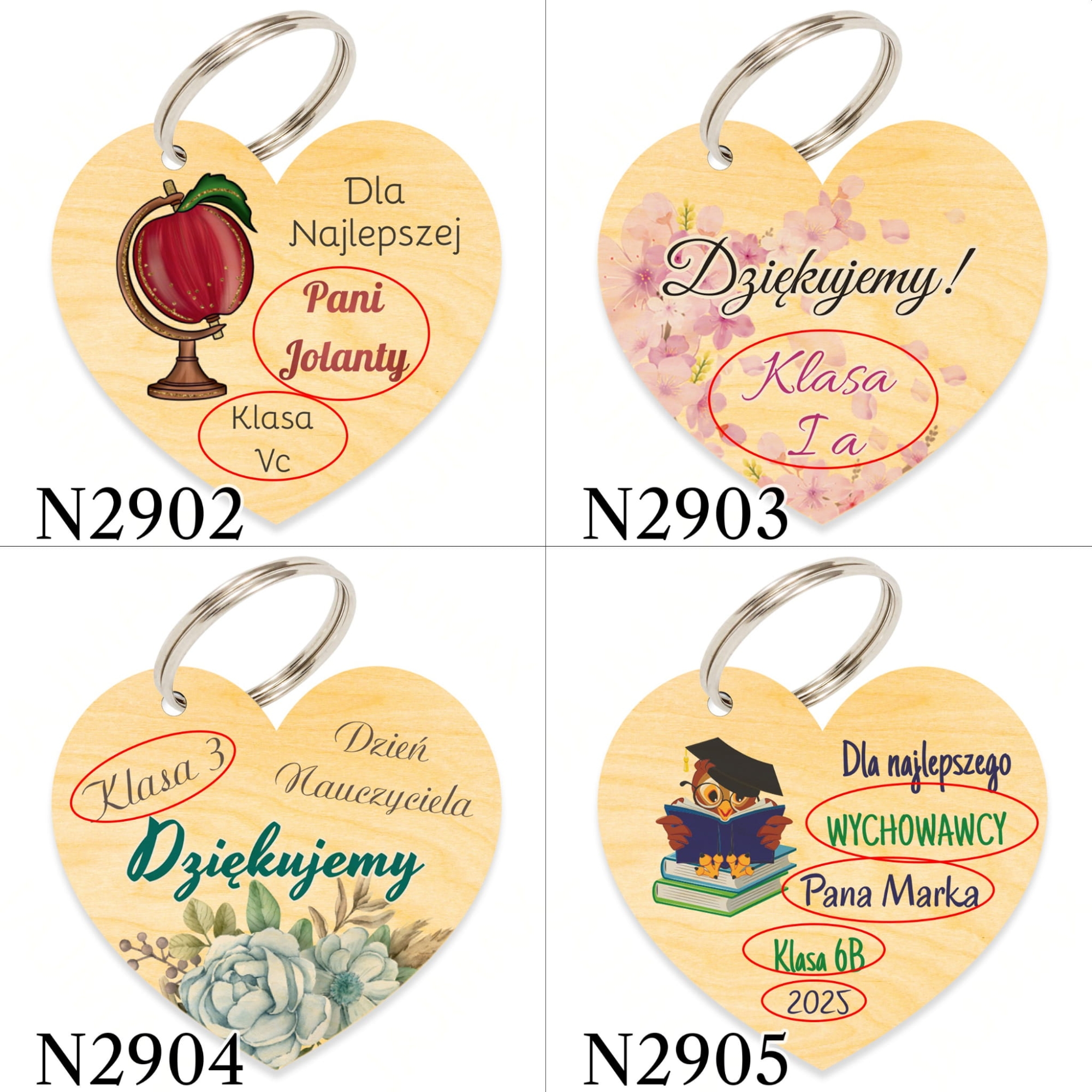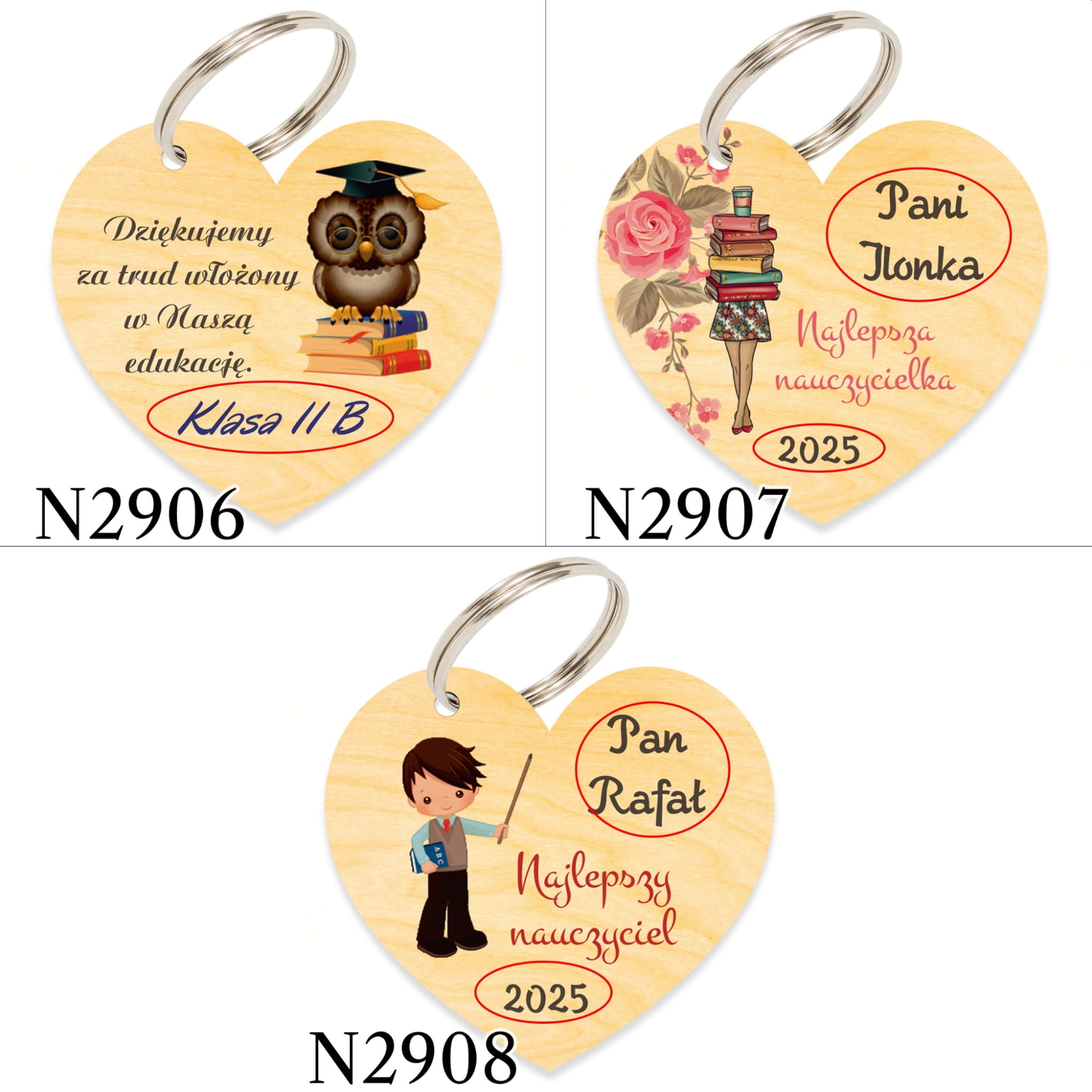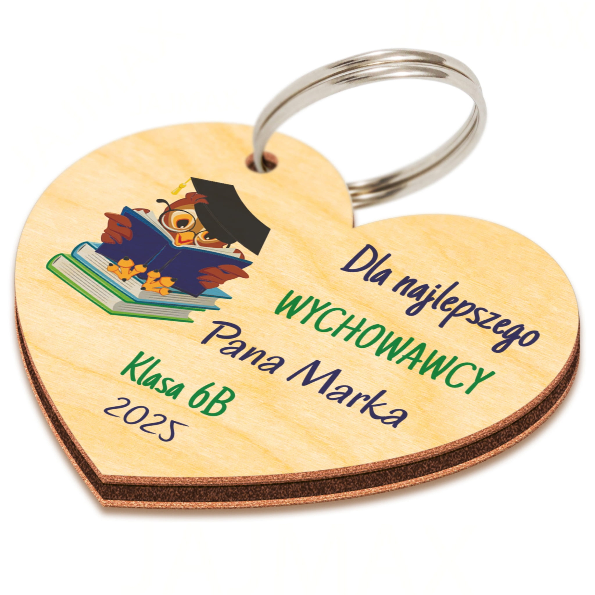 Nasz pomysł na drobny upominek z okazji Dnia Nauczyciela lub upominek na Zakończenie Roku Szkolnego to drewniany breloczek serce z Twoją dedykacją. Taki prezent dla nauczyciela to fajny gadżet, który będzie odmianą dla tradycyjnych upominków. Breloczek serce występuje w wielu wzorach graficznych do wyboru zarówno dla Pana Nauczyciela jak i dla Pani Nauczycielki.