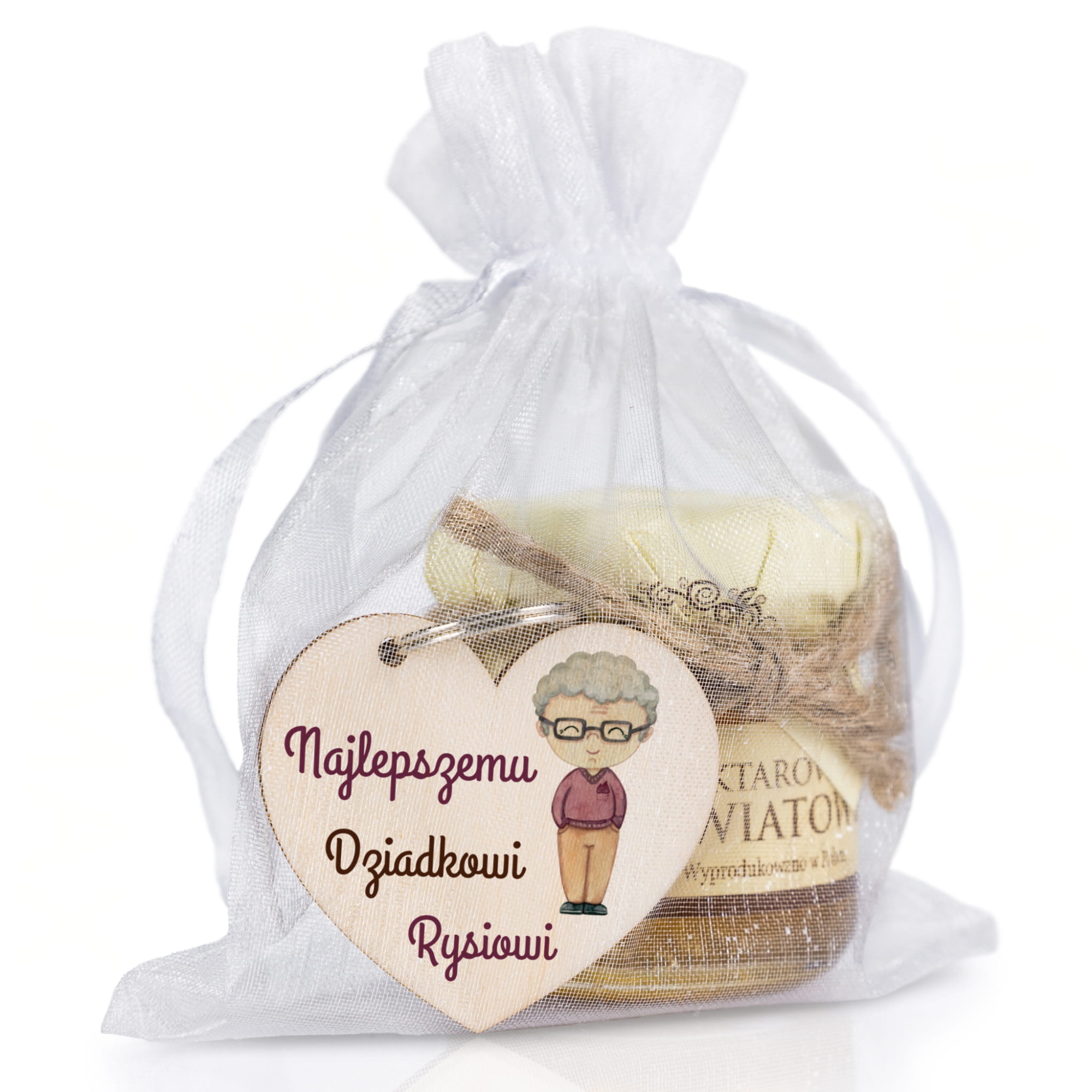 Drewniany breloczek + miód prezent na DZIEŃ BABCI I DZIADKA