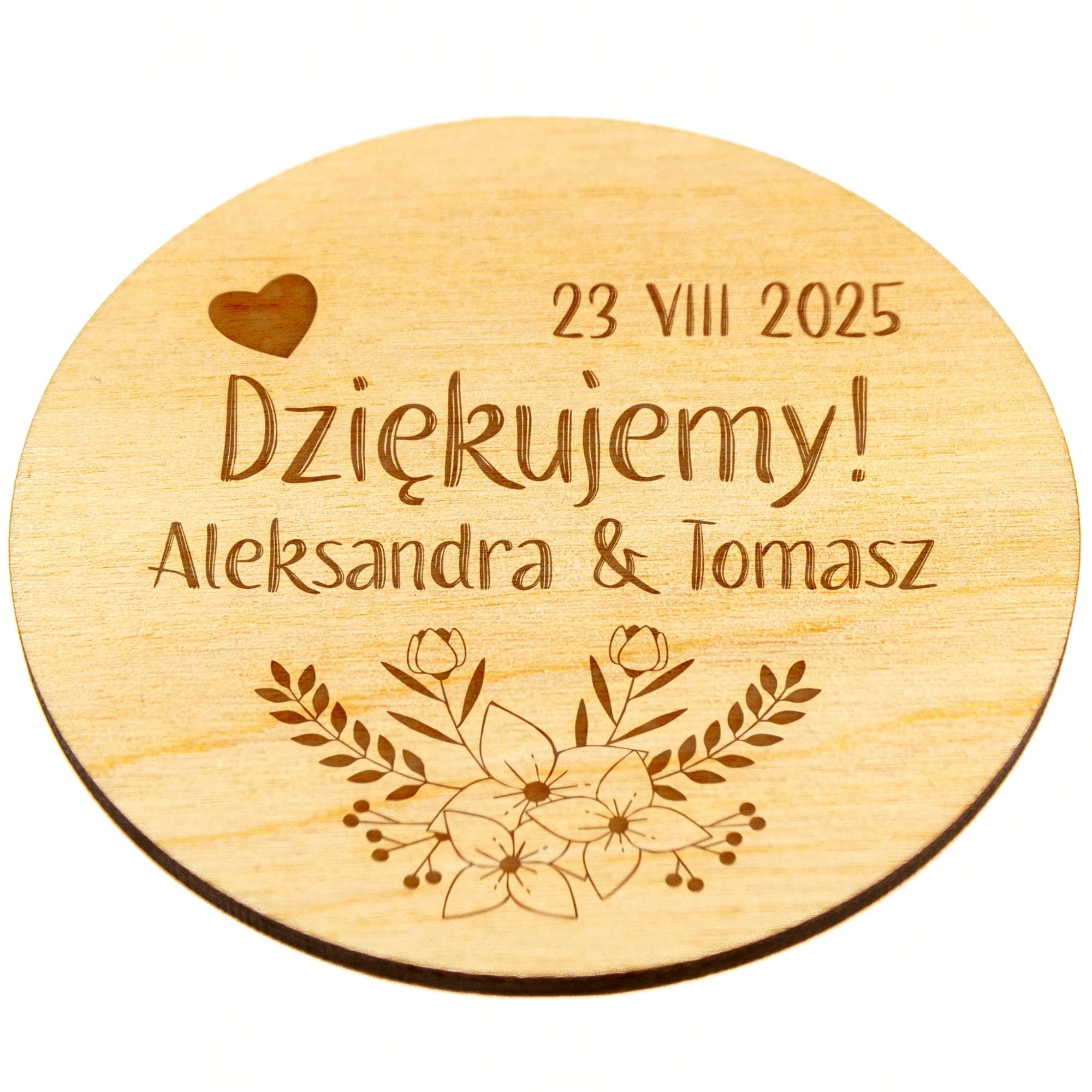 Drewniany magnes z grawerem PODZIĘKOWANIE DLA GOŚCI NA ŚLUB