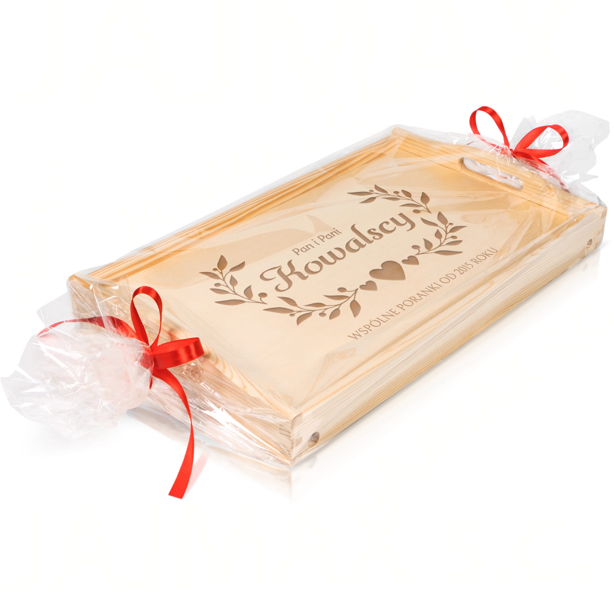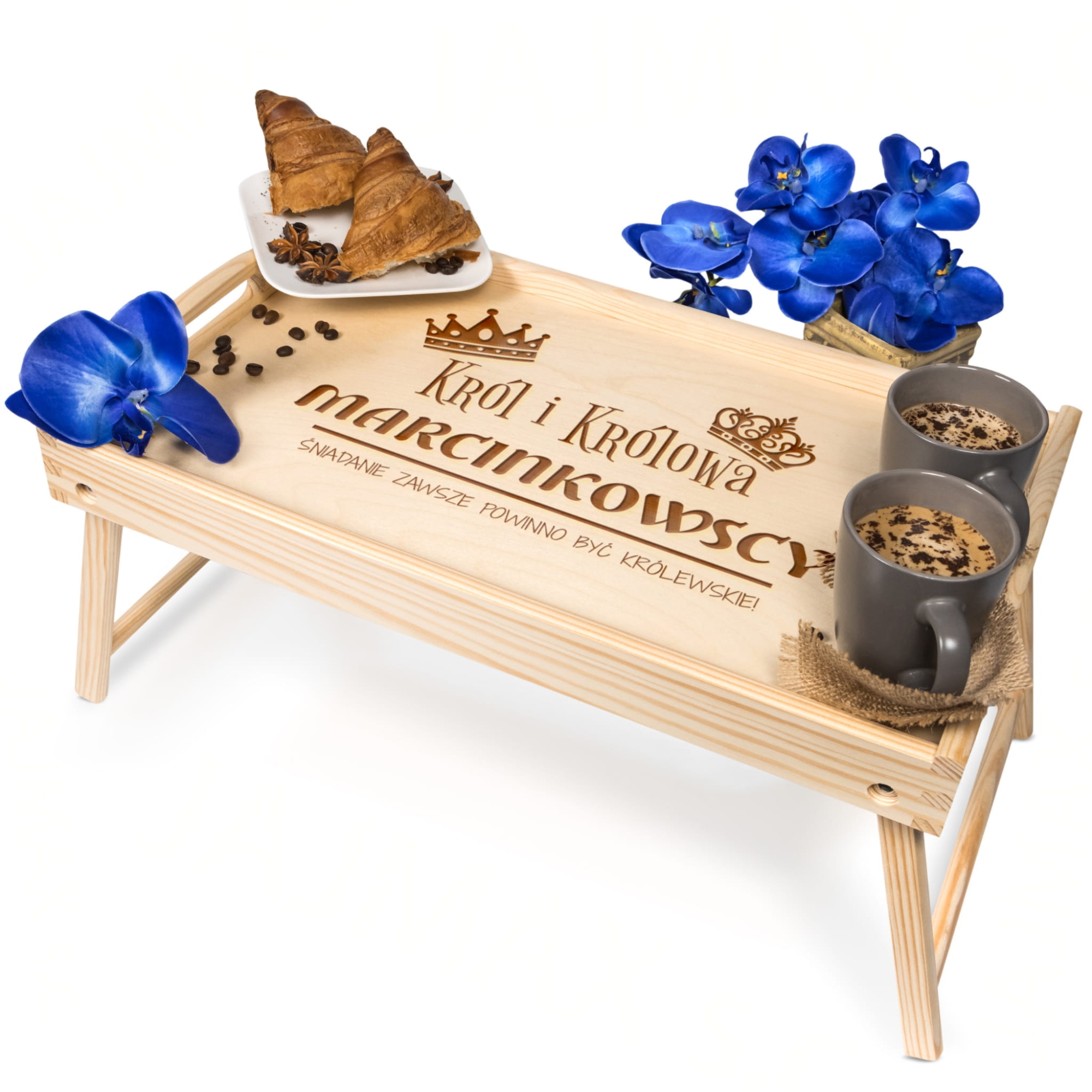 Drewniany stolik śniadaniowy z indywidualnym grawerem