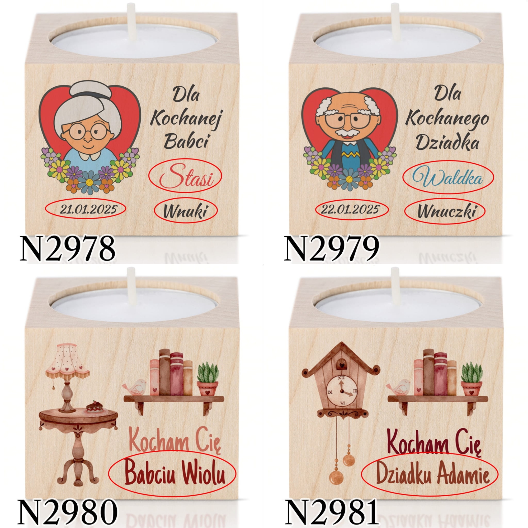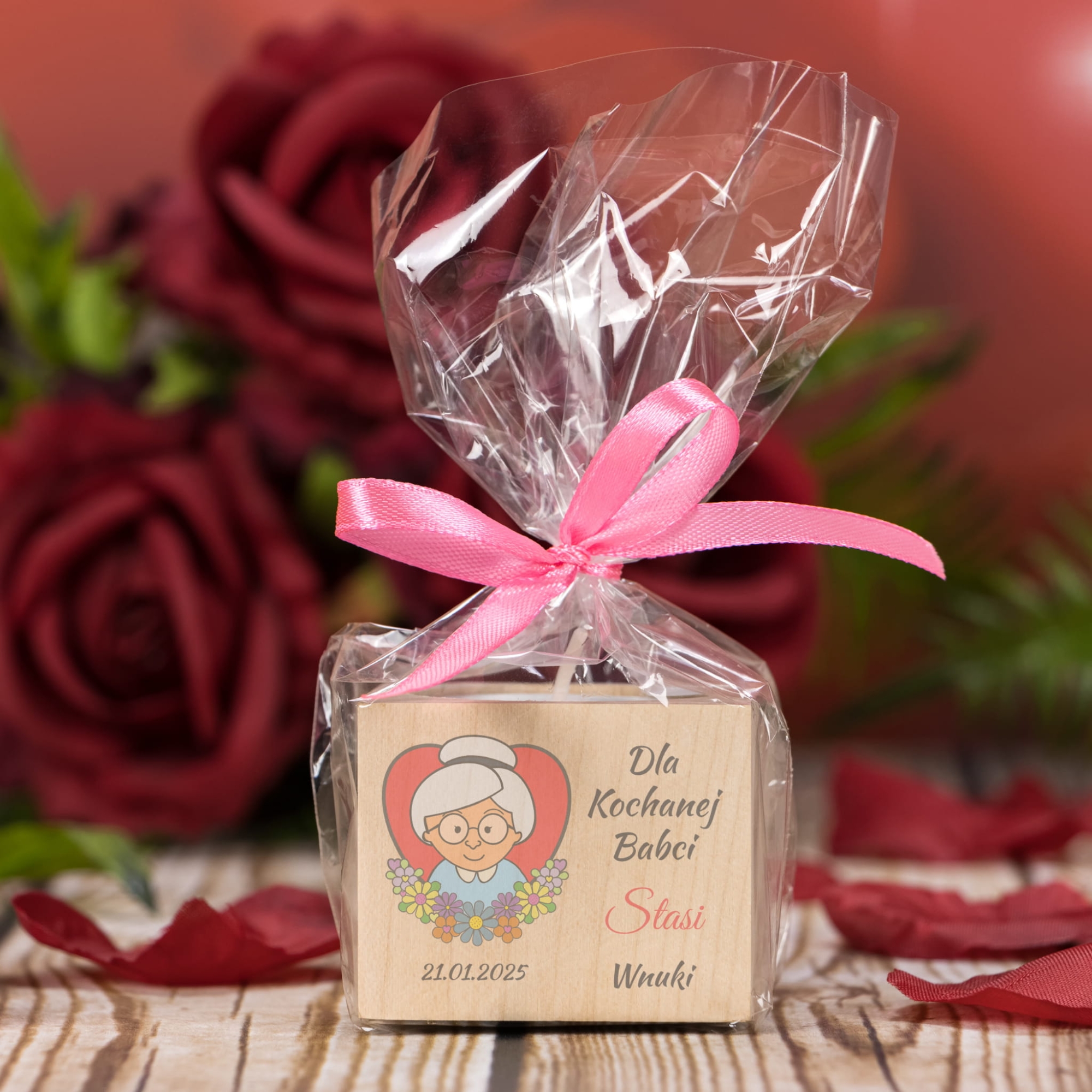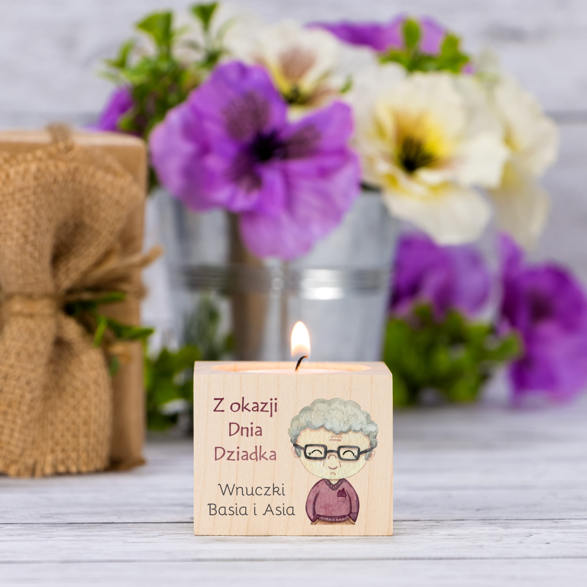 Drewniany świecznik na tealight upominek na DZIEŃ BABCI DZIADKA