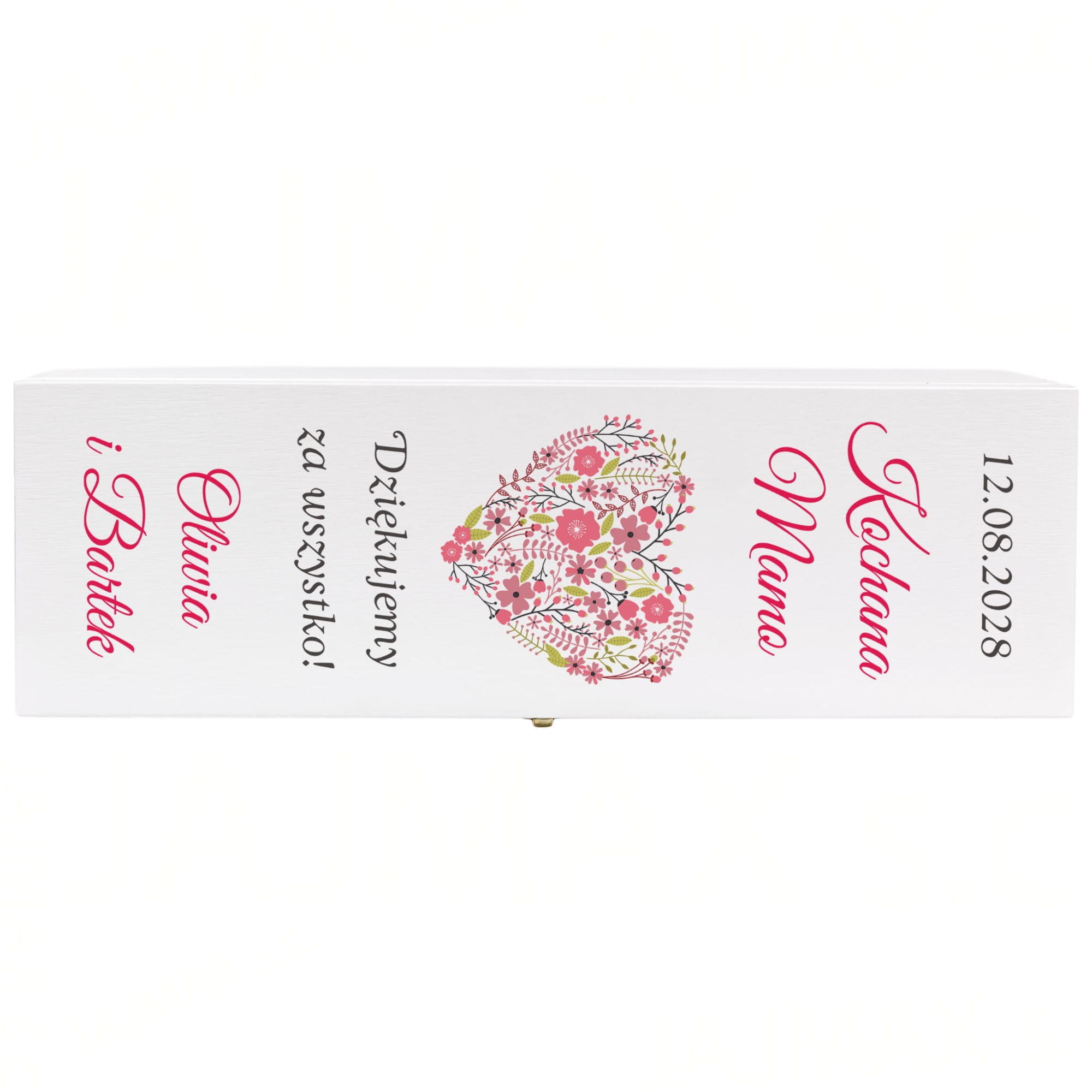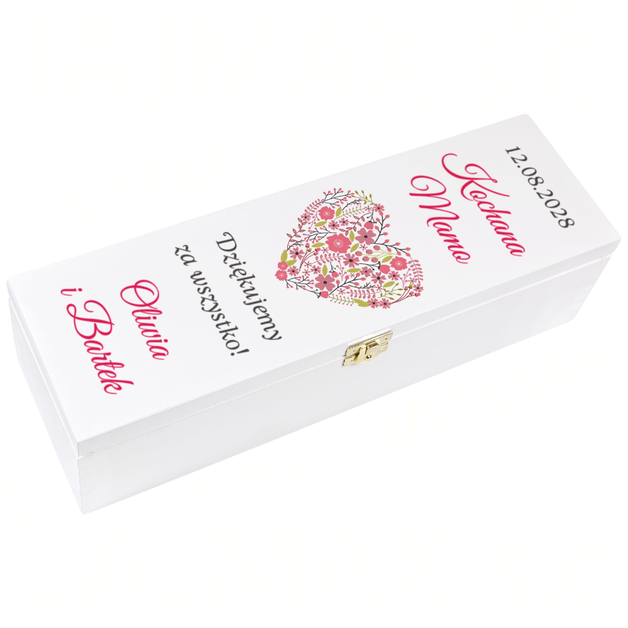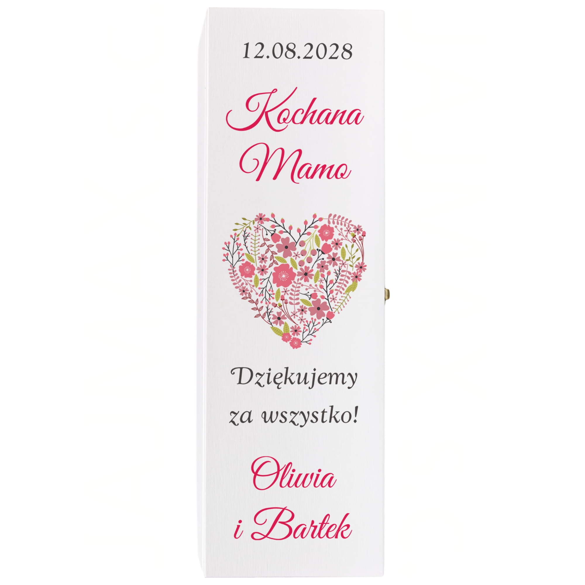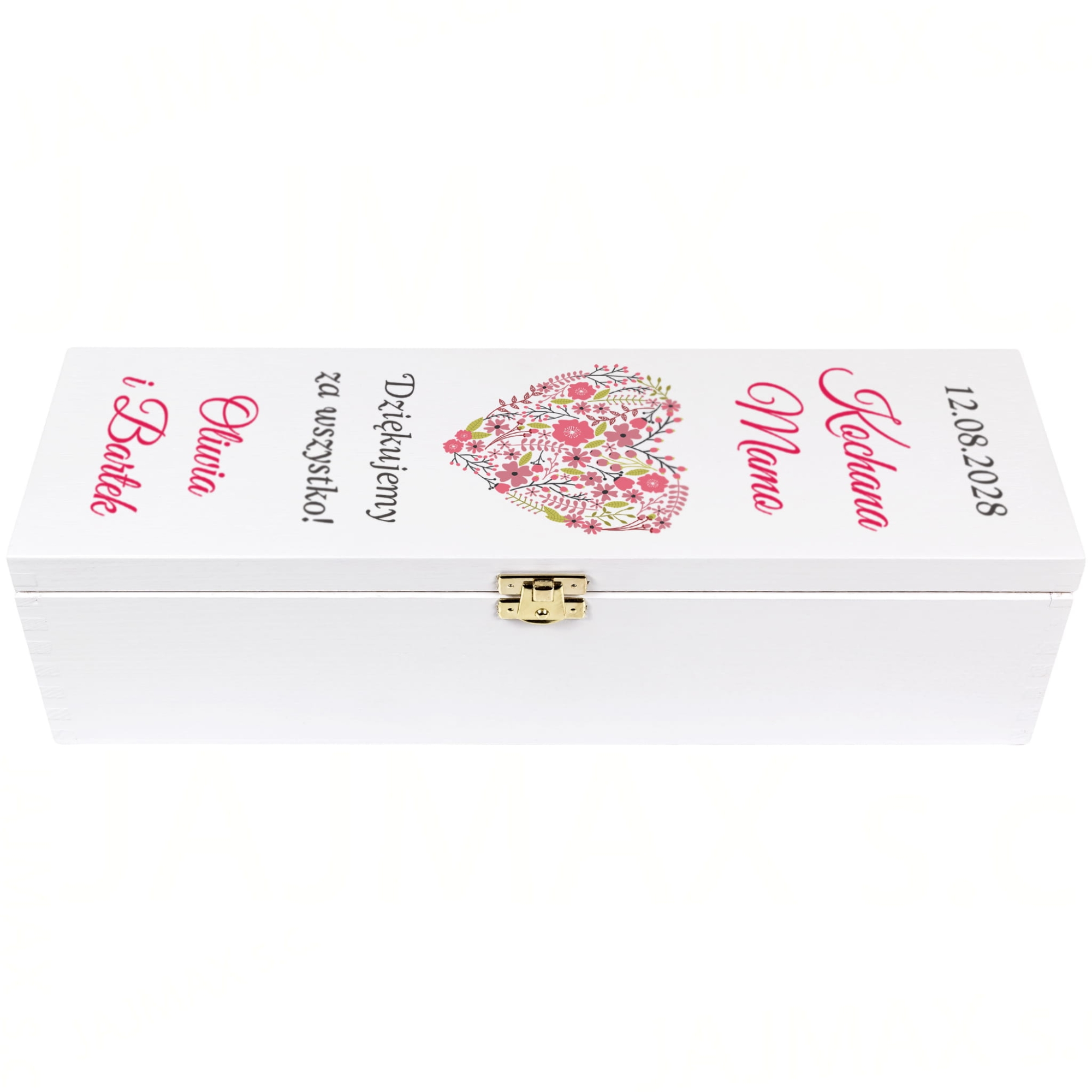 Drewniana skrzynka na wino z indywidualnym nadrukiem prezent dla mamy od Młodych