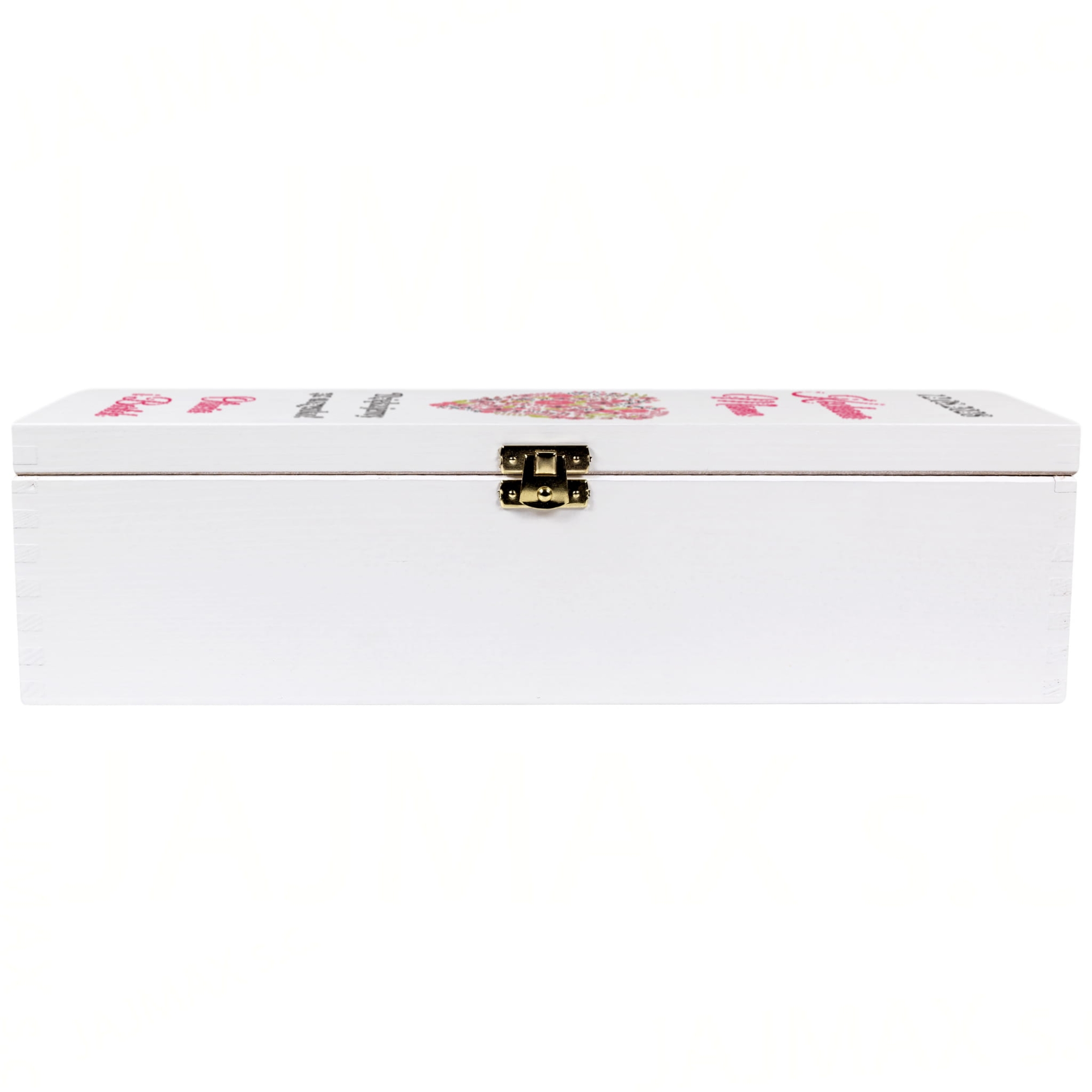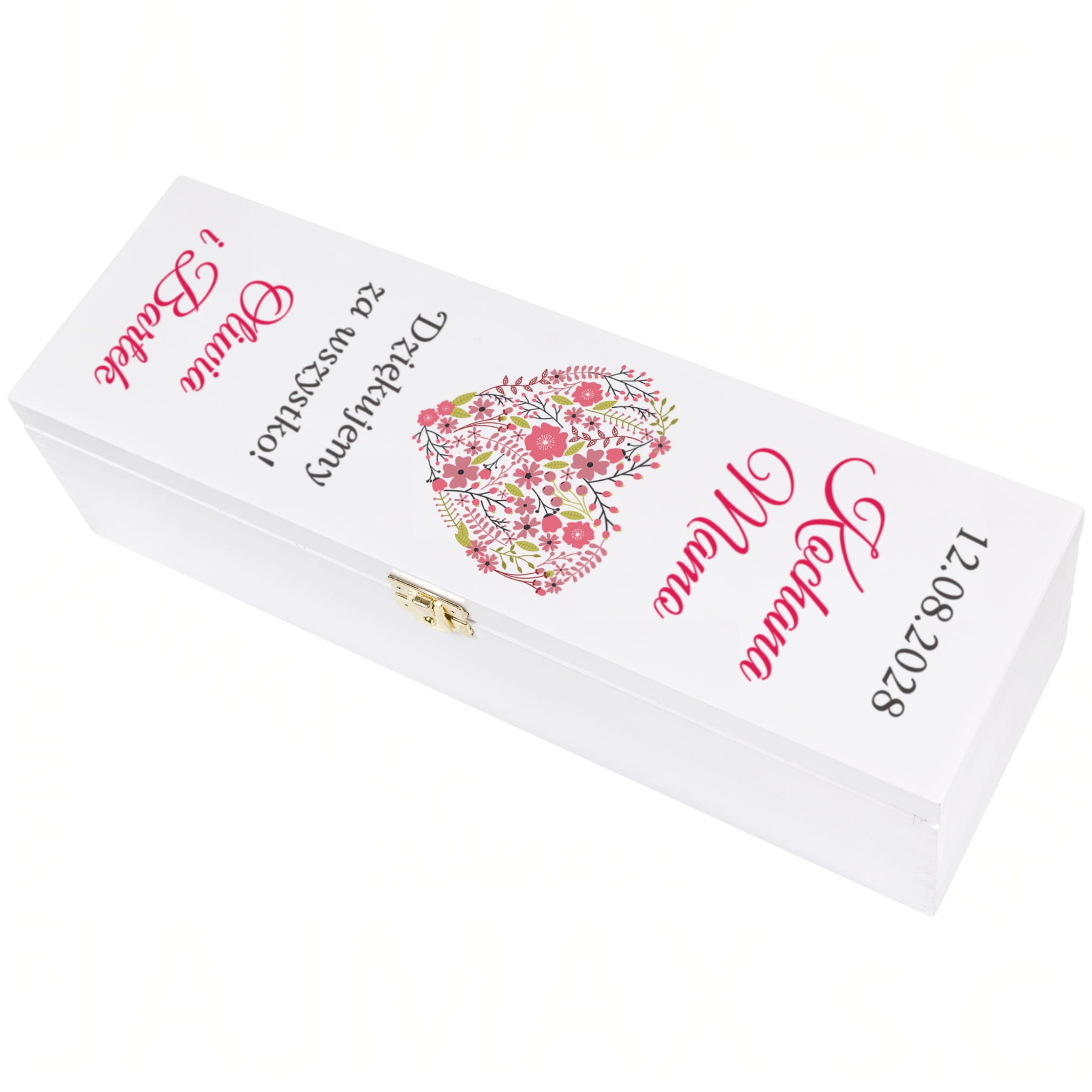 Drewniana, biała skrzynka na wino z indywidualnym nadrukiem