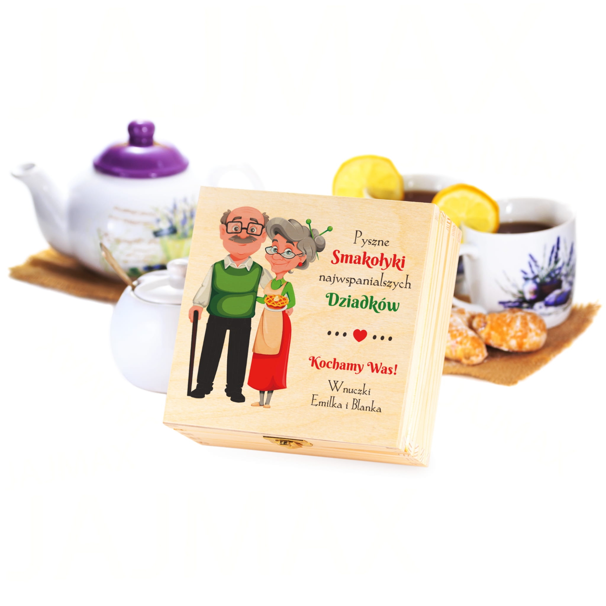 Herbaciarka z nadrukiem jako zestaw prezentowy z okazji Dnia Babci i Dziadka