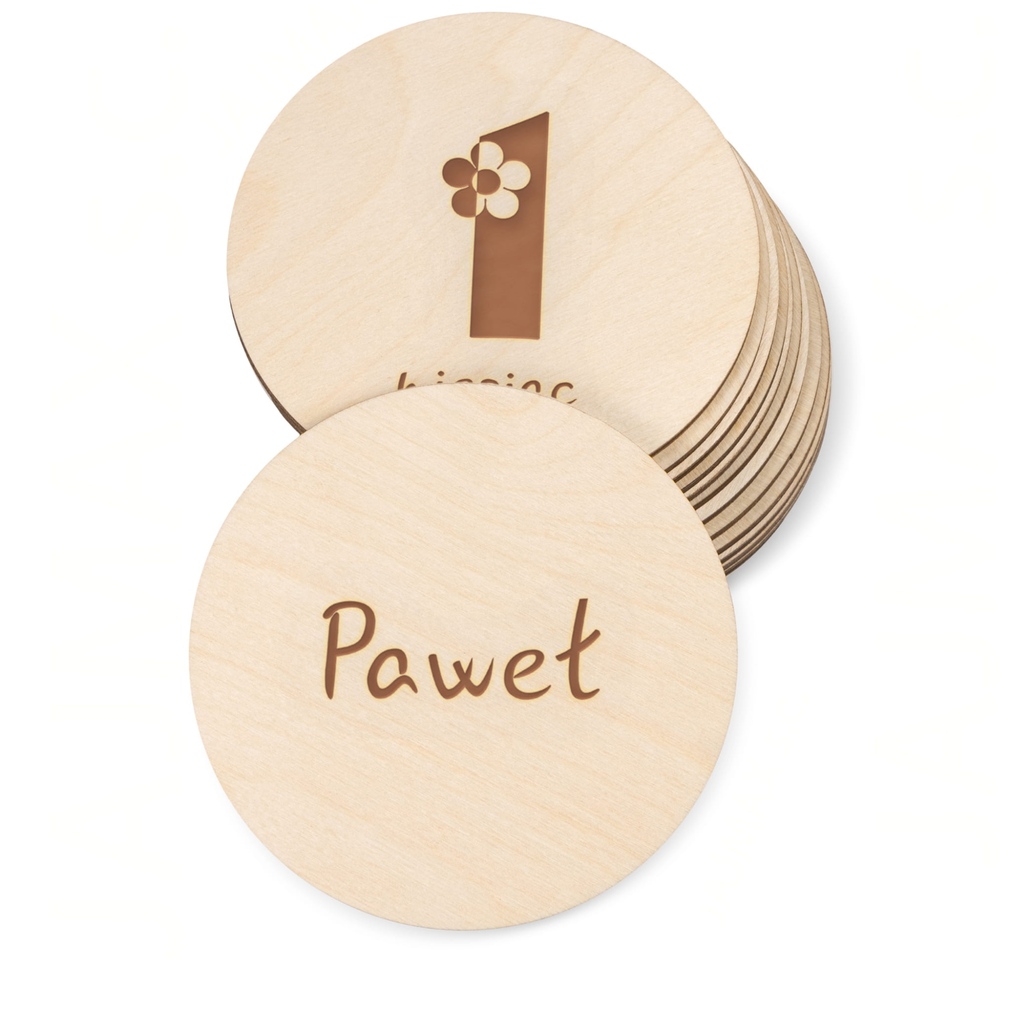 • W zestawie: 18 szt tabliczek kół, sznurek jutowy 100 cm.