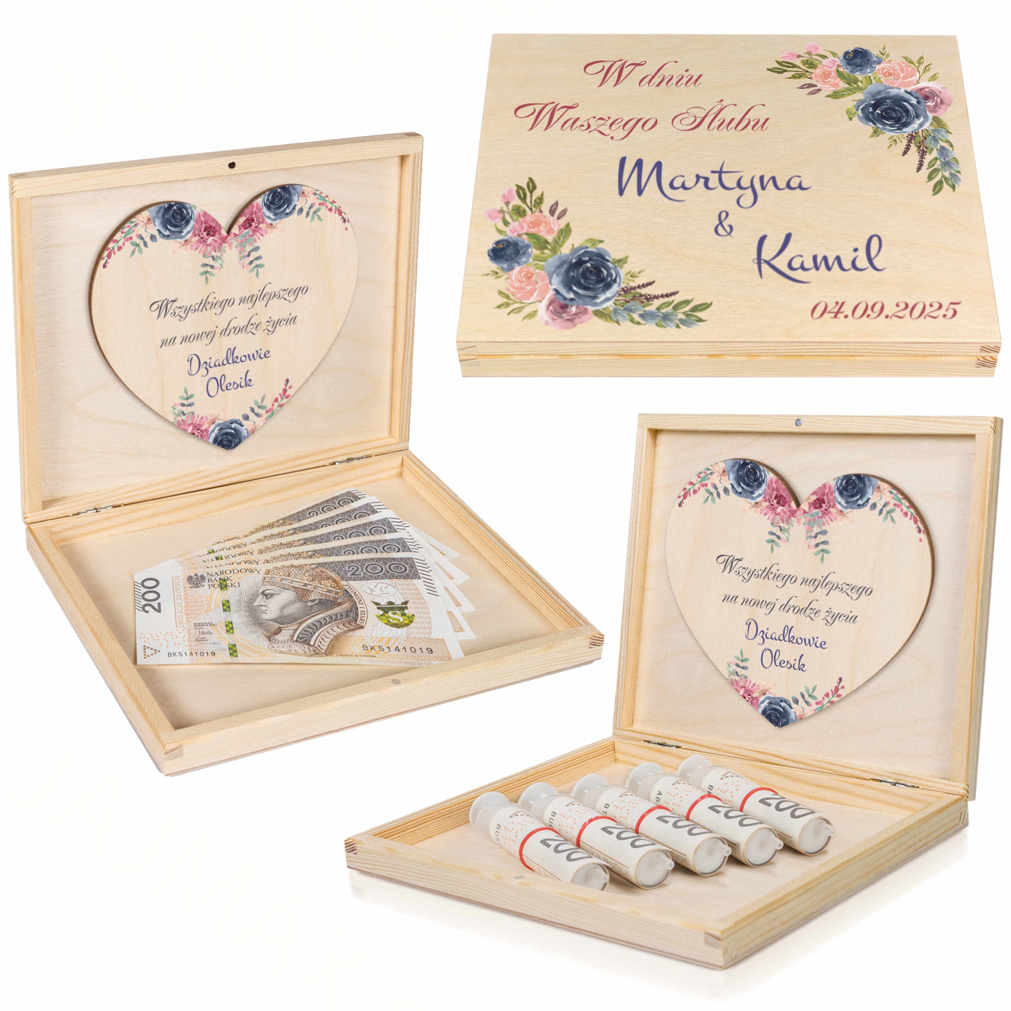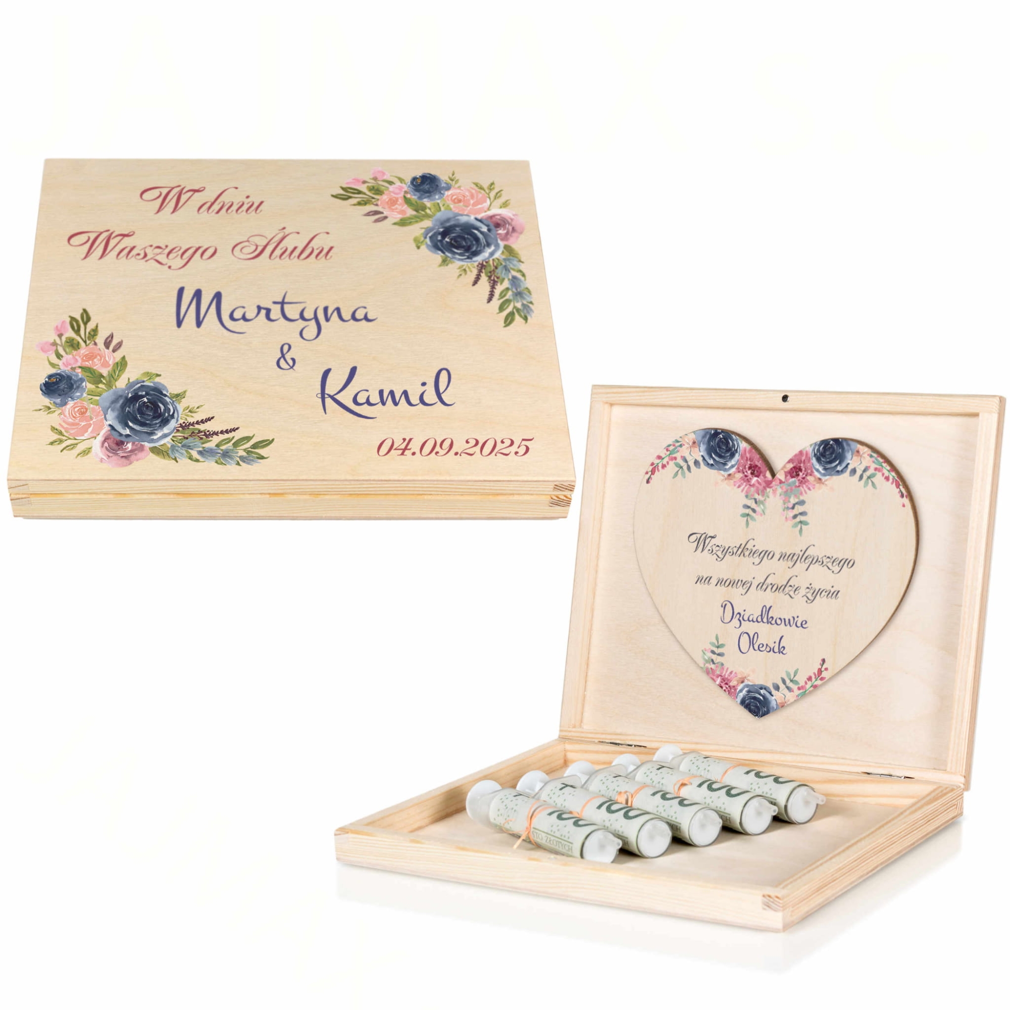 KOPERTA NA PIENIĄDZE NA ŚLUB drewniane pudełko z personalizacją