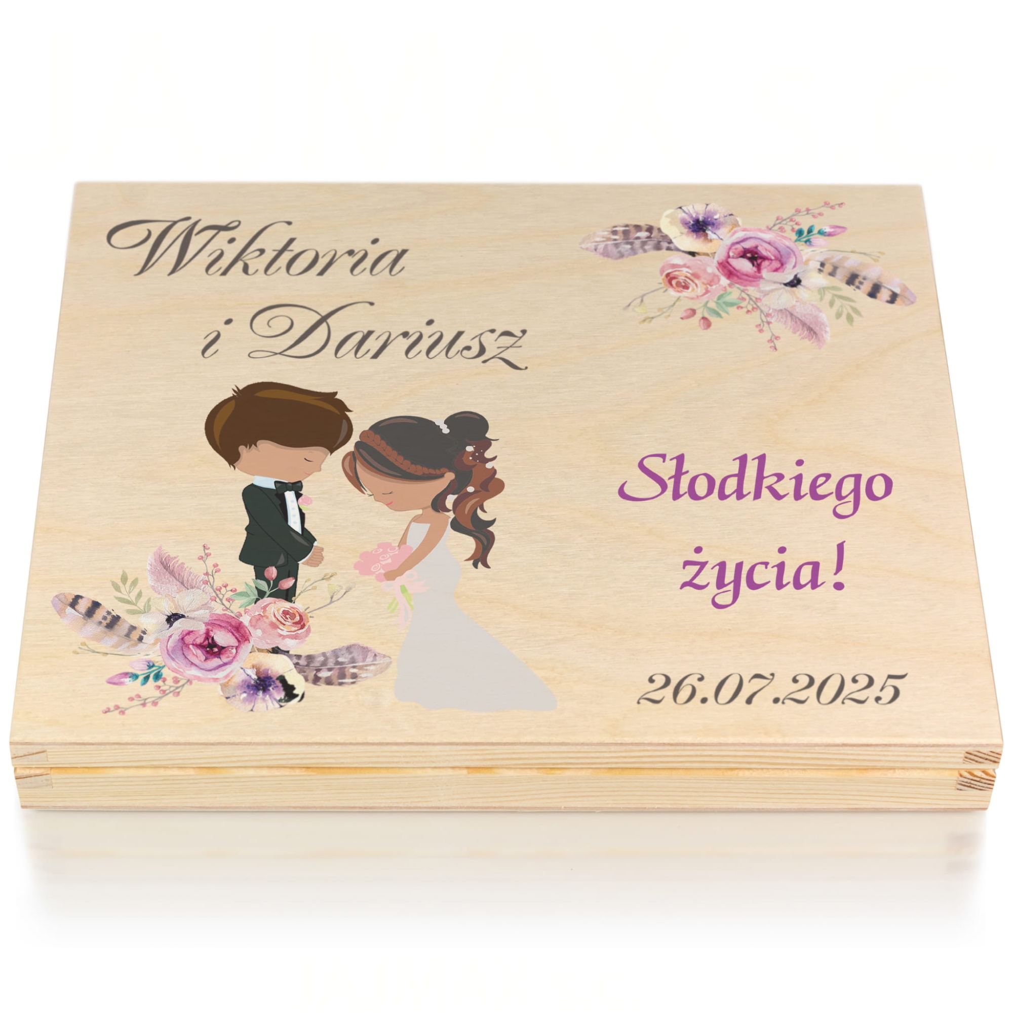 Drewniane pudełko na pieniądze z indywidualnym nadrukiem