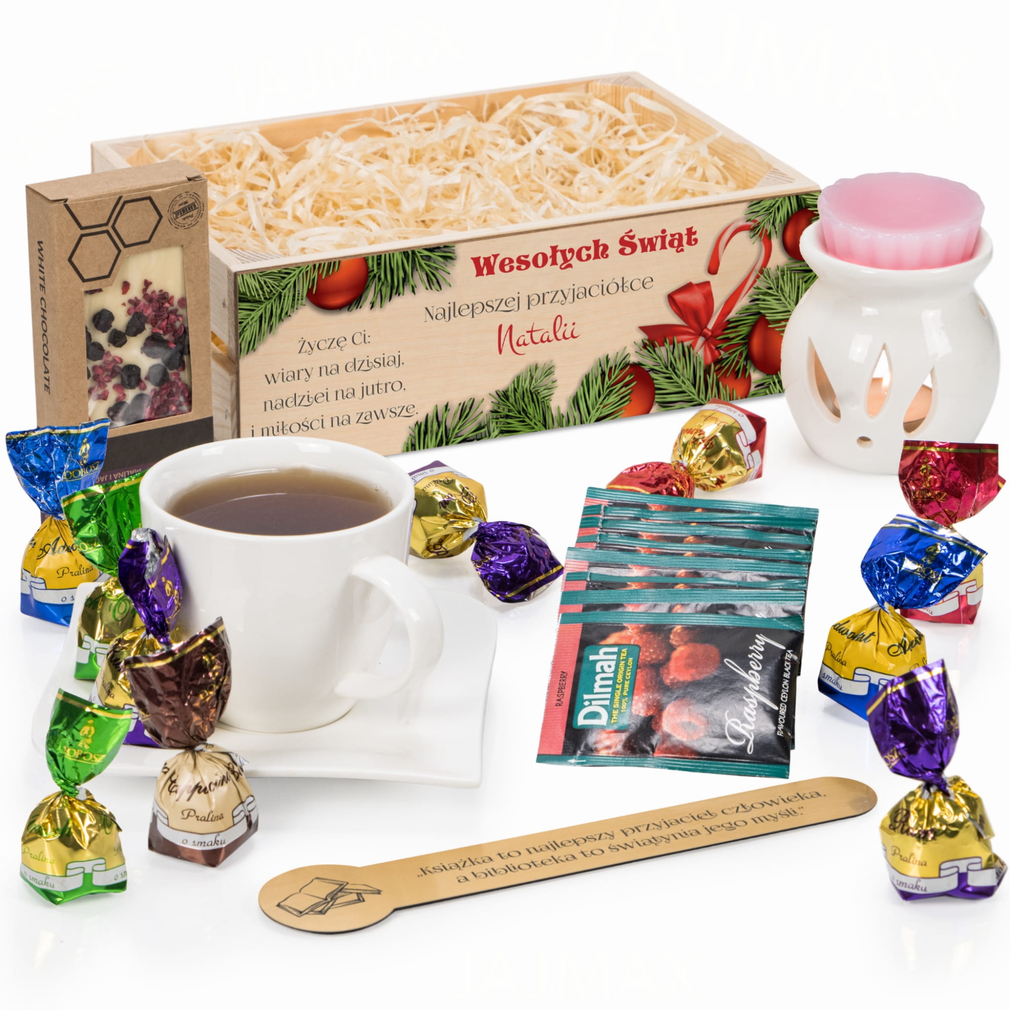 Box upominkowy zakładka do książki smakołyki zestaw do aromaterapii piękny prezent na święta