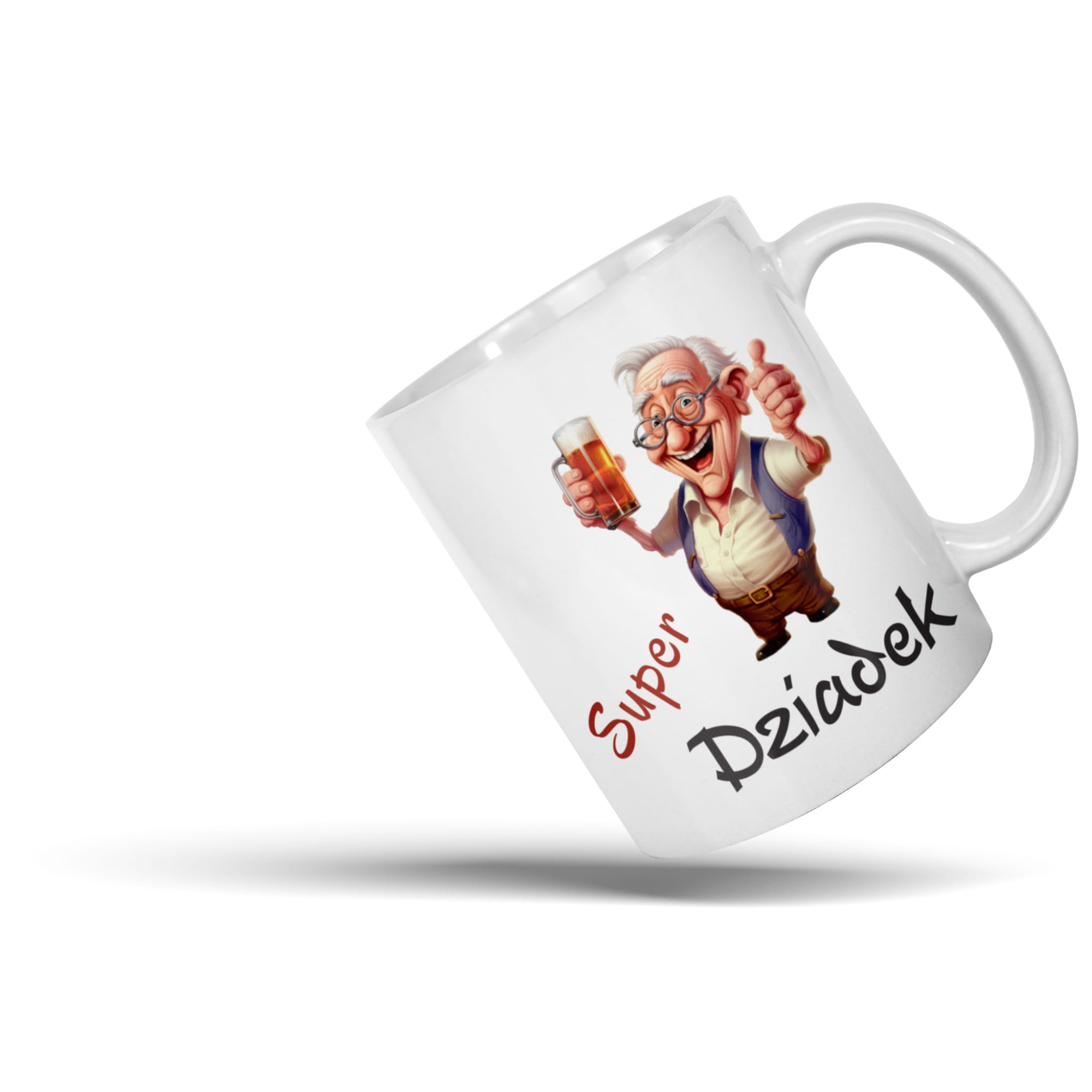 - Kubek na Dzień Dziadka – klasyczny kubek z wygodnym uchem i trwałym nadrukiem. Idealny na poranną kawę, herbatę czy wieczorną herbatkę przed telewizorem. Dzięki spójnemu wzorowi z poduszką tworzy kompletny, elegancki zestaw prezentowy.