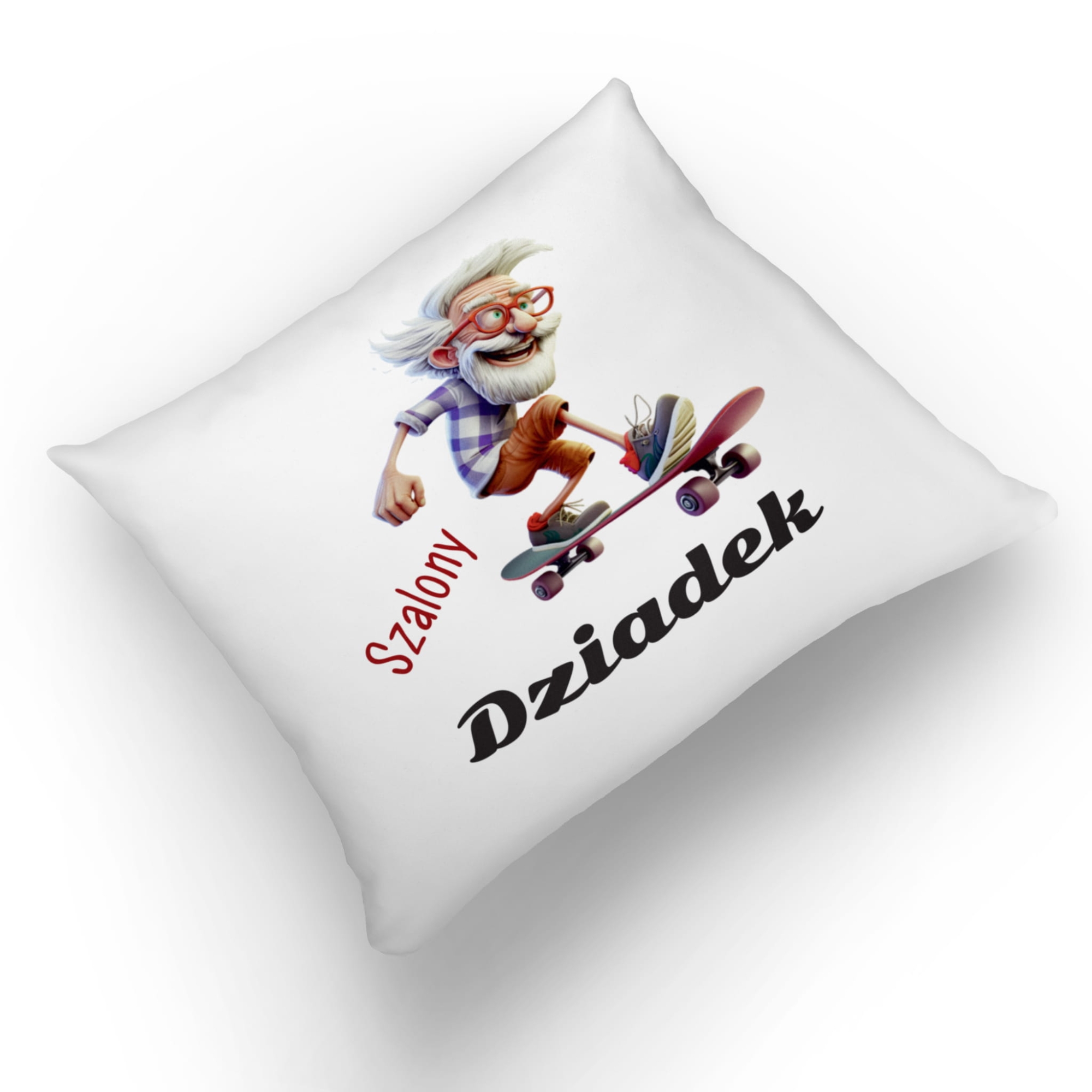 - Poduszka dekoracyjna z nadrukiem „Szalony Dziadek” – miękka, przyjemna w dotyku i idealna do fotela, kanapy czy łóżka. Piękny, kolorowy nadruk sprawia, że poduszka staje się oryginalną ozdobą salonu lub sypialni.