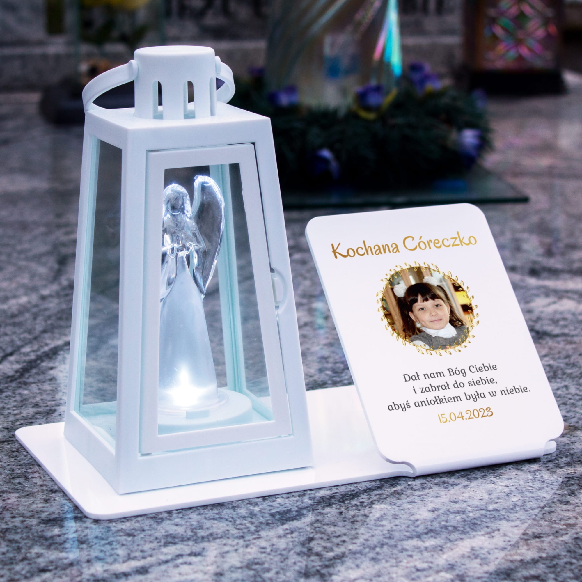 LAMPION LATARENKA i podstawka na grób dziecka ze zdjęciem