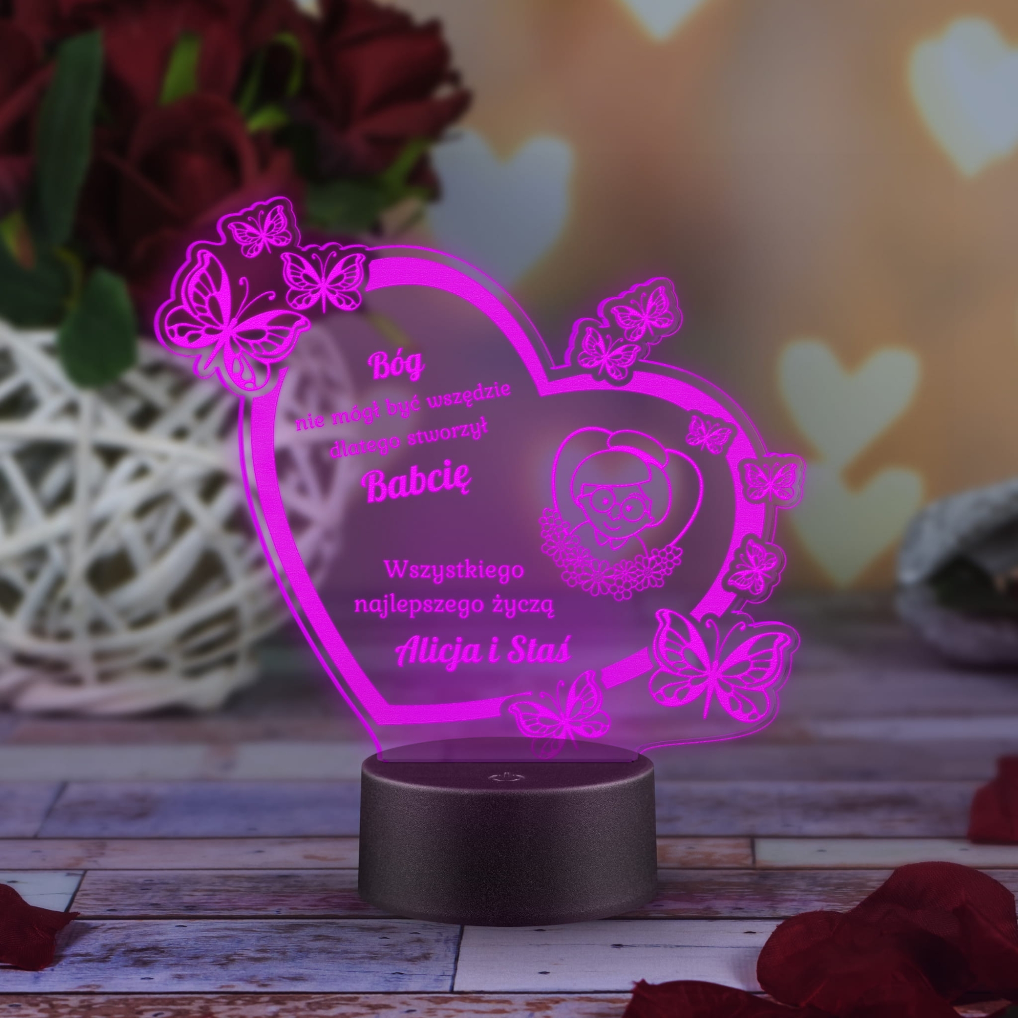 SERCE Z GRAWEREM lampka prezent dla Dziadka z Twoim podpisem Lampka LED serce z motylami dla Babci ORYGINALNA STATUETKA GRAWER Statuetka LED serce z motylami PREZENT DLA BABCI I DZIADKA GRAWER PREZENT DLA DZIADKA Z PODPISEM ledowa statuetka wielokolorowe serce