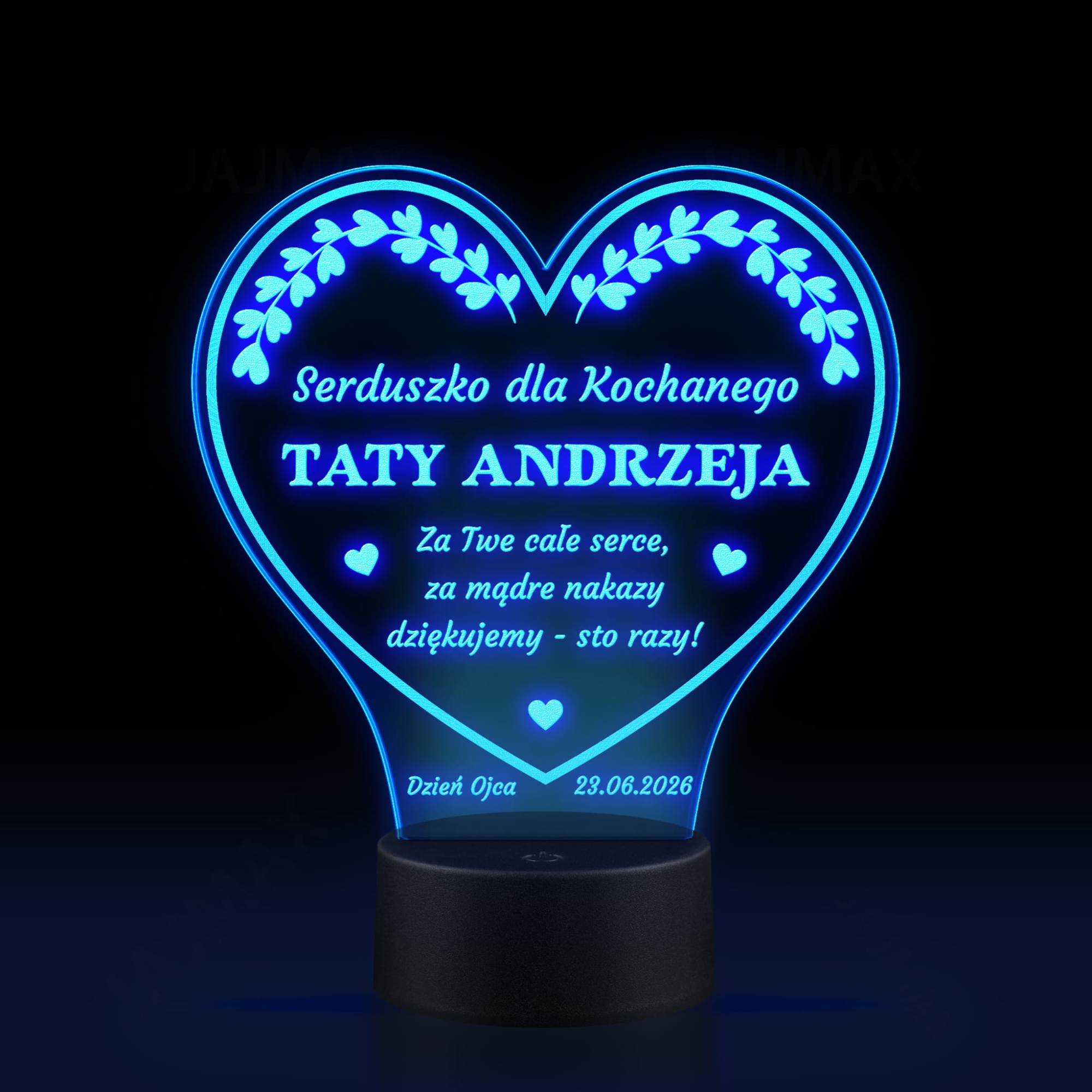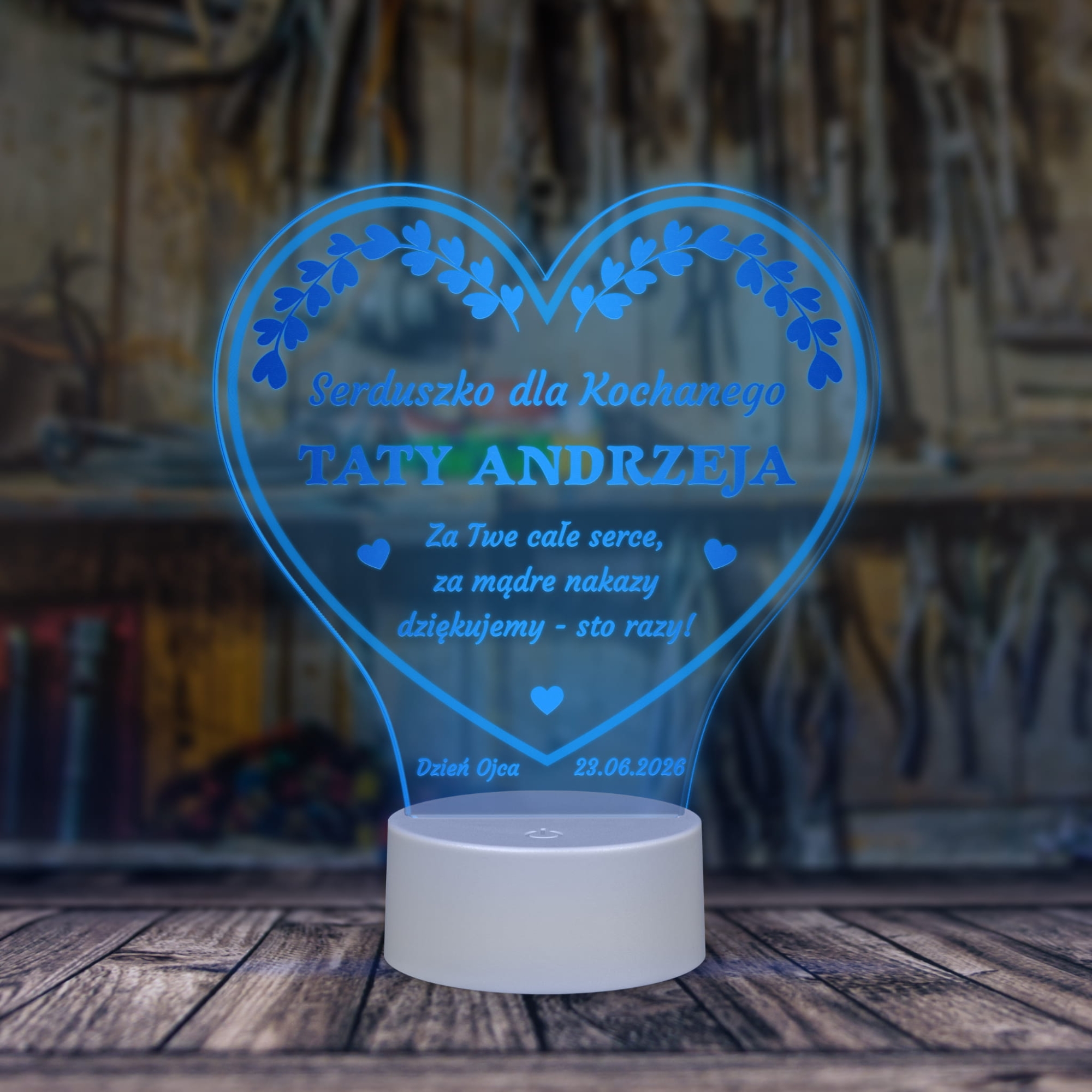 LAMPKA NOCNA LED SERCE oryginalny prezent dla ojca grawer