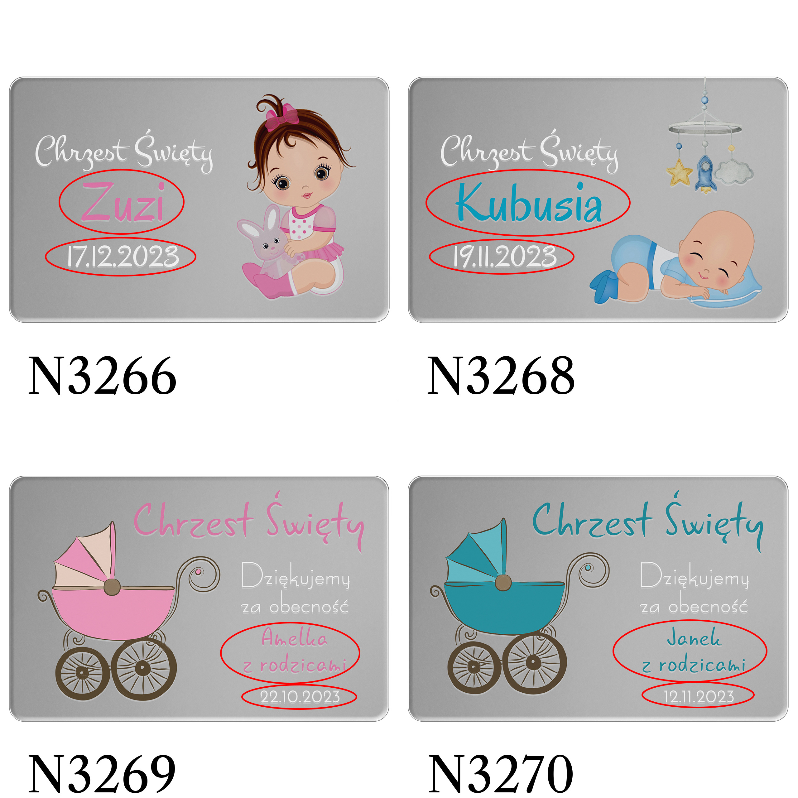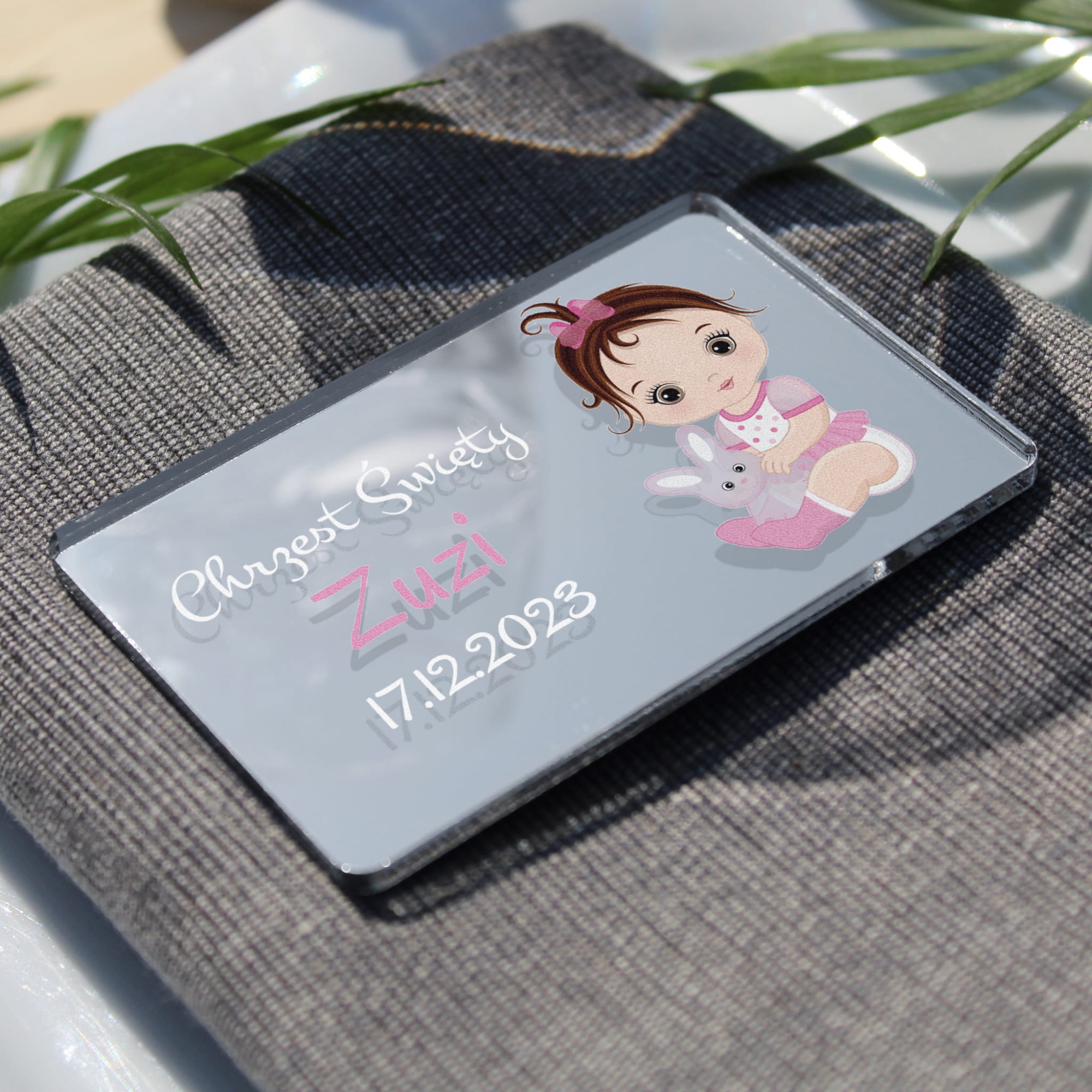 Podziękowania dla gości z okazji Chrztu to nie tylko słowa – to także gest, który docenią Twoi bliscy. Nasz magnes wykonany ze srebrnego lustra to idealny prezent, który pozwoli Ci wyrazić swoją wdzięczność w szczególny sposób. Goście będą zachwyceni, takie upominki dla bliskich na Chrzest to ponadczasowa pamiątka z tego szczególnego dnia. Najwyższa jakość wykonania i elegancja formy gwarantuje zadowolenie z zakupu naszych podziękowań dla gości - srebrnych magnesów z personalizacją.