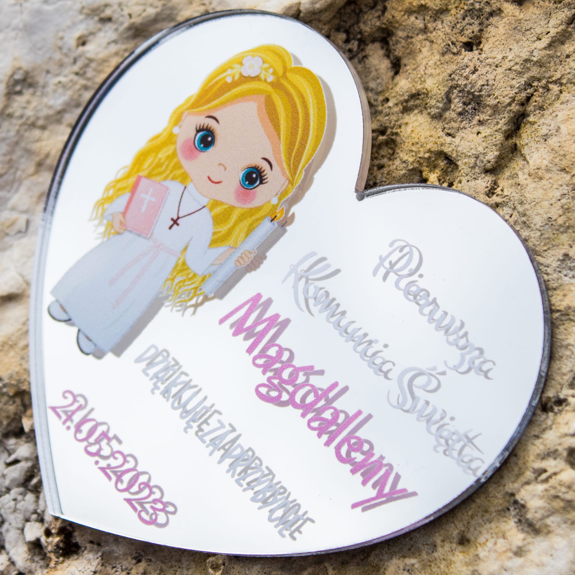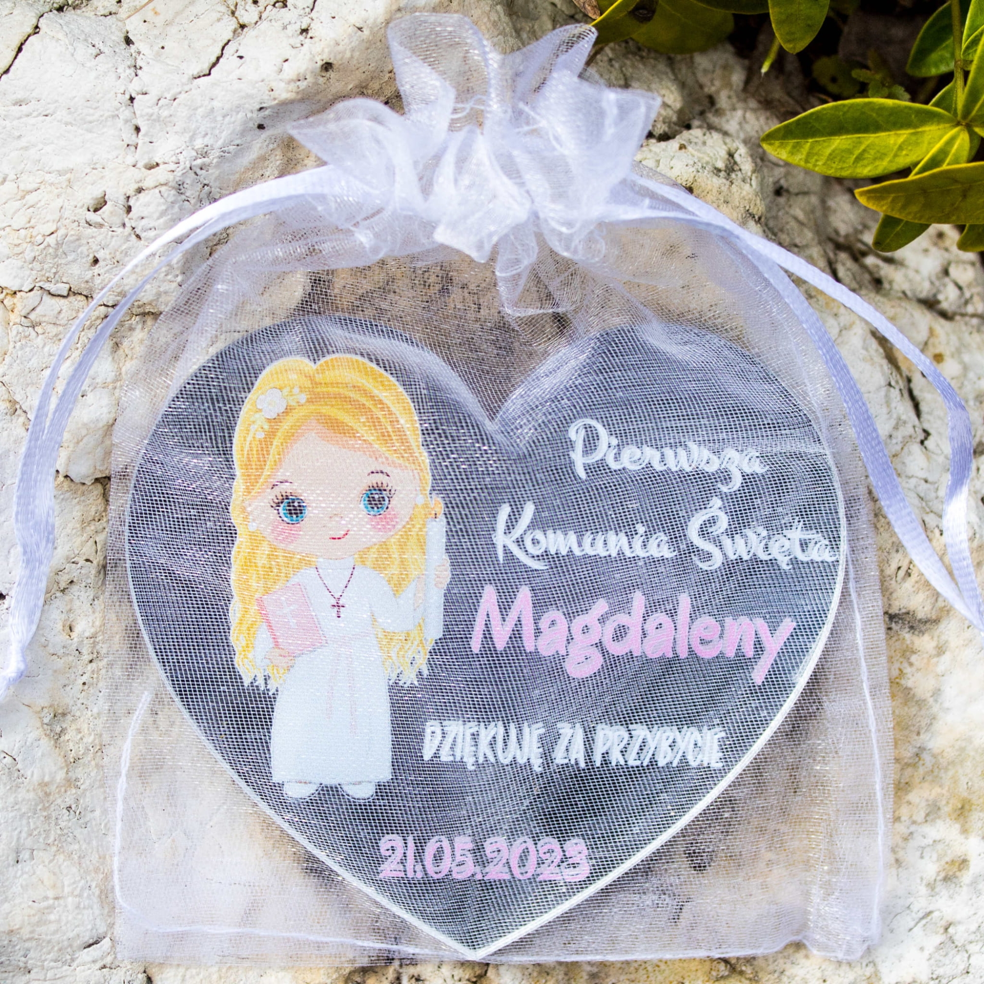 MAGNES LUSTRZANY SERCE podziękowanie dla gości Komunia nadruk