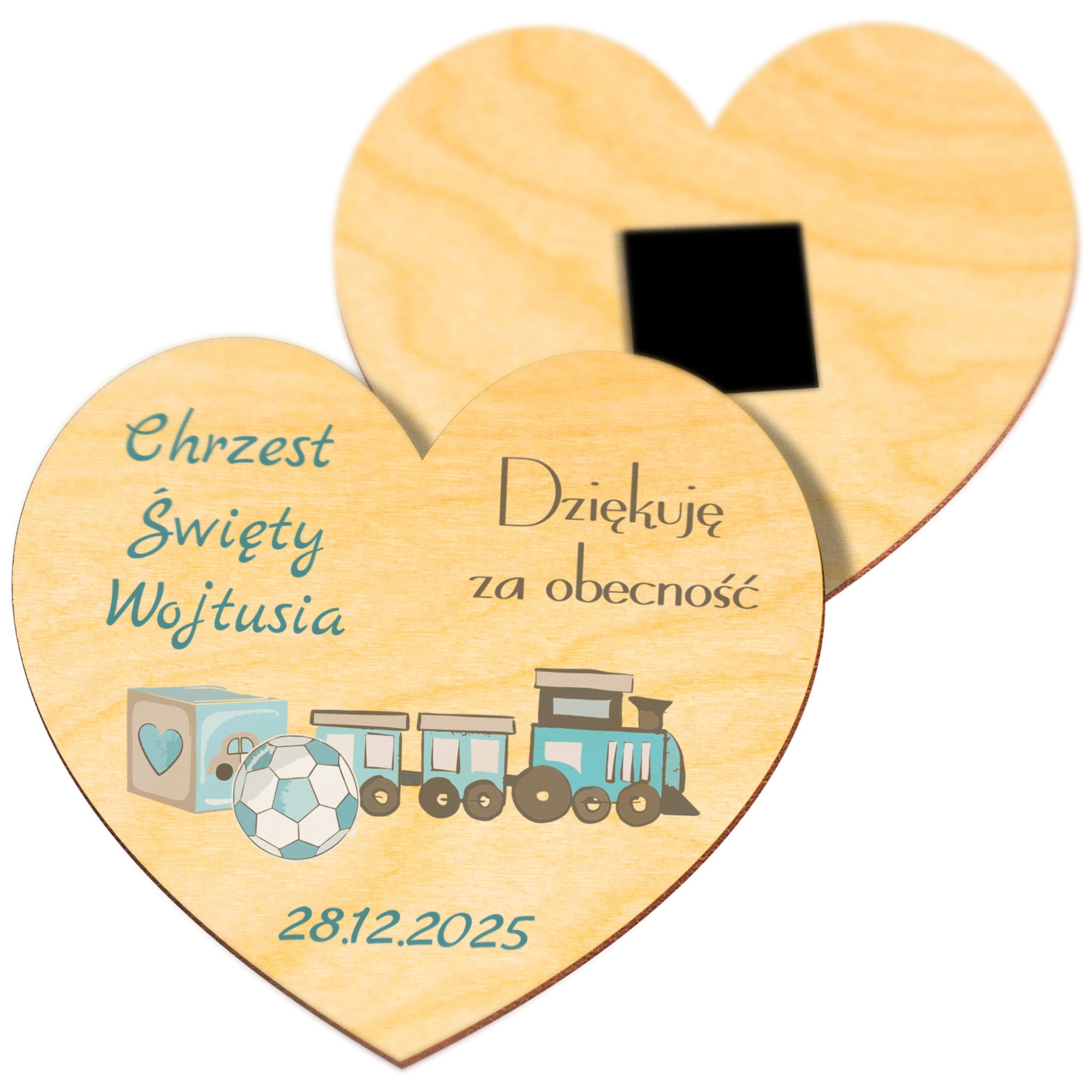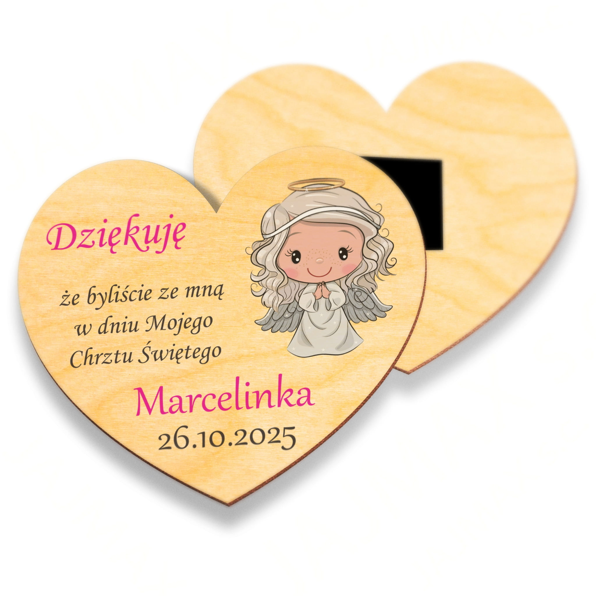 Magnes serce z nadrukiem, podziękowania dla gości Chrzest Święty