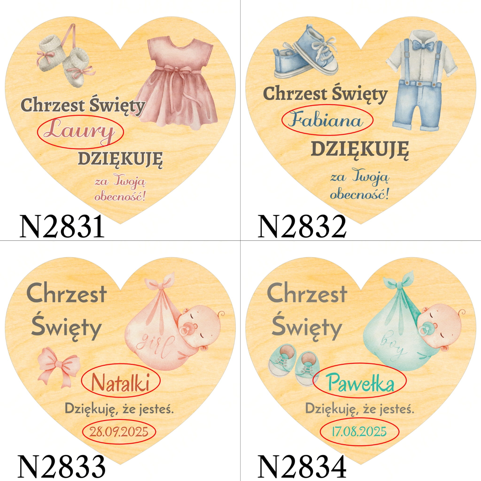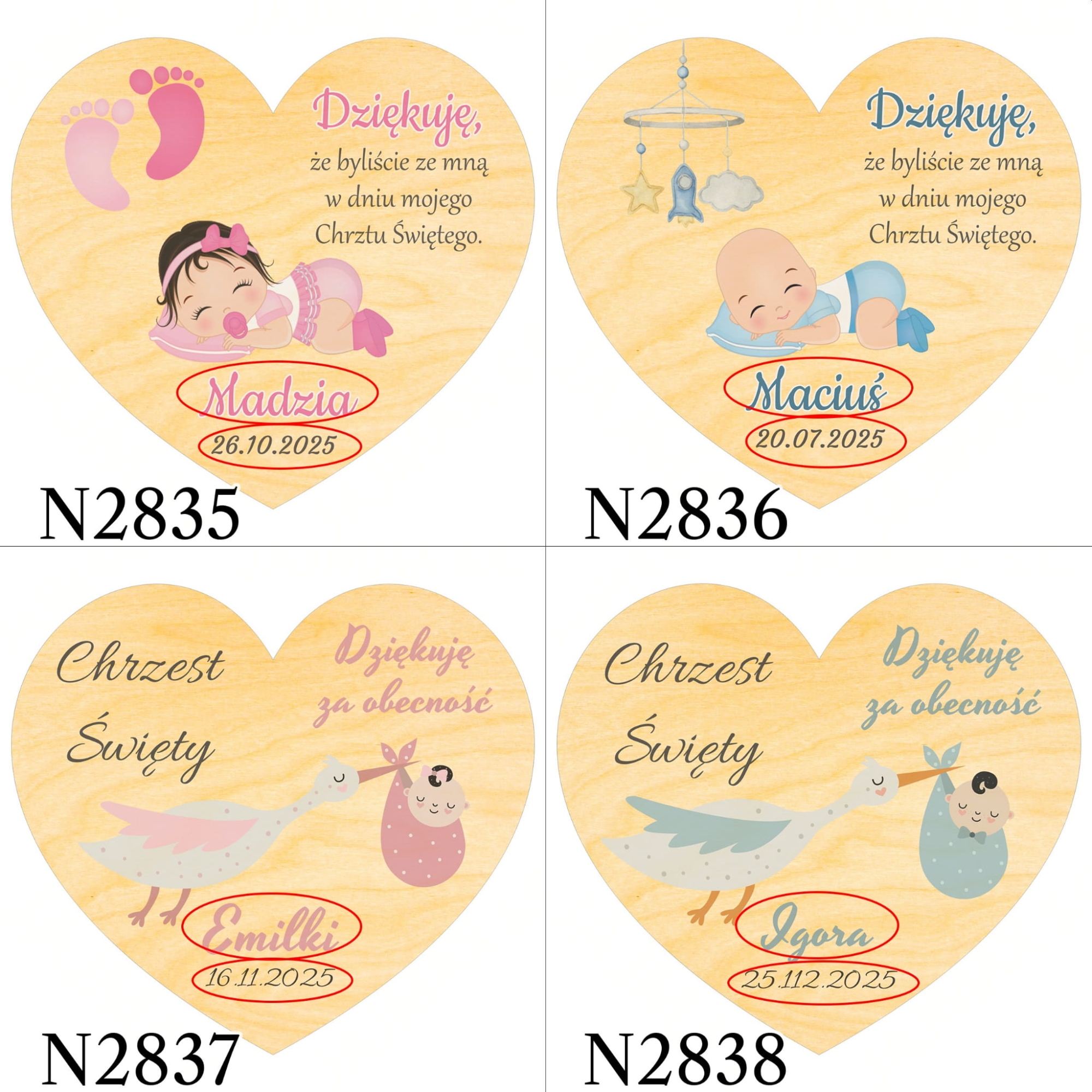 MAGNES SERCE podziękowania dla gości chrzest święty nadruk