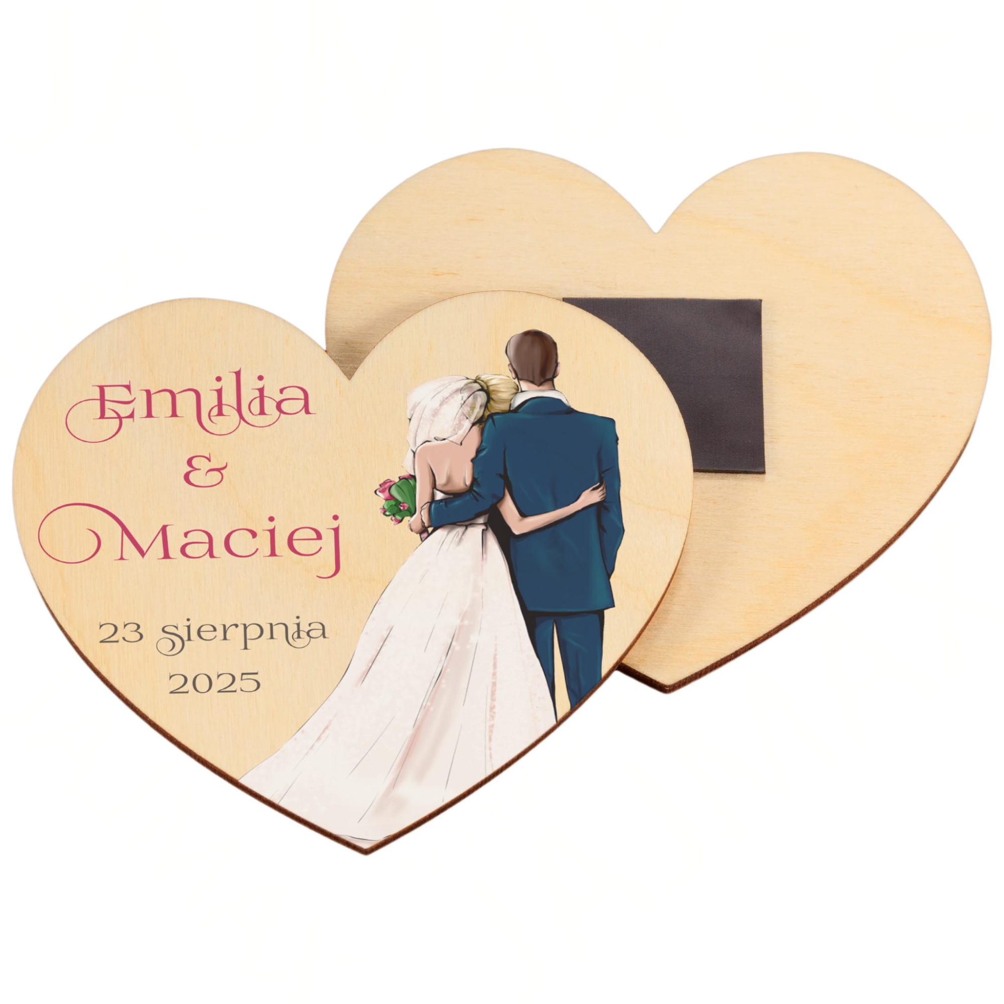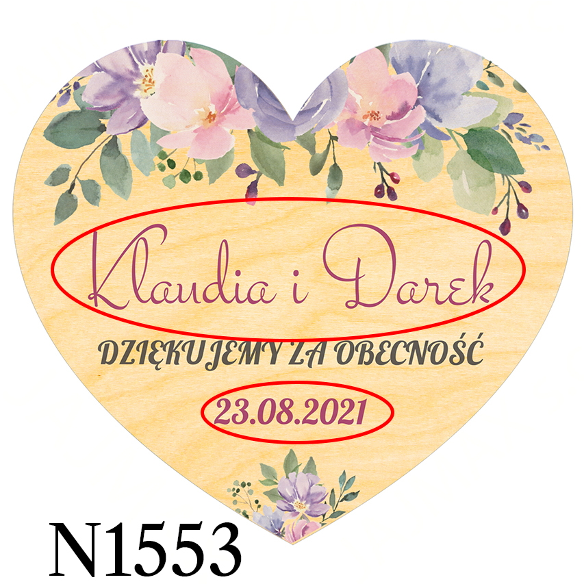 Magnes serce z nadrukiem, podziękowania dla gości na ślub