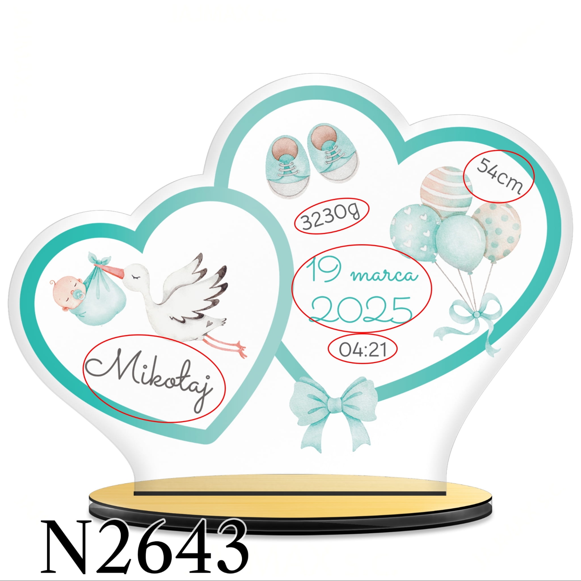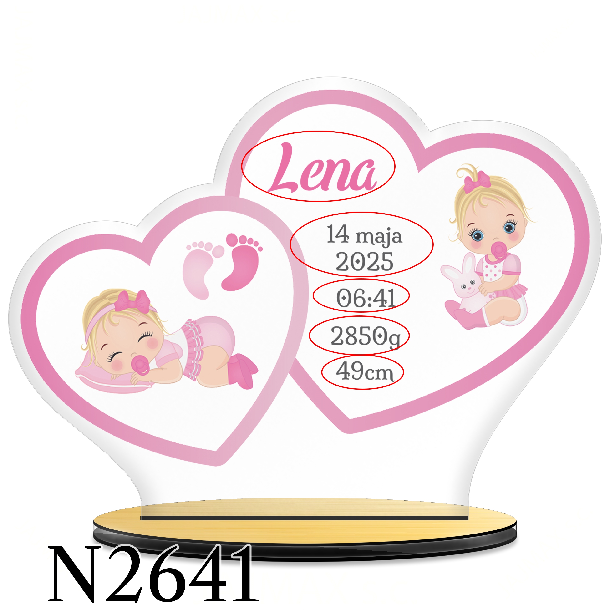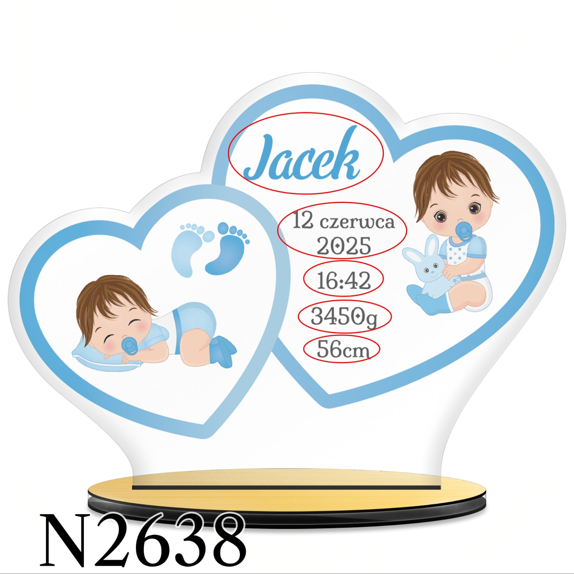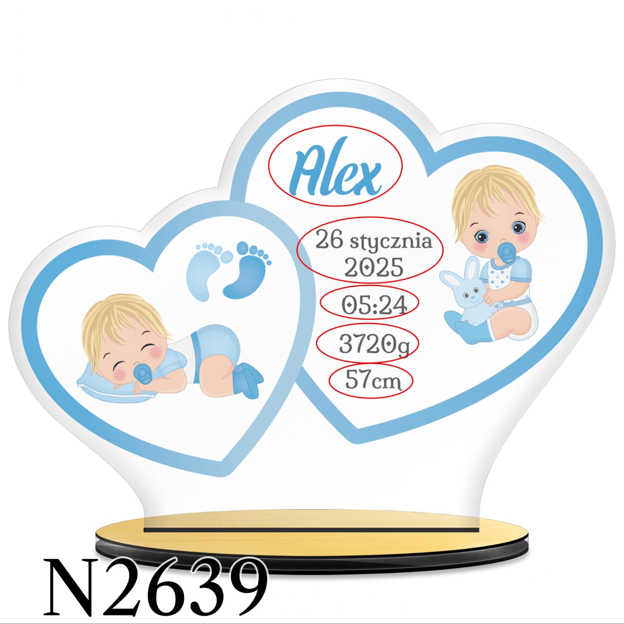 Statuetka akrylowa to piękna ozdoba do pokoju dziecięcego. Nasza statuetka jest niezwykła bo kryje w sobie wszystkie najważniejsze informacje z dnia narodzin dziecka. Na statuetce w zależności od motywu umieścimy np. imię dziecka, datę i godzinę narodzin, wagę i wzrost, imiona rodziców. Taka metryczka będzie szczególna zarówno dla dziecka jak i dla opiekunów. Statuetka w kształcie dwóch serc wykonana jest ze szkła akrylowego, natomiast nadruk wykonany jest za pomocą techniki cyfrowej najwyższej jakości. Metryczka dla dziecka to świetny pomysł na prezent dla dziewczynki i pomysł na prezent dla chłopca. Do wyboru kilka pięknych motywów graficznych, które z pewnością przypadną do gustu każdemu dziecku. Świetnie sprawdzi się jako prezent na urodziny dla dziecka lub prezent pod choinkę dla dziecka.