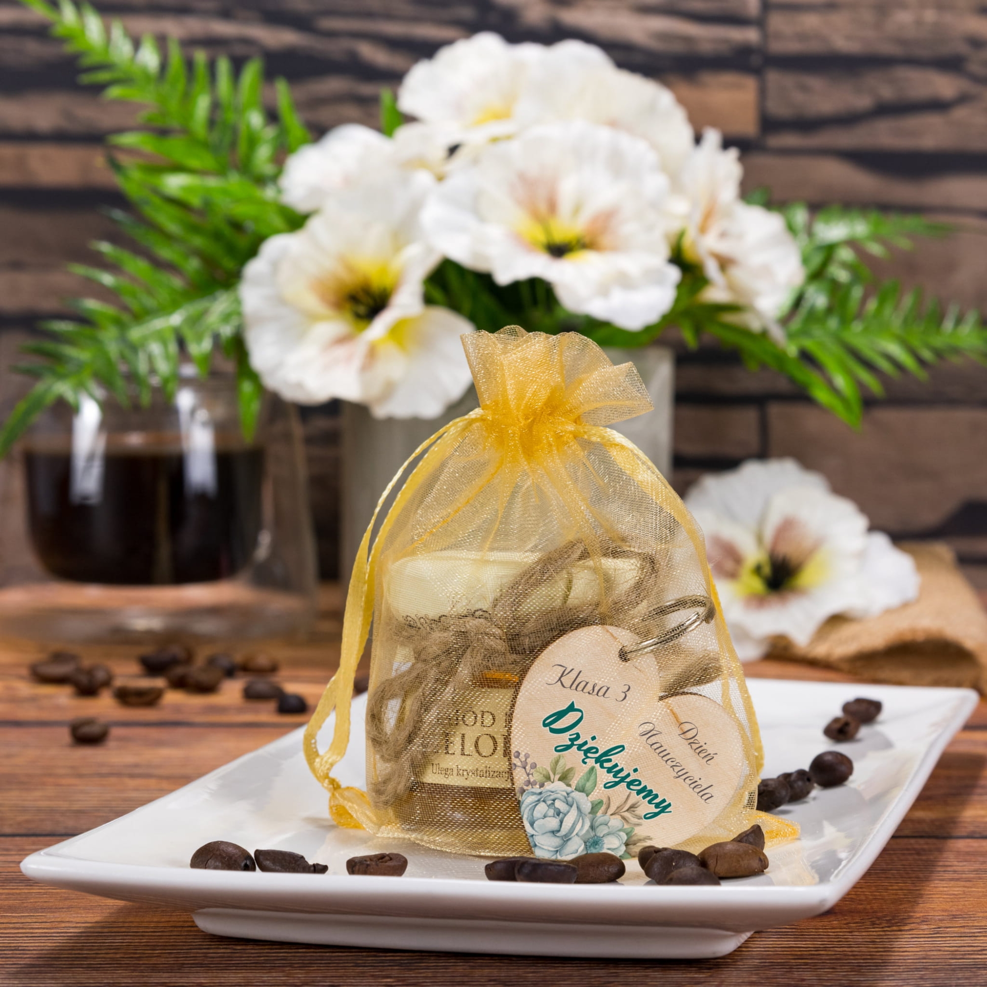 Słodkie podziękowania dla wychowawcy, nauczyciela miód i brelok z dedykacją