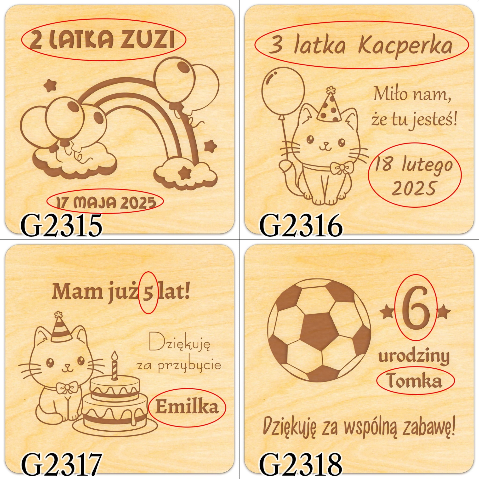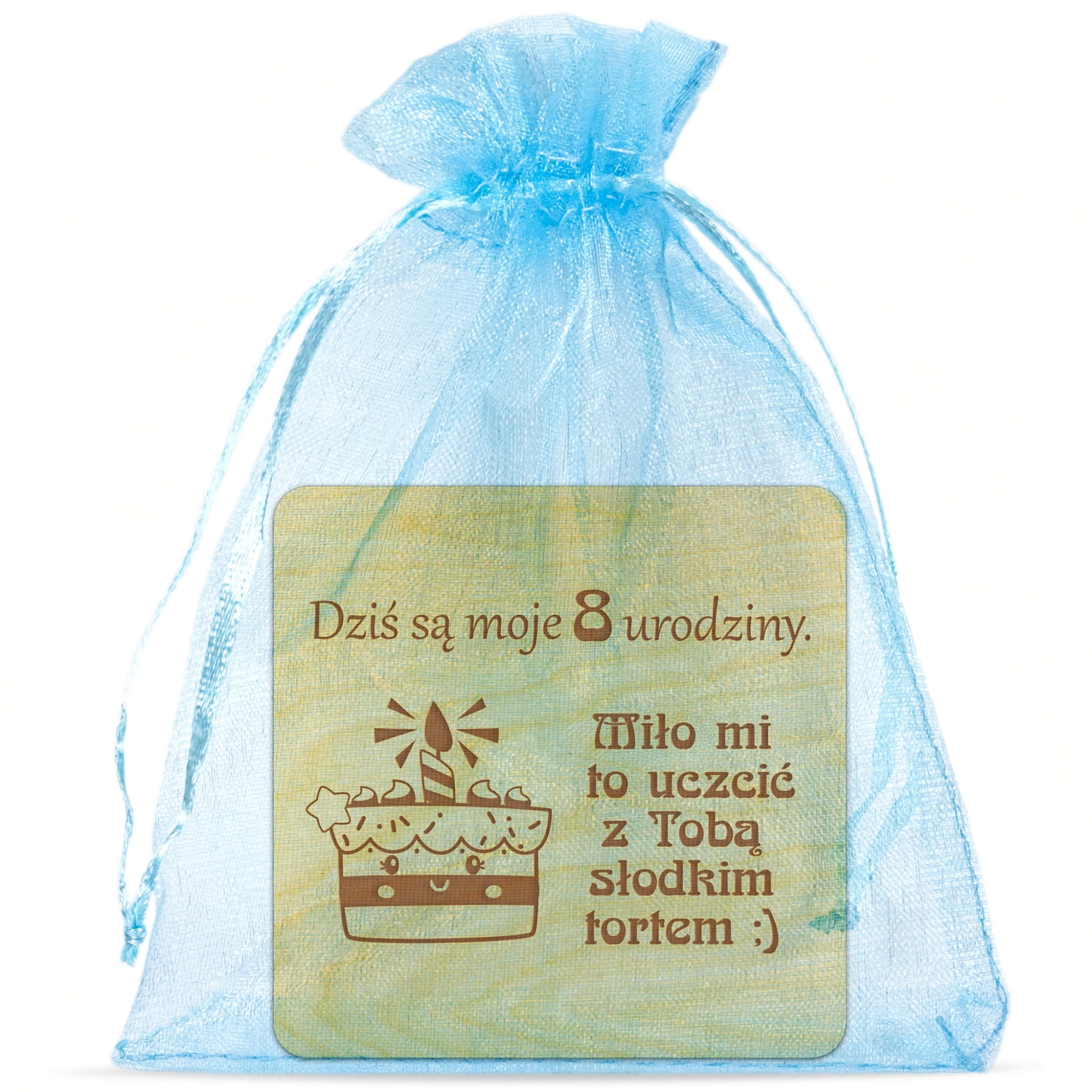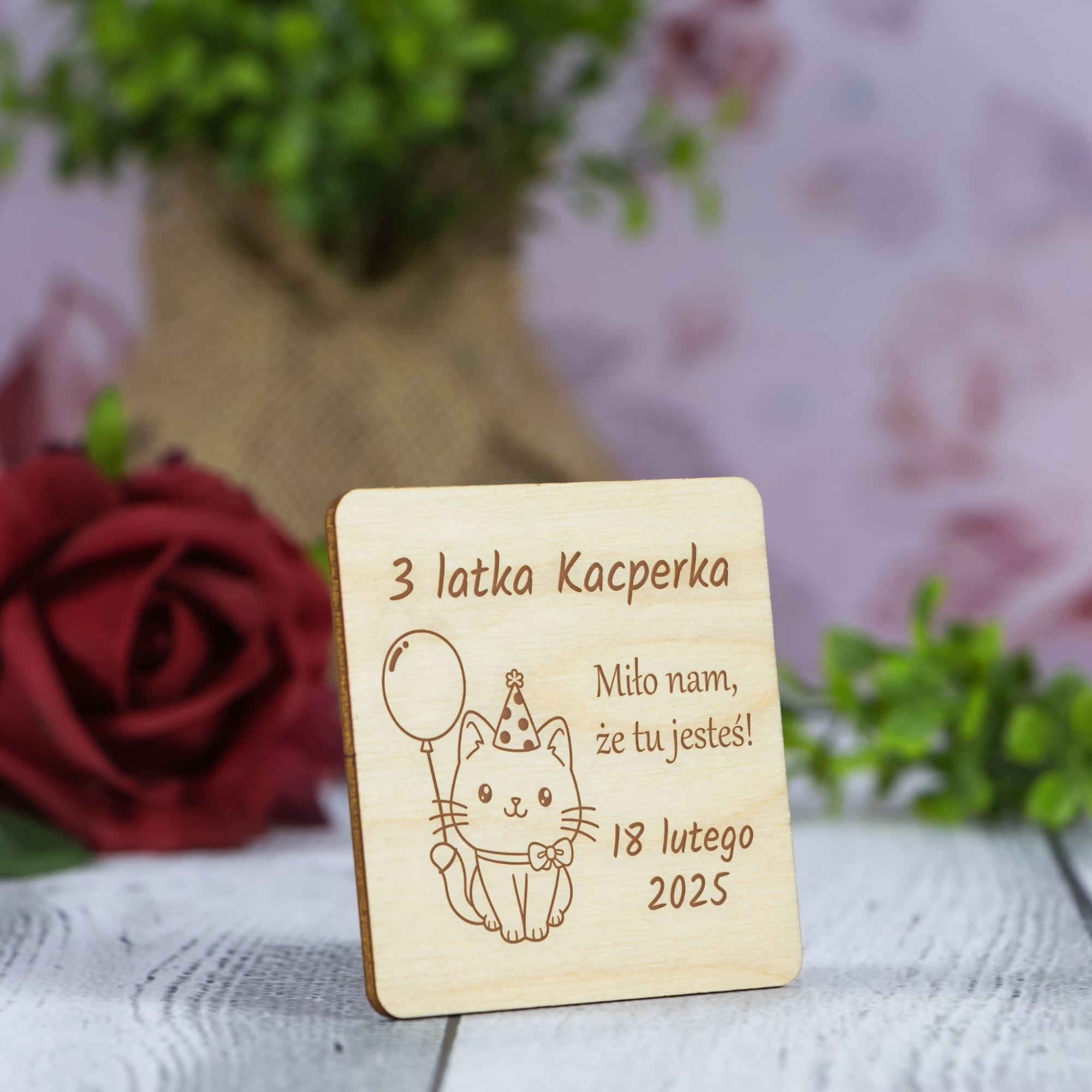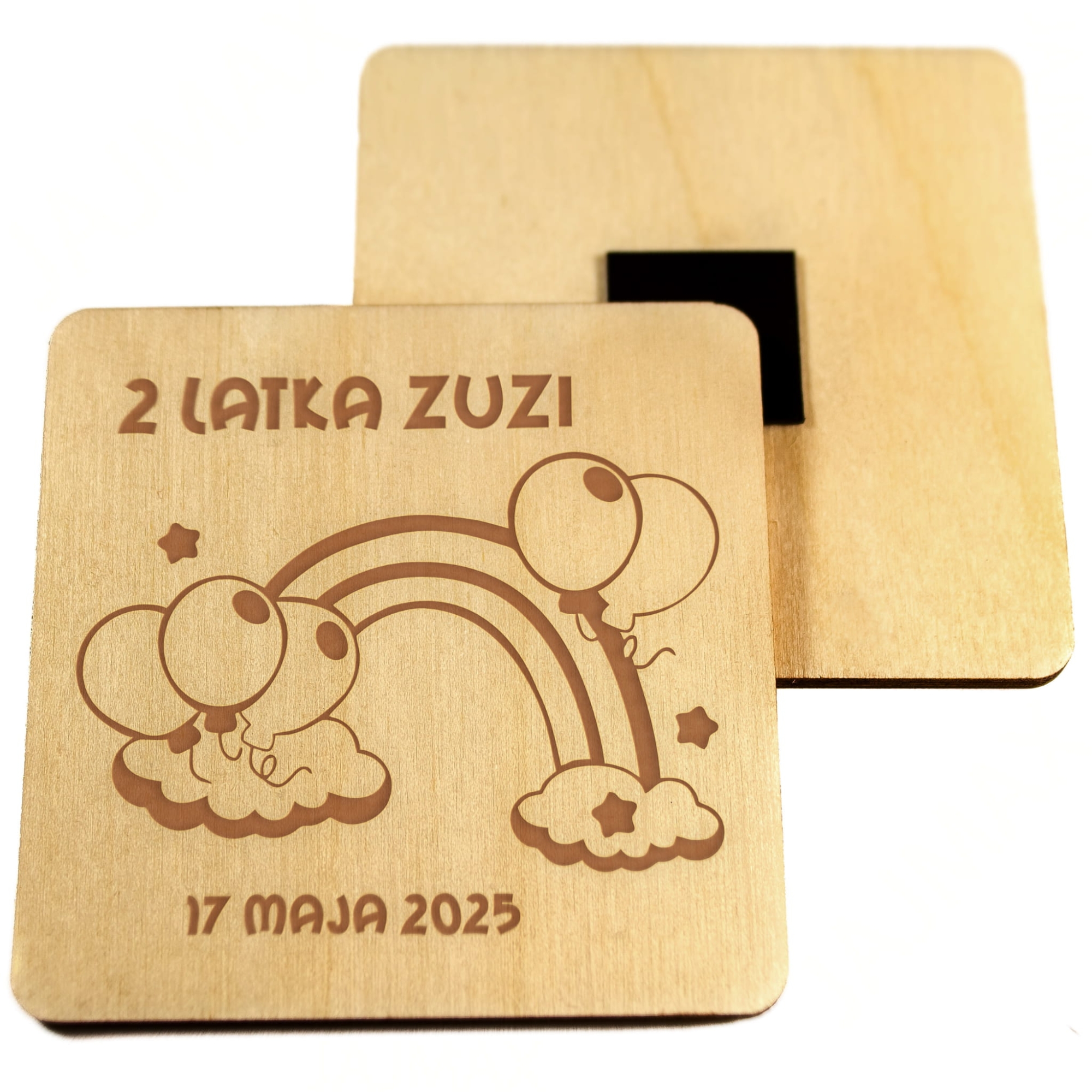 Drewniany magnes z personalizacją podziękowania dla gości na urodziny grawer